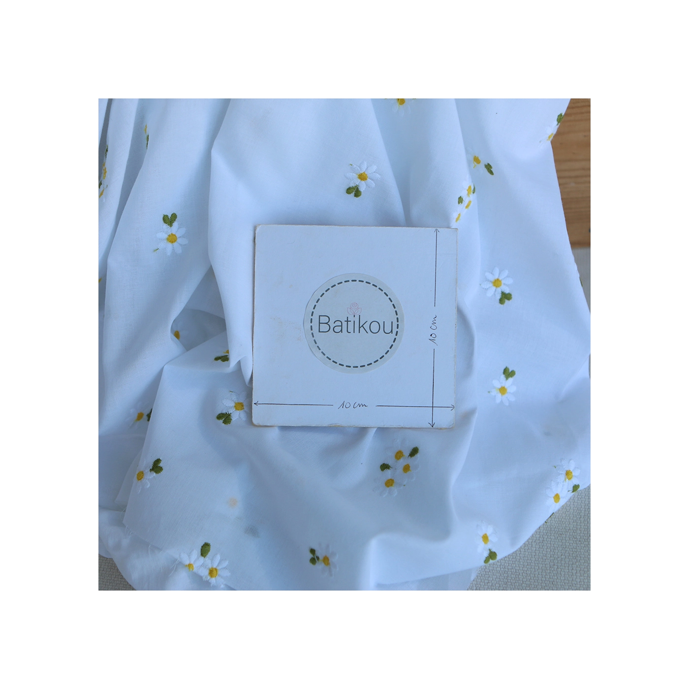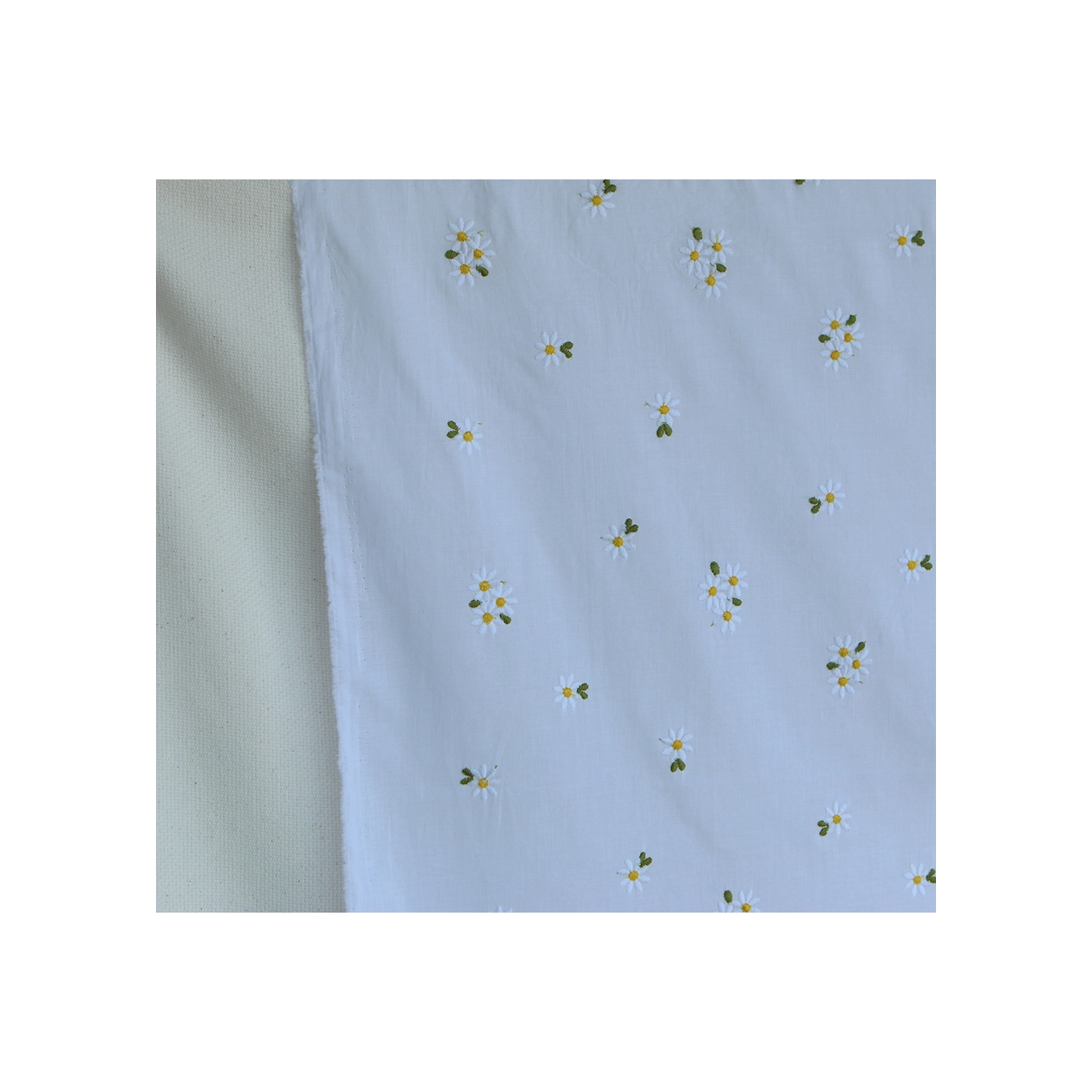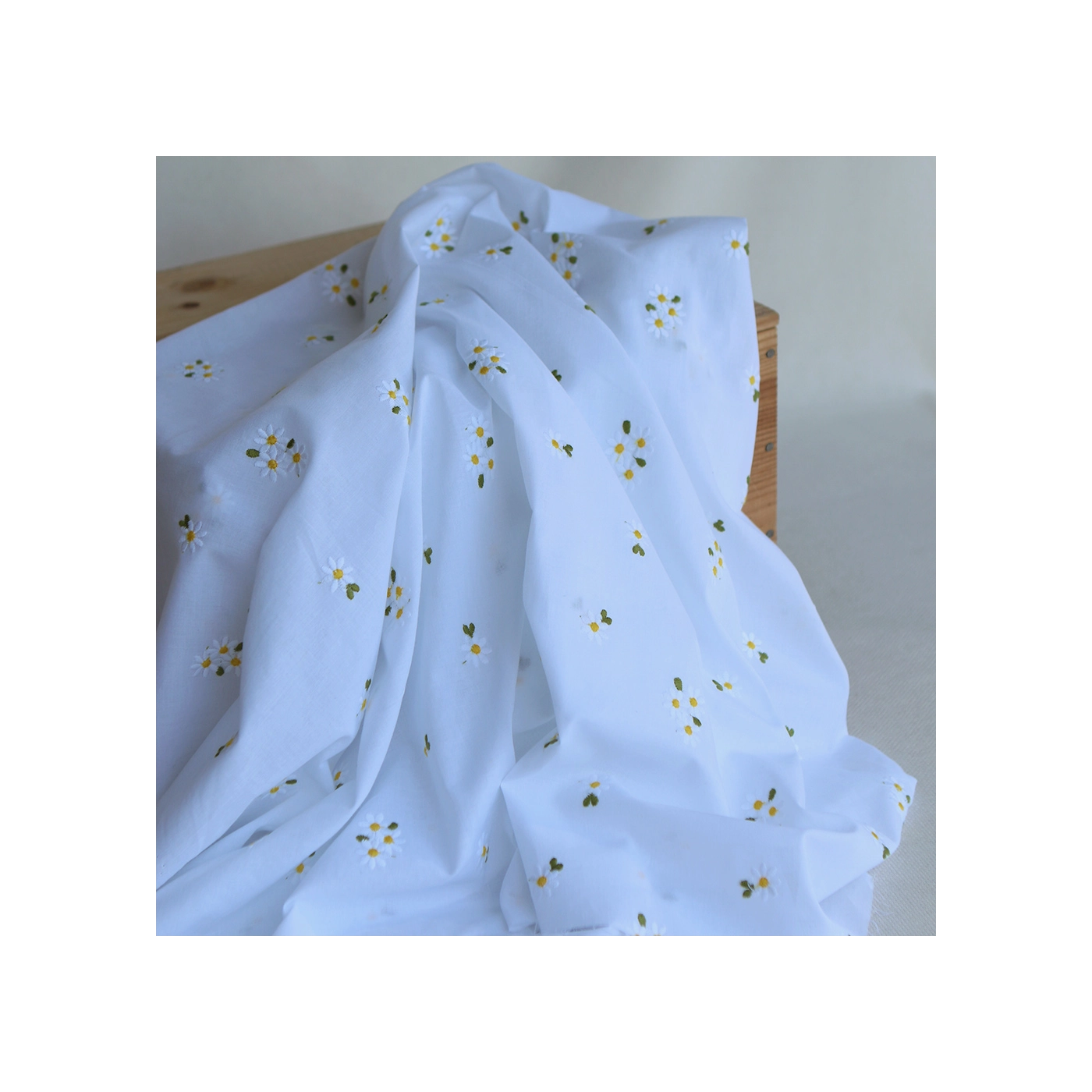 Daphné - Voile de coton blanc broderies marguerites