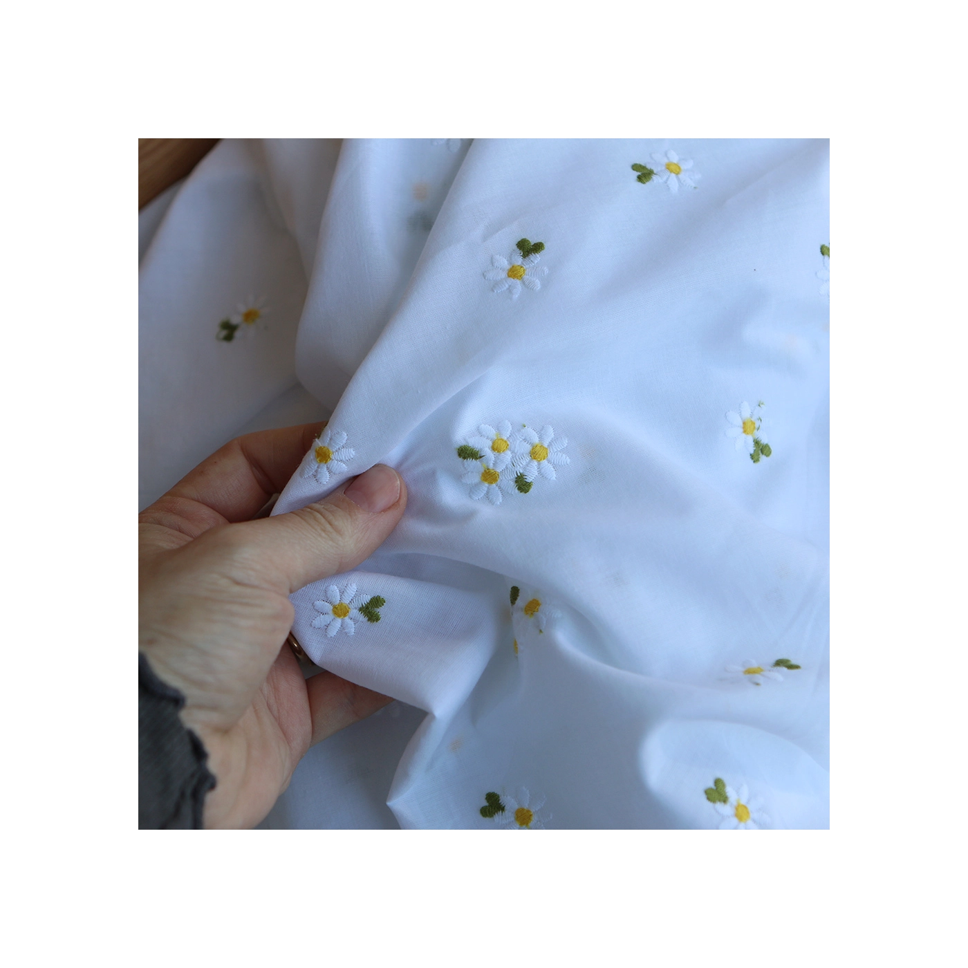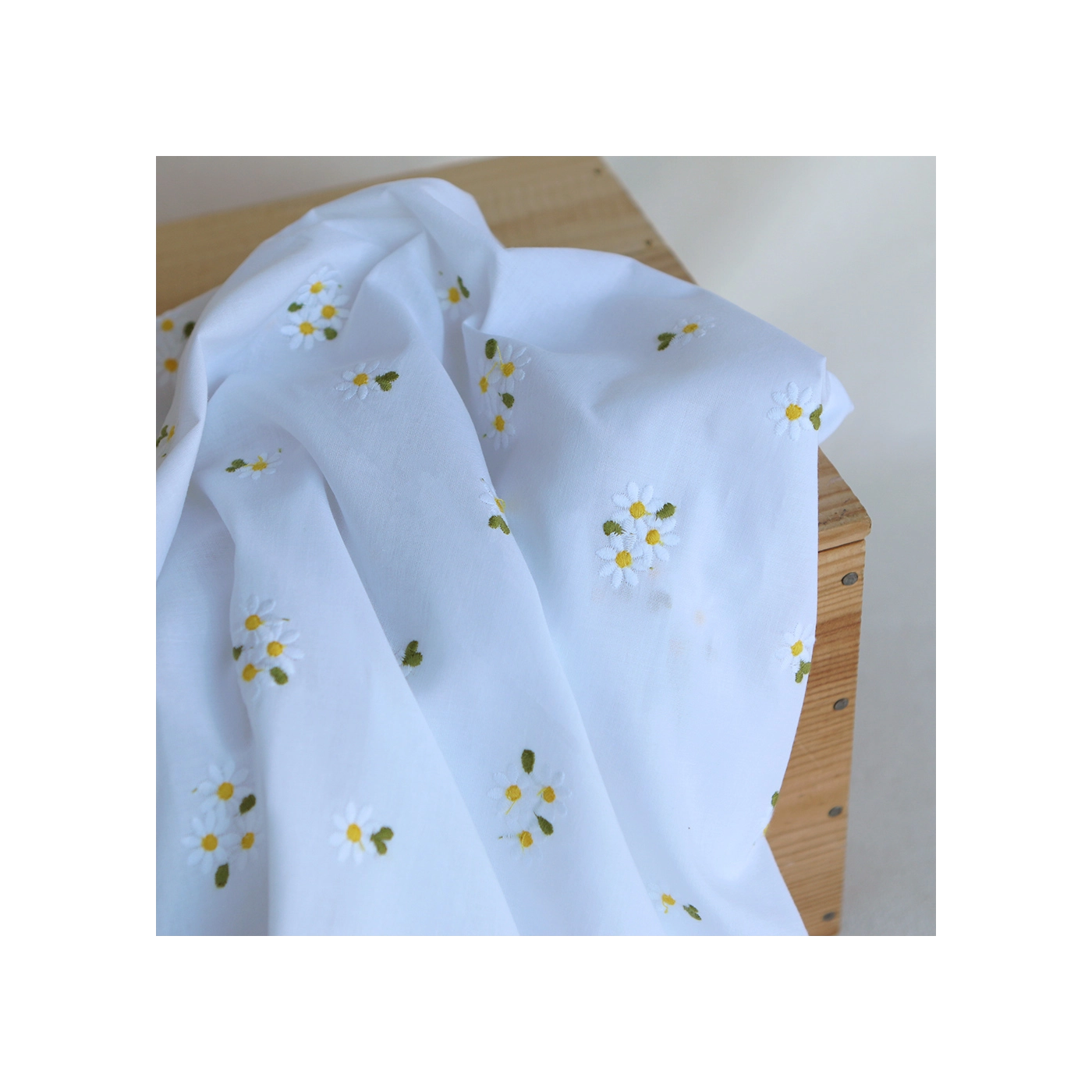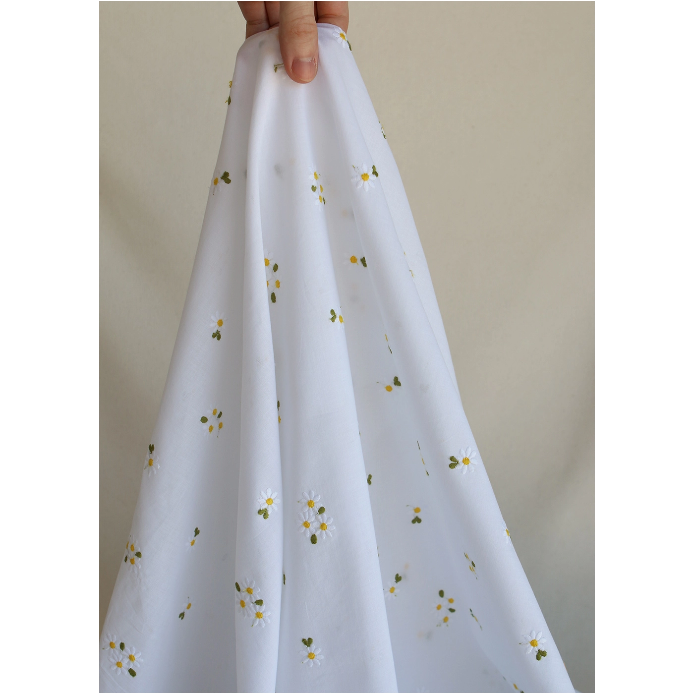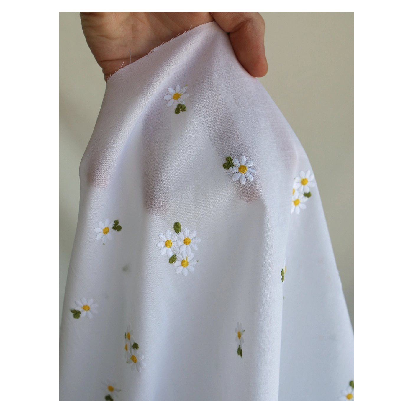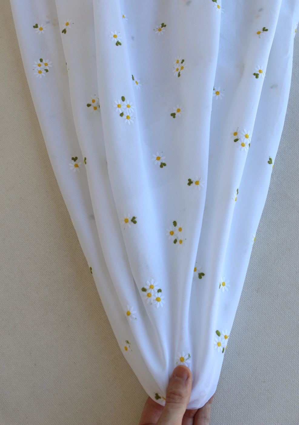 - Coloris blanc, broderies marguerites