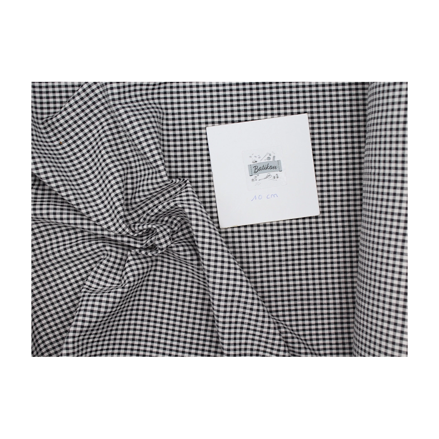 Coupon de 155 cm de Seersucker / Coton gaufré vichy mini 3mm Noir et écru