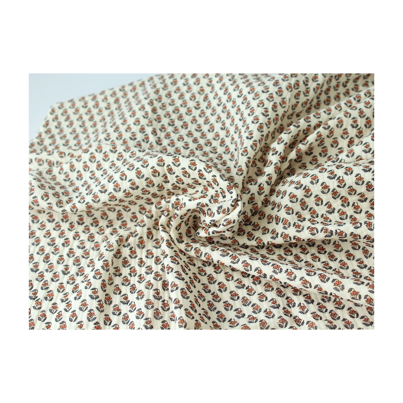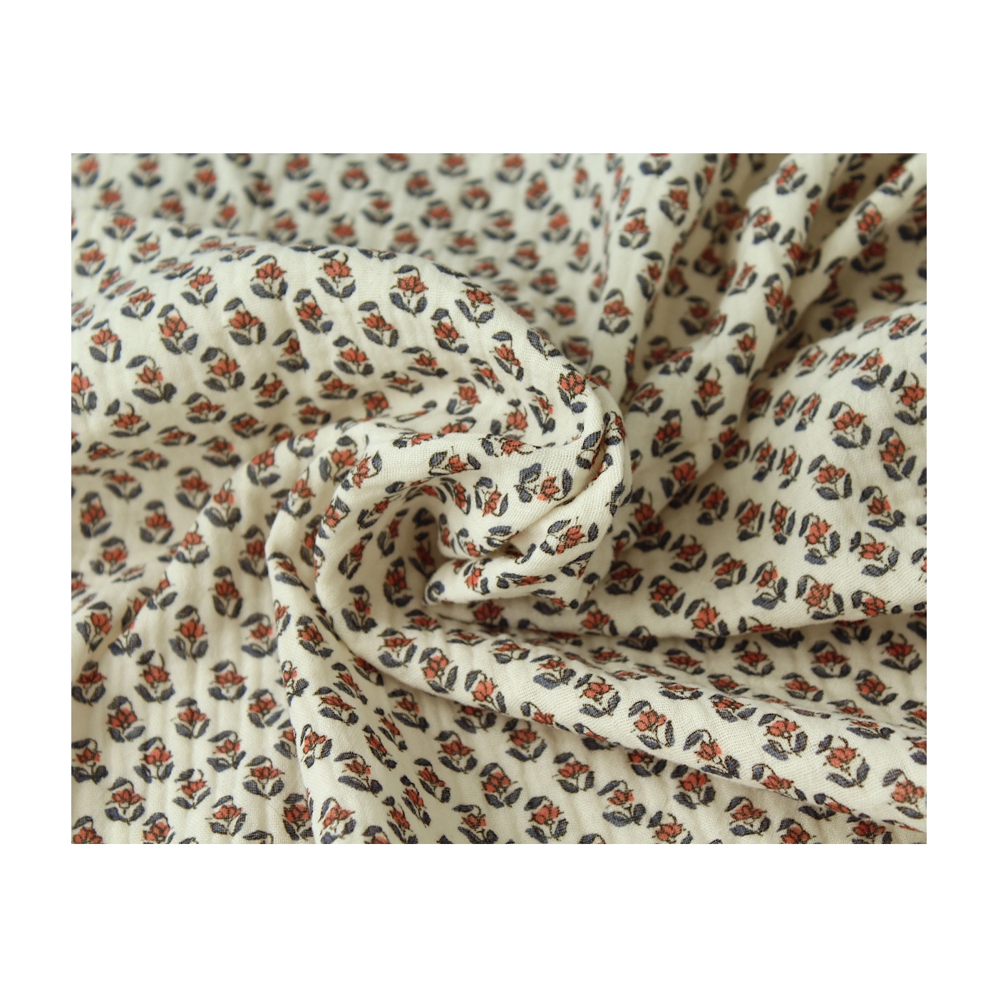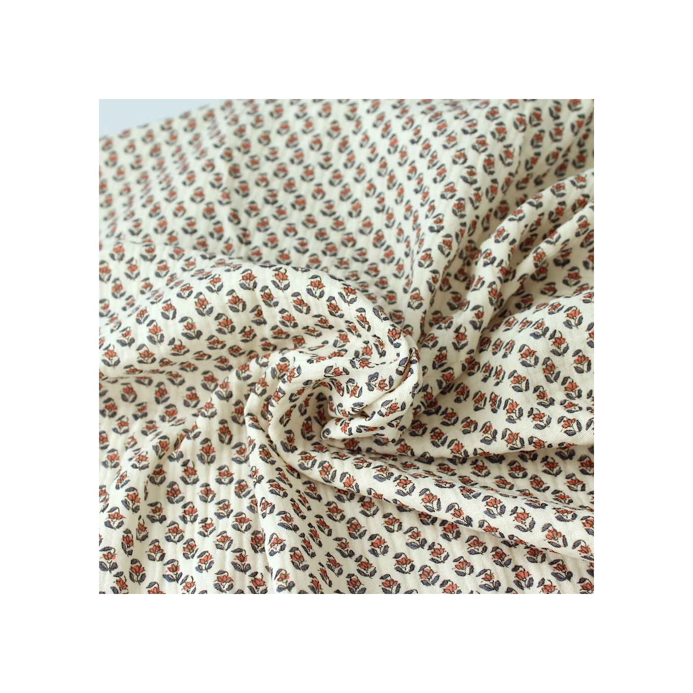 Coupon de 78 cm de Aria - Double gaze de coton écru à motifs petites fleurs façon hand block