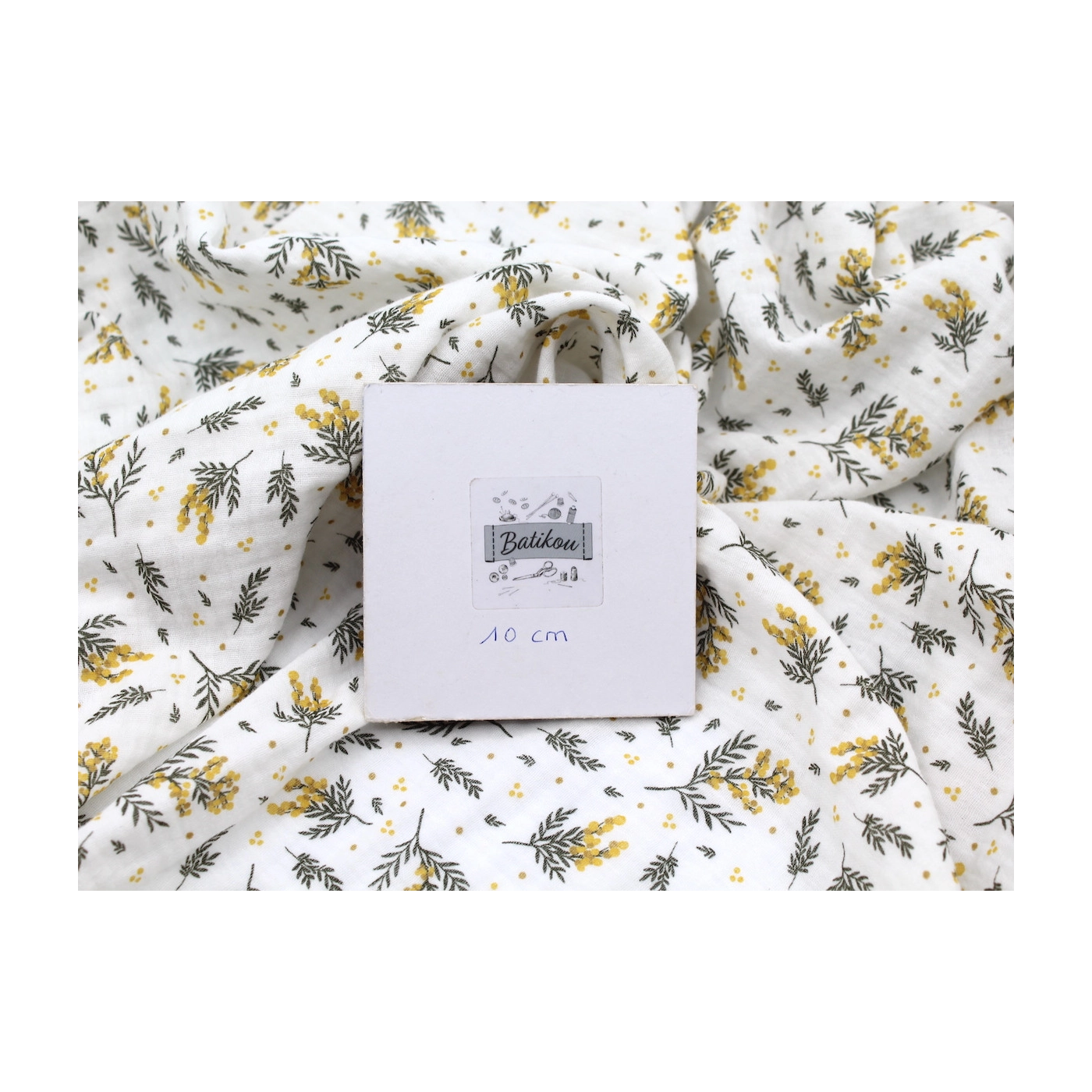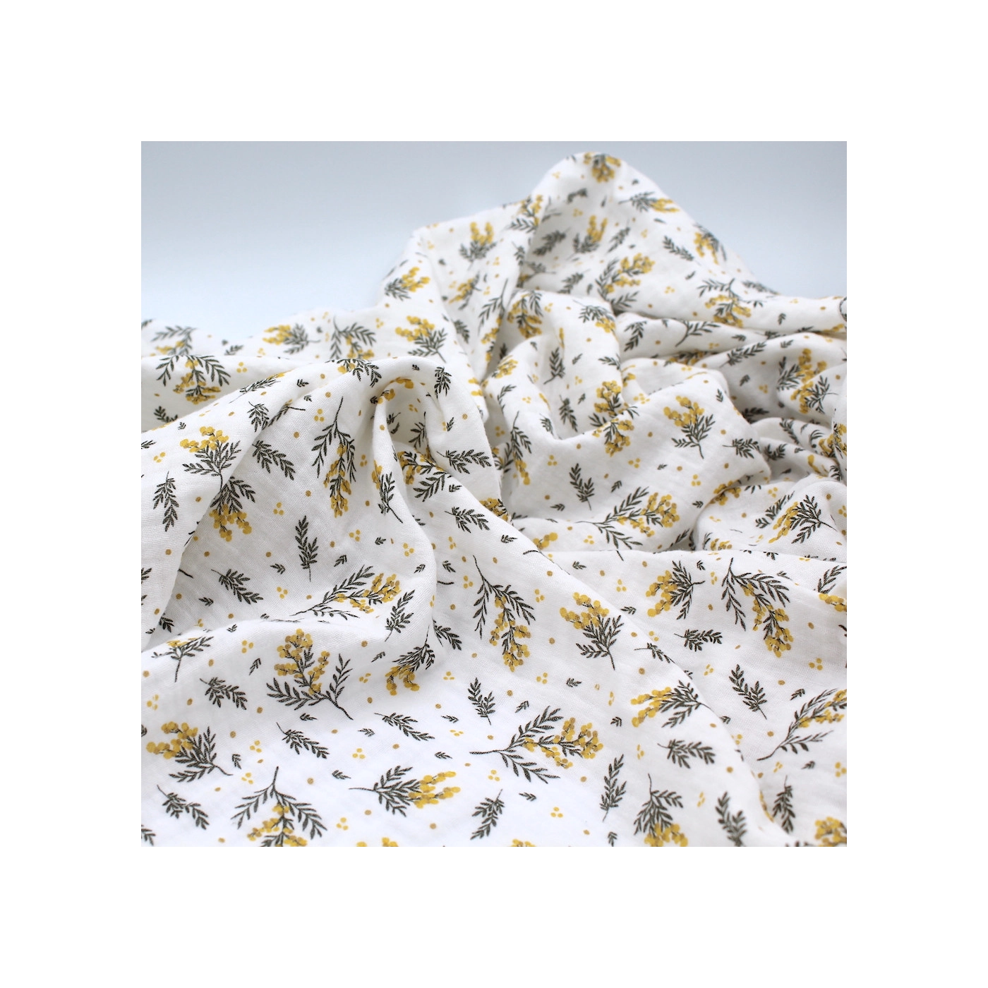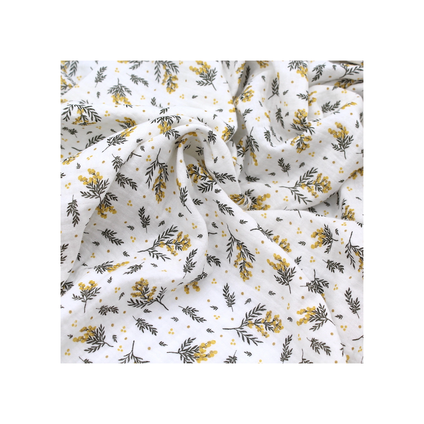 Coupon de 50 cm de Mimosa - Double gaze de coton BIO motif exclusif