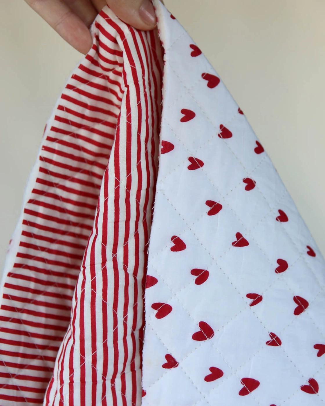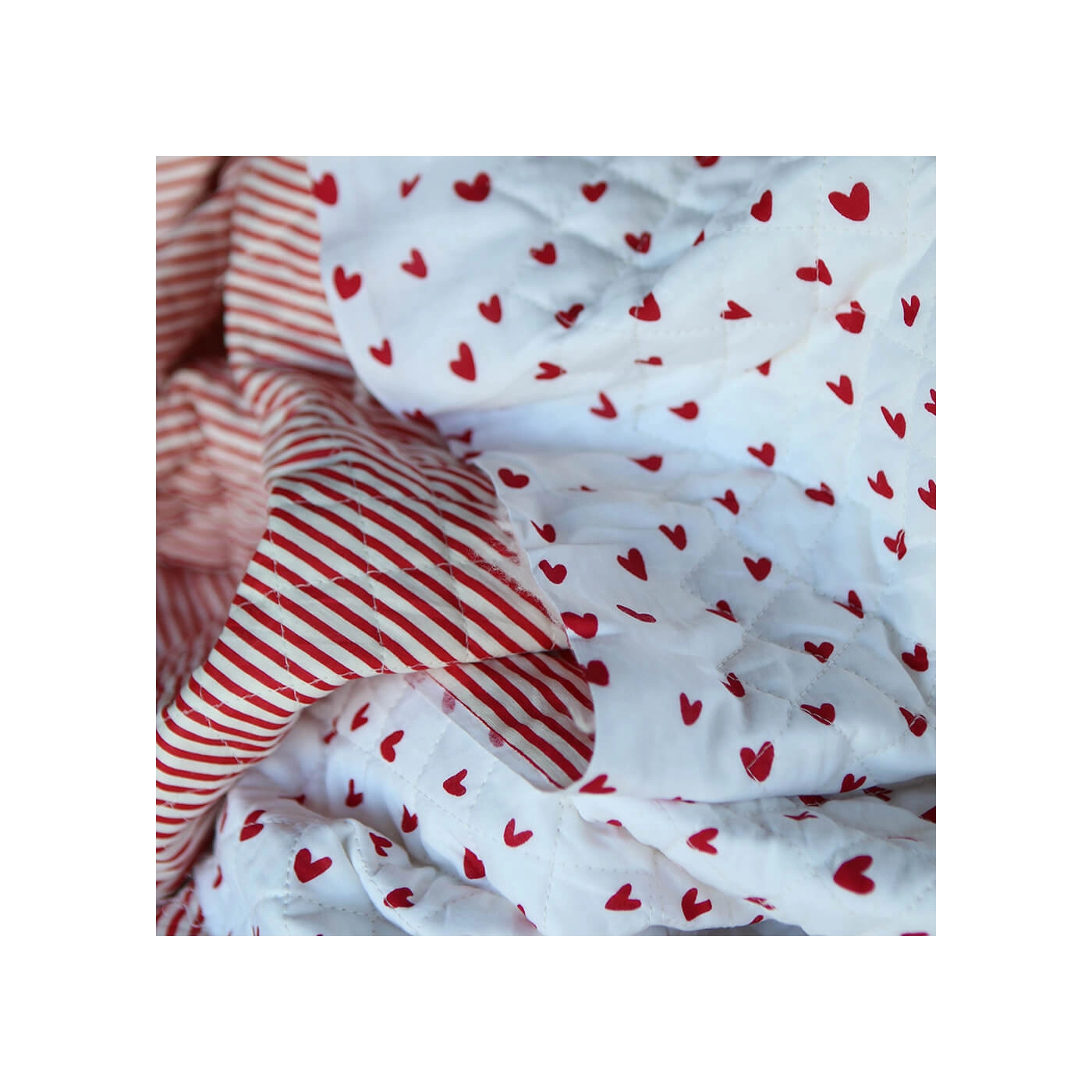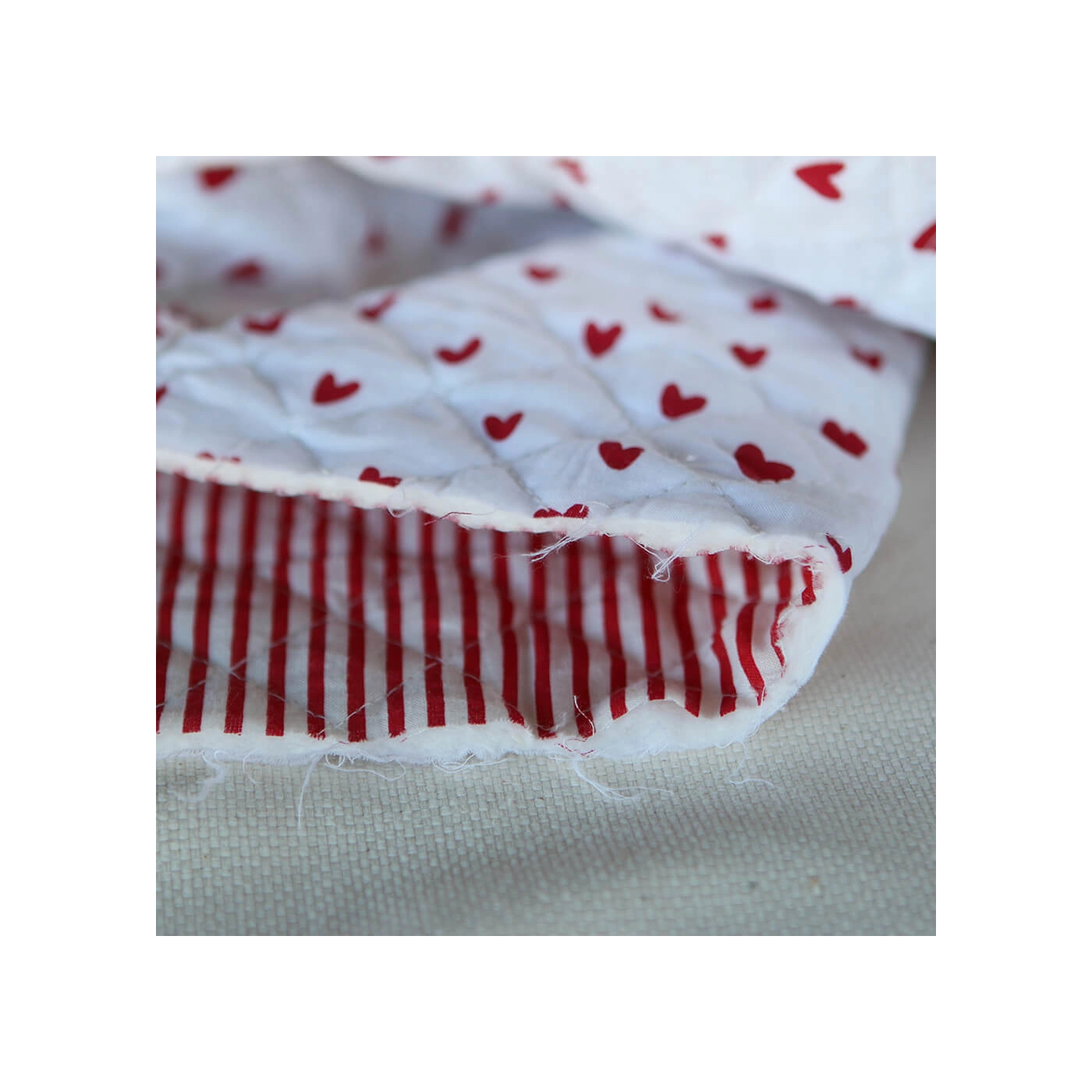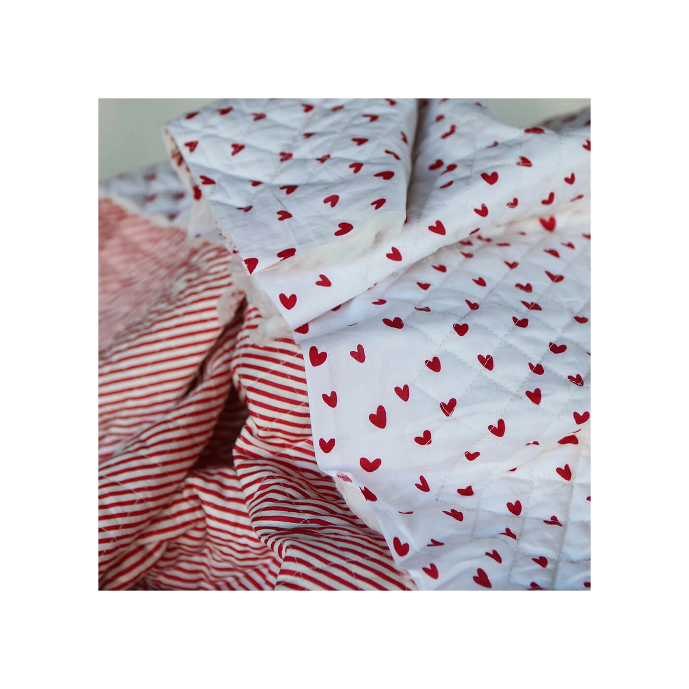 Coupon de 43 cm de Dil / coeurs rouges - Tissu indien matelassé double face coton hand block largeur 100cm