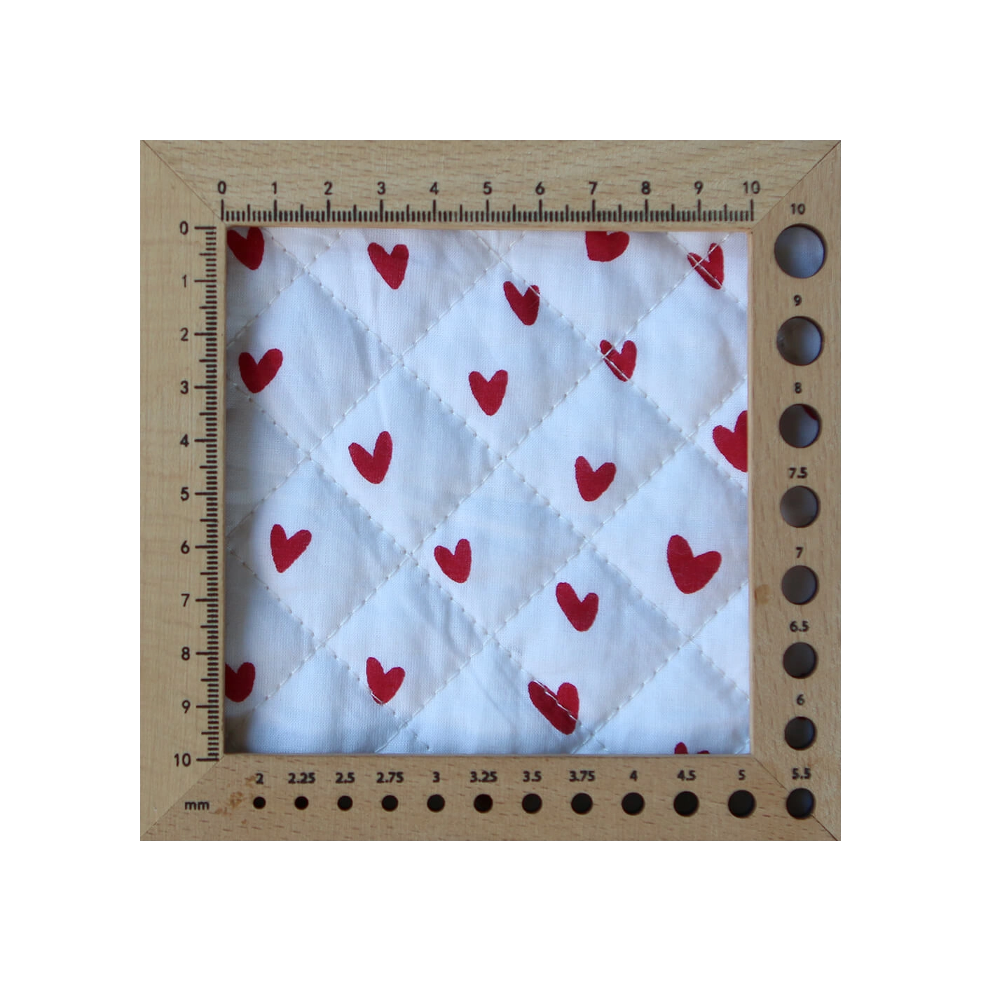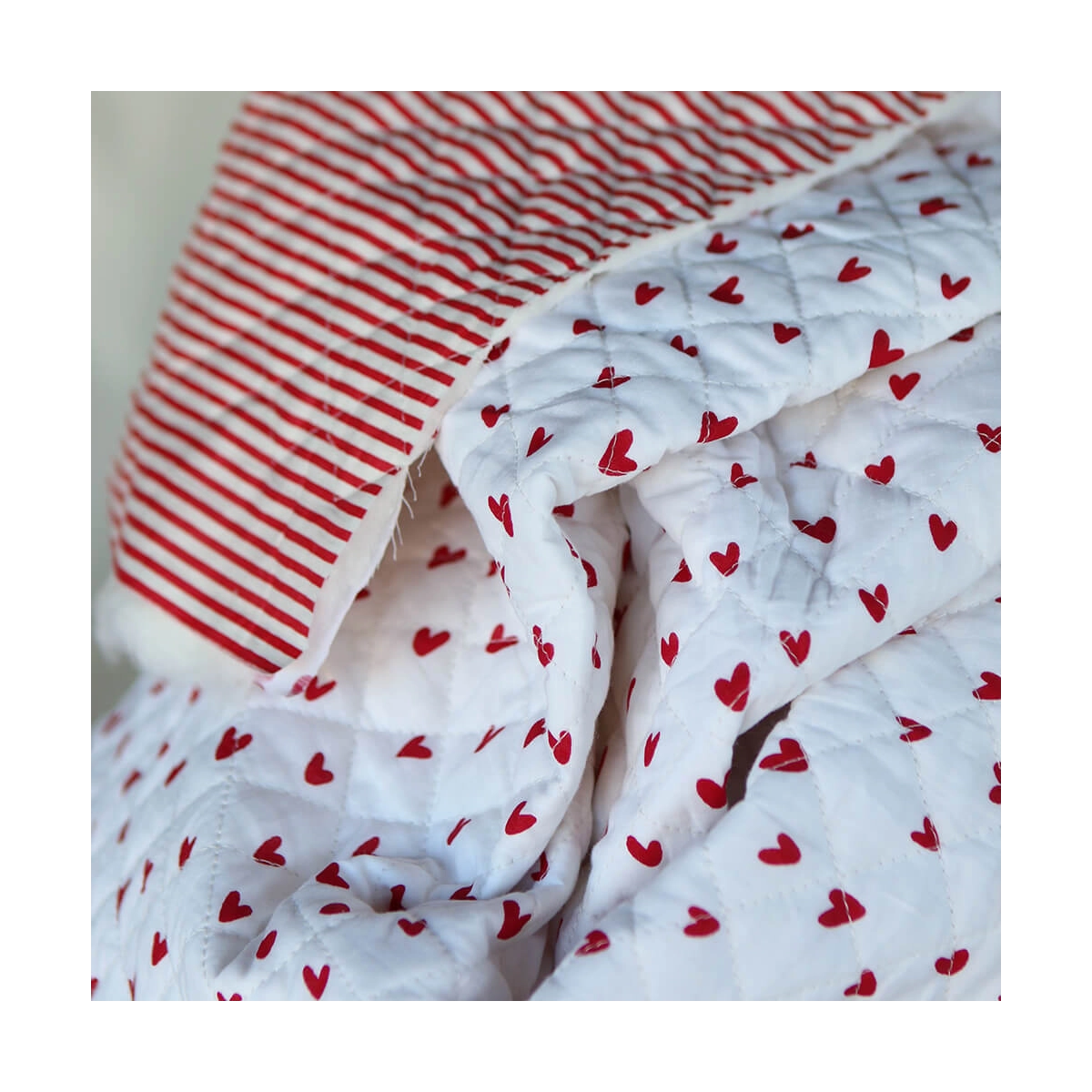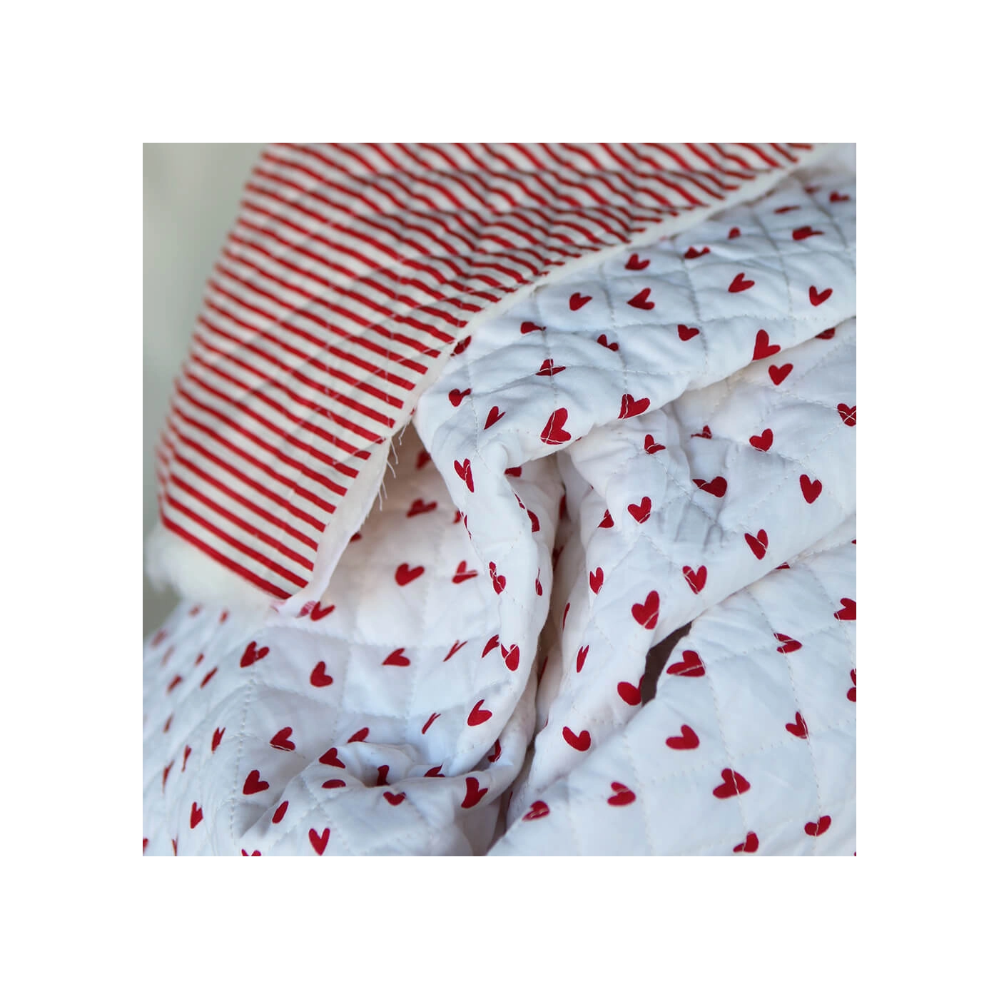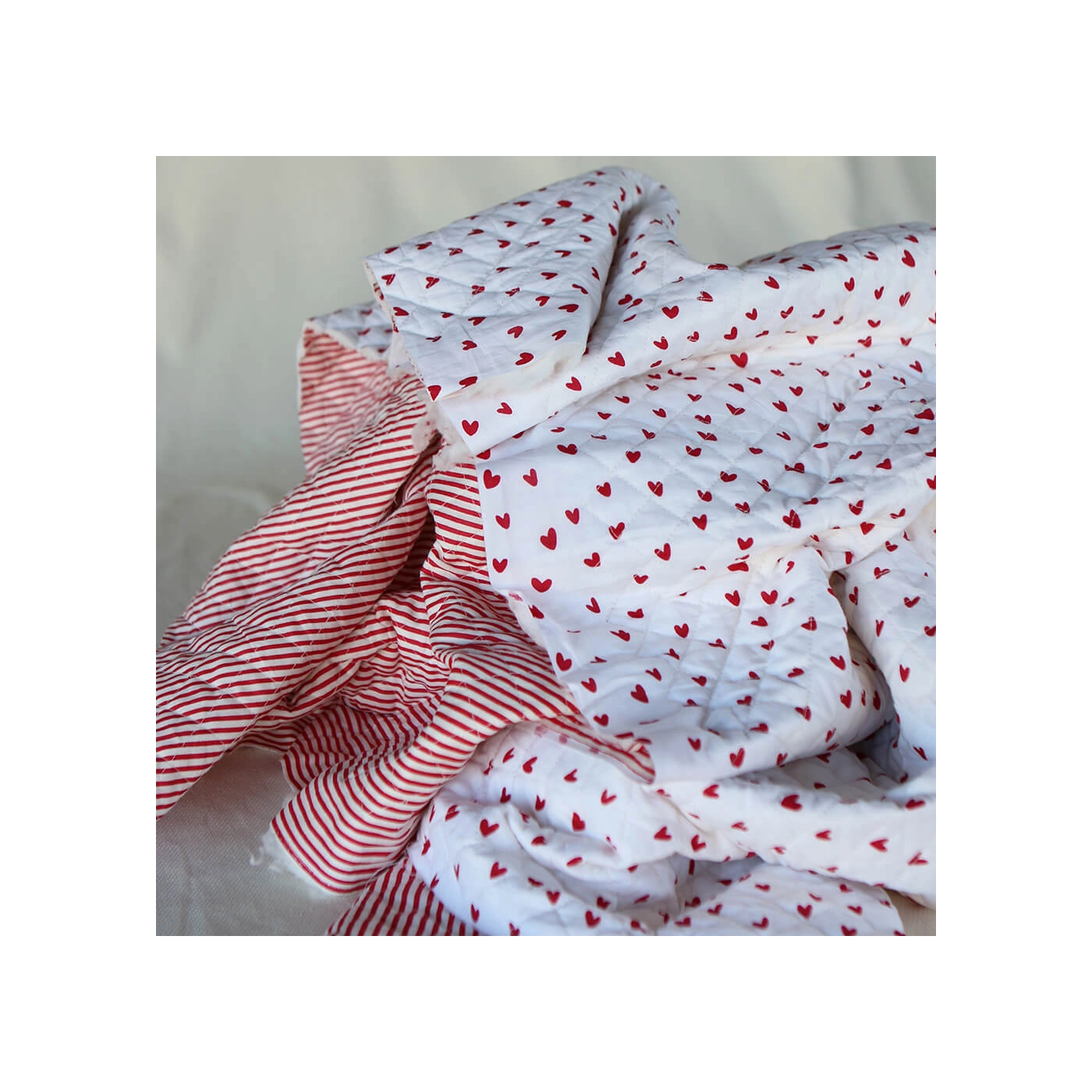 Coupon de 85 cm de Dil / coeurs rouges - Tissu indien matelassé double face coton hand block largeur 100cm