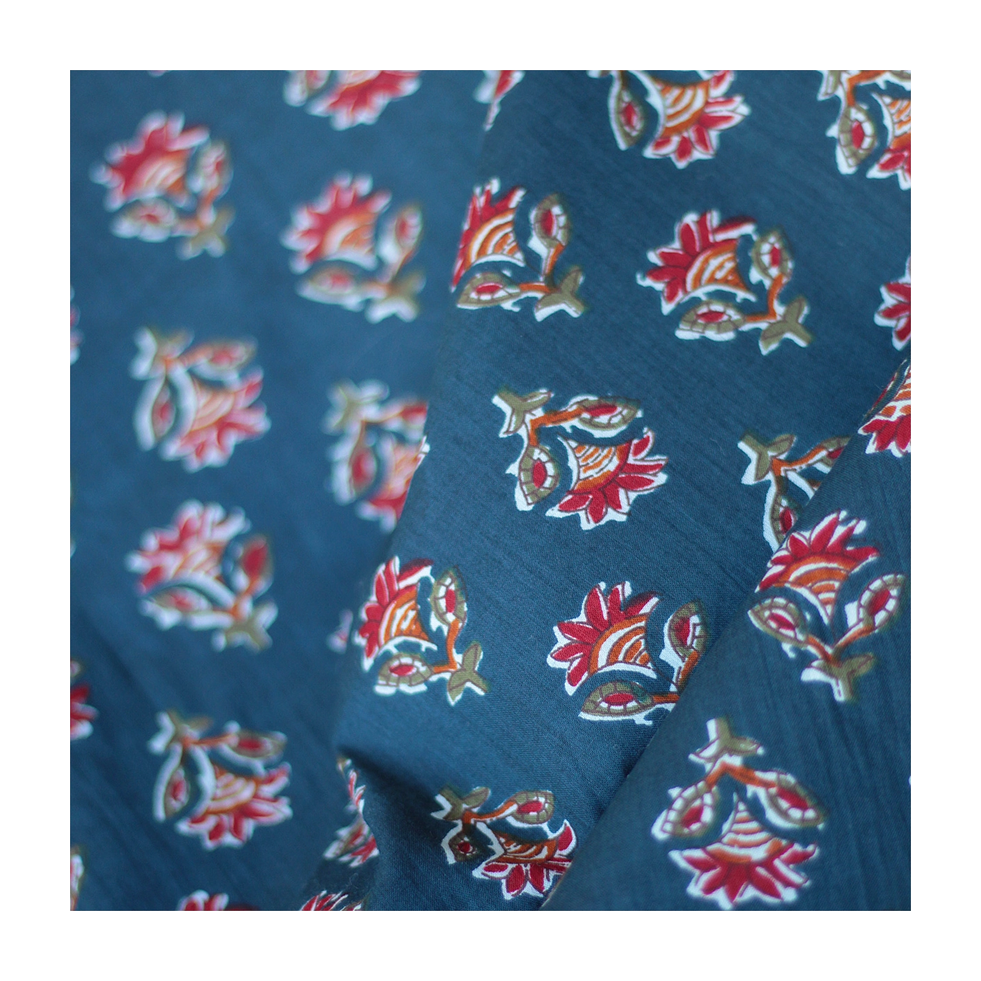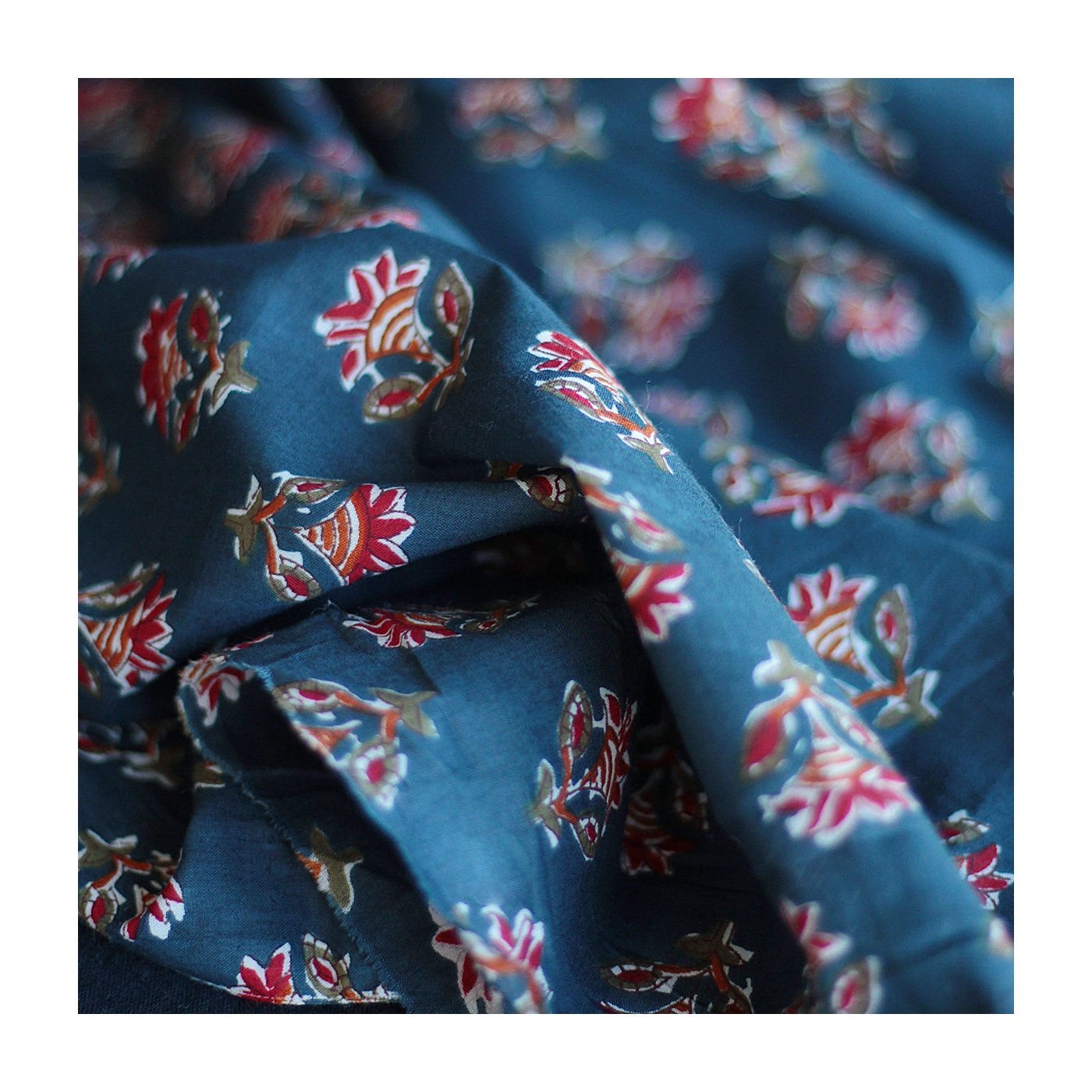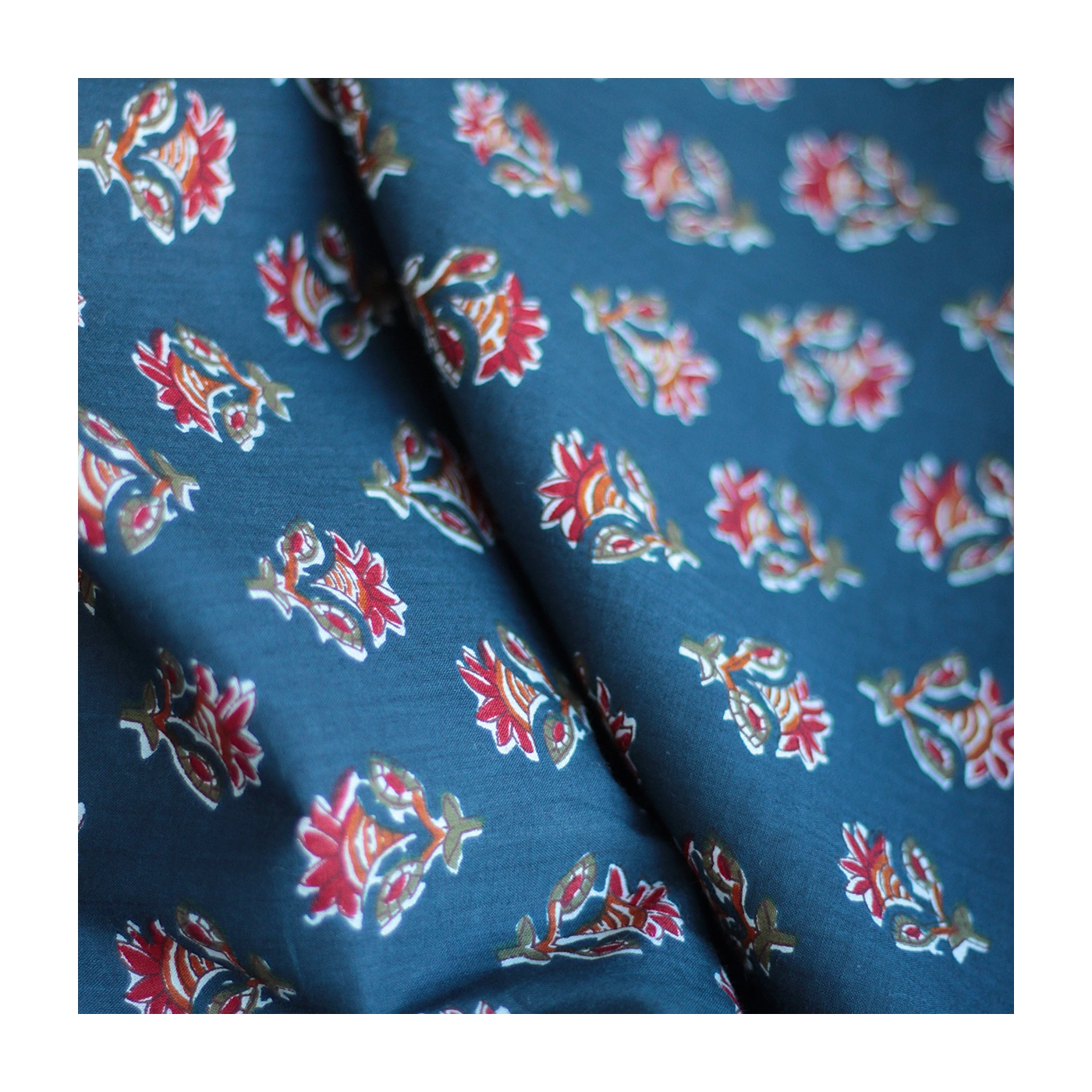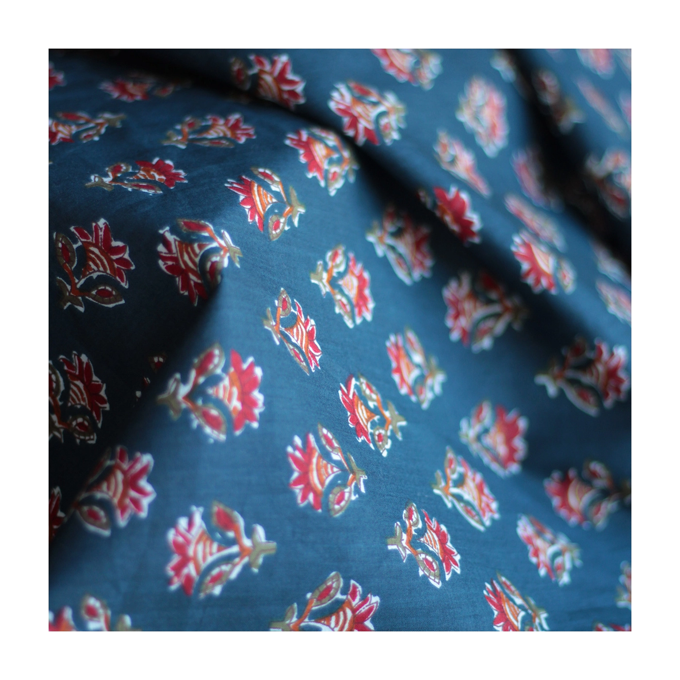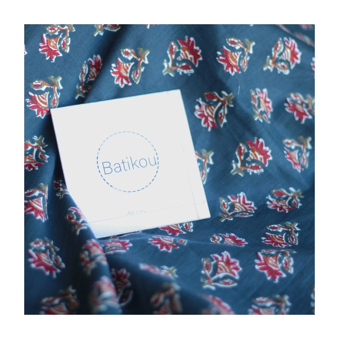 Coupon de 75 cm de Tissu indien coton hand block traditionnel bleu marine