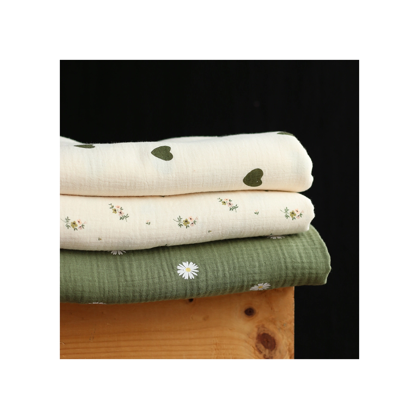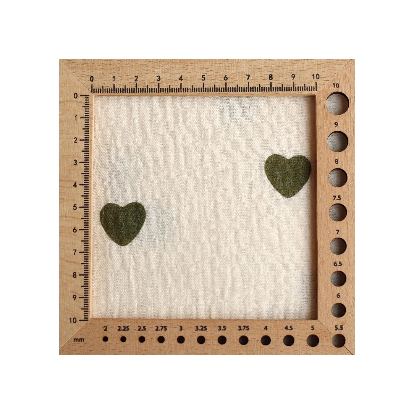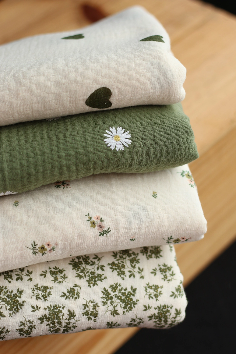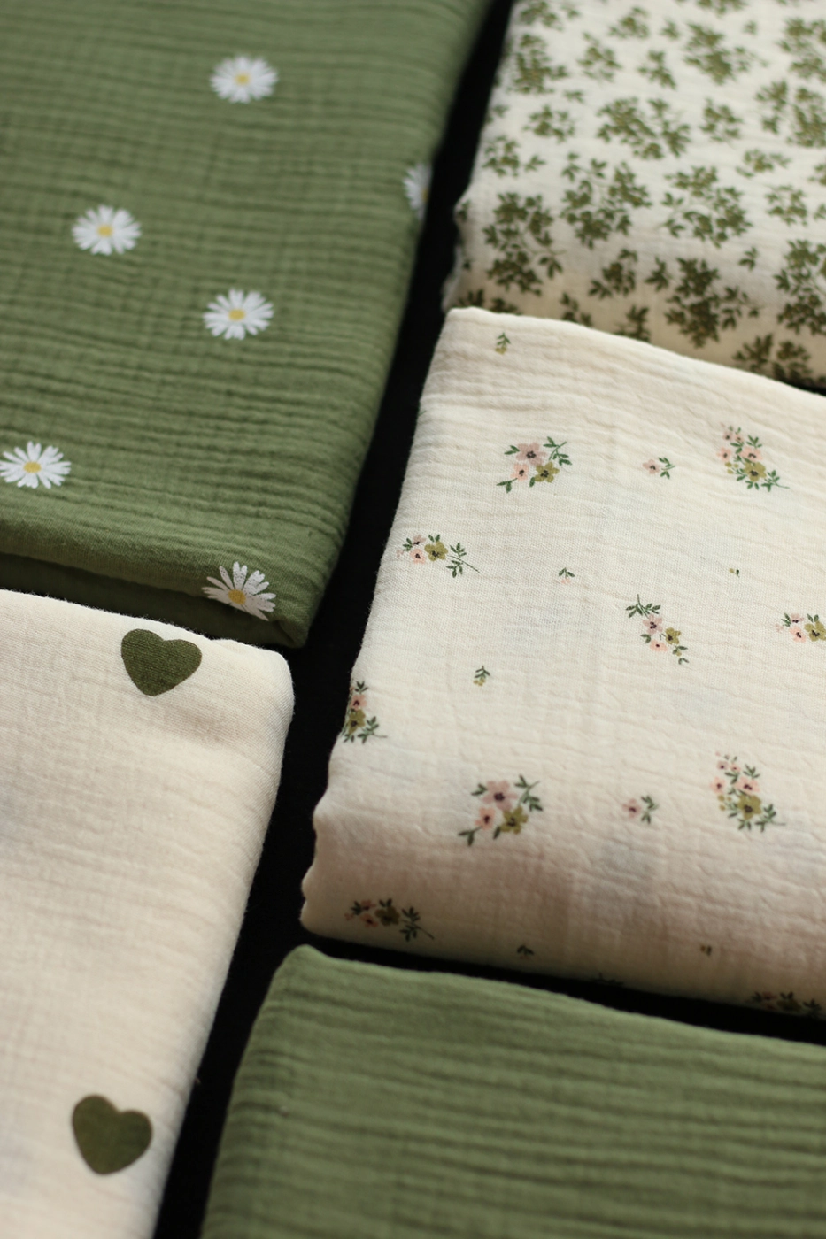 Coupon de 18 cm de Manou - Double gaze de coton BIO exclusif écru à motif coeurs vert olive