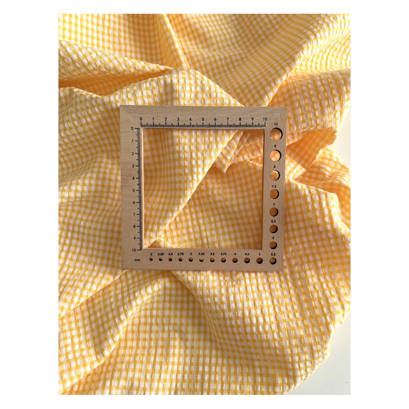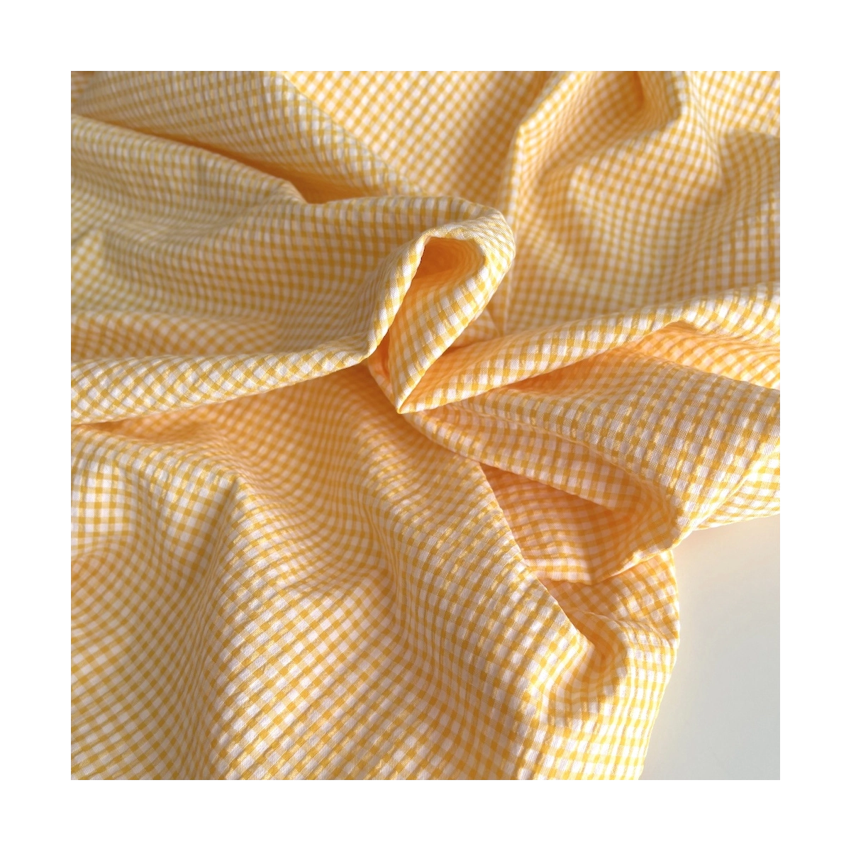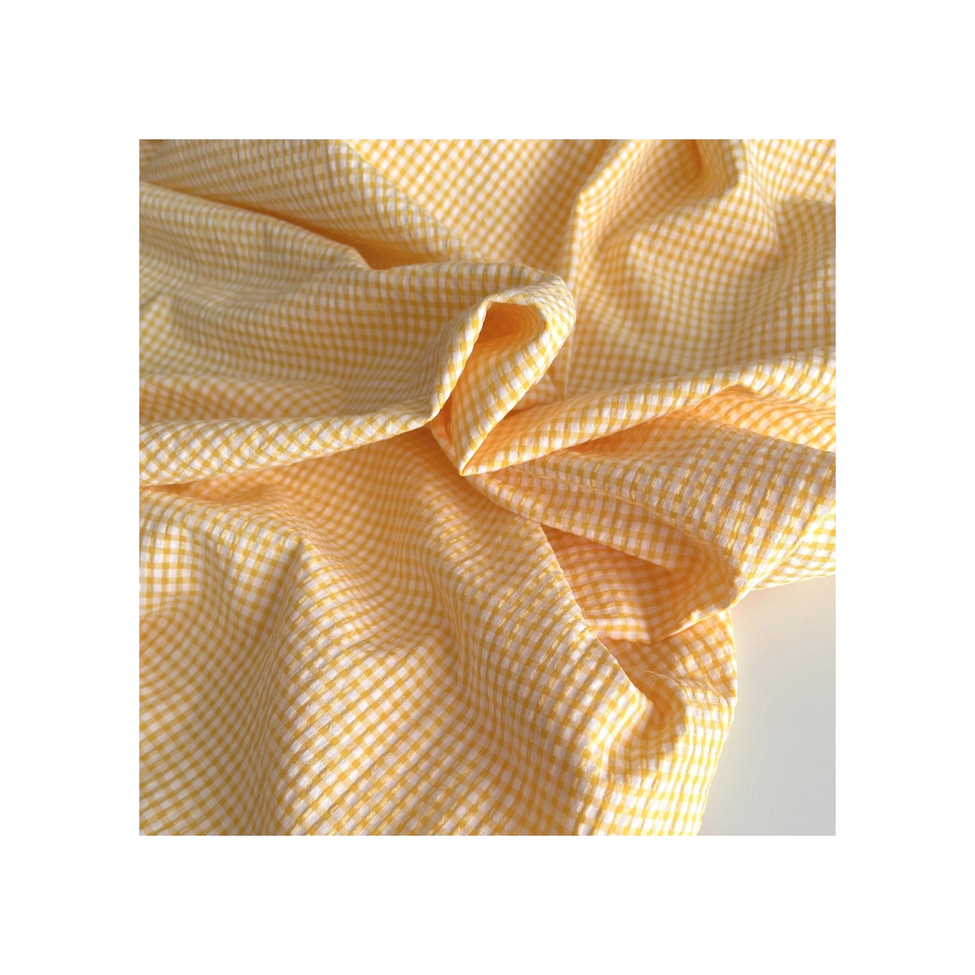 Coupon de 114 cm de Seersucker / Coton gaufré vichy mini 3mm jaune citron / blanc