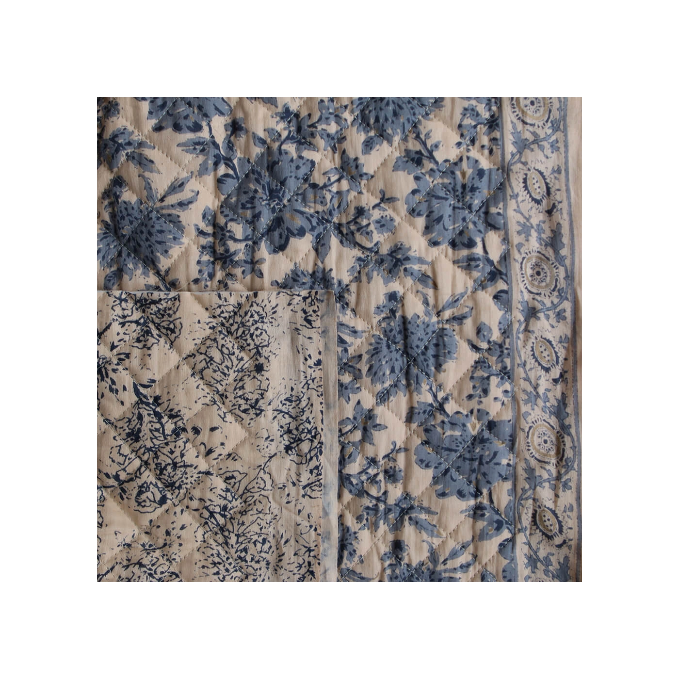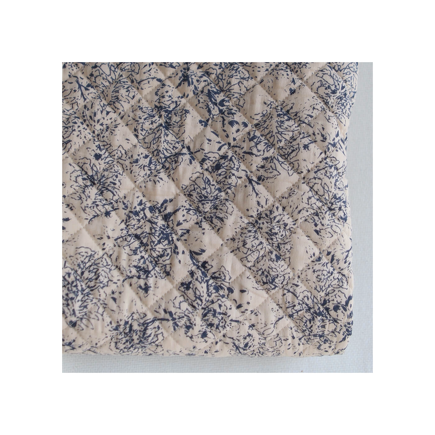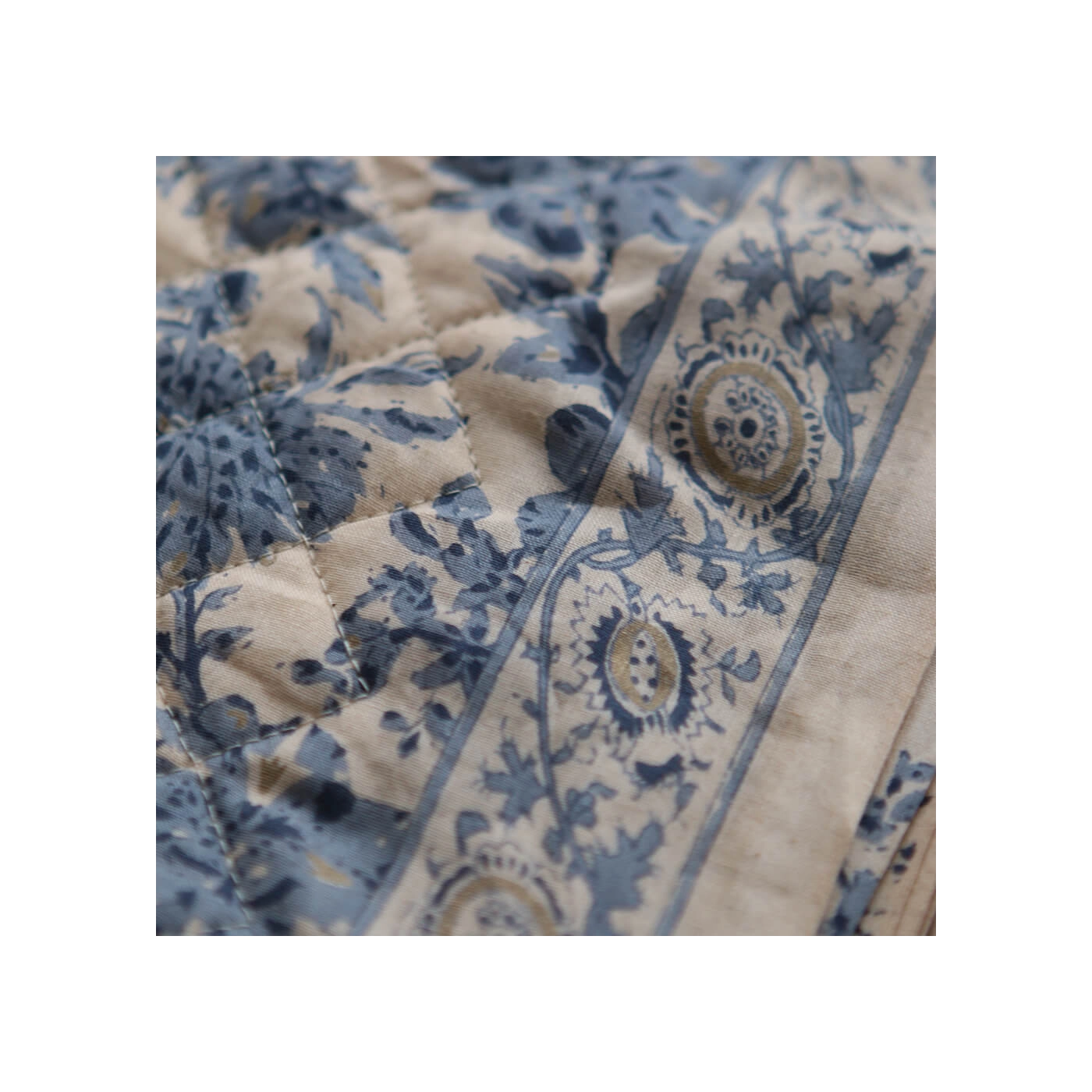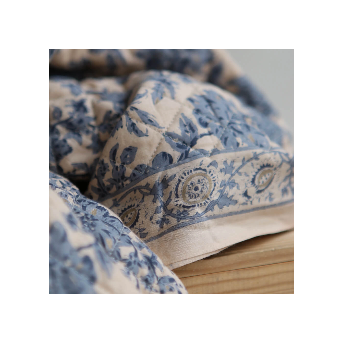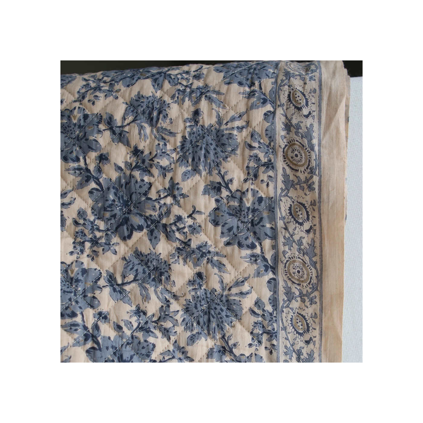 Coupon de 60 cm de Anjali bleu - Tissu indien matelassé double face coton hand block largeur 100cm