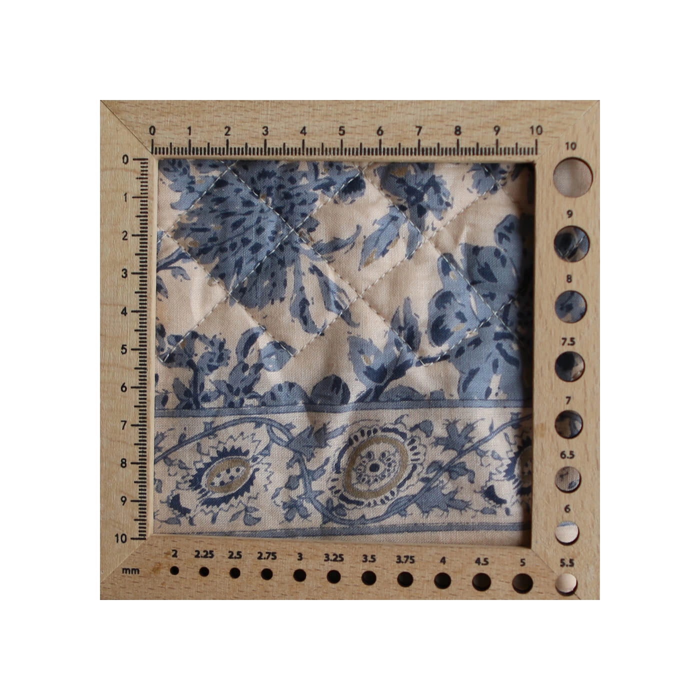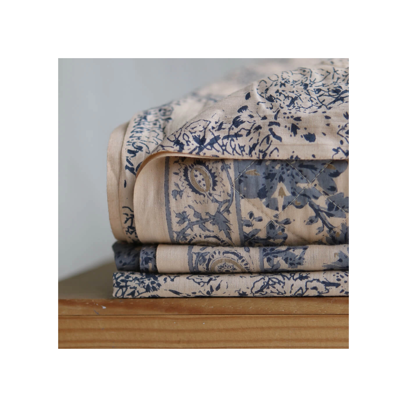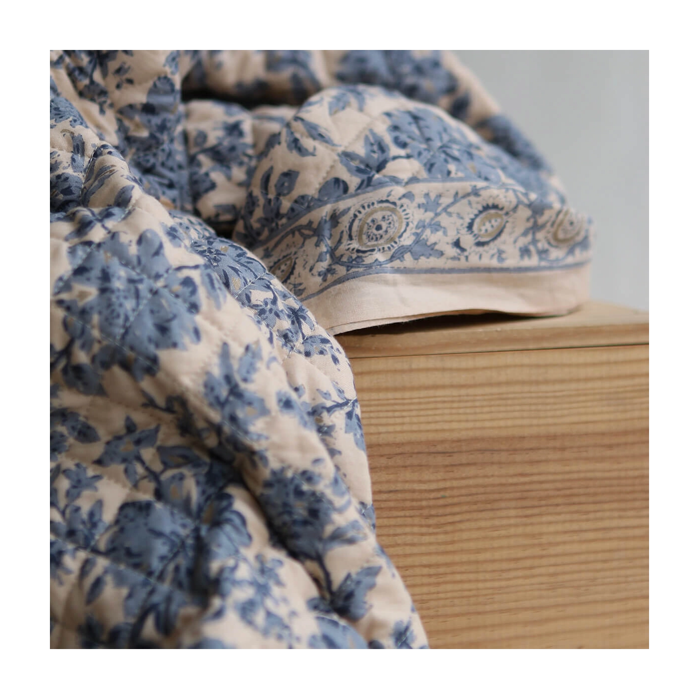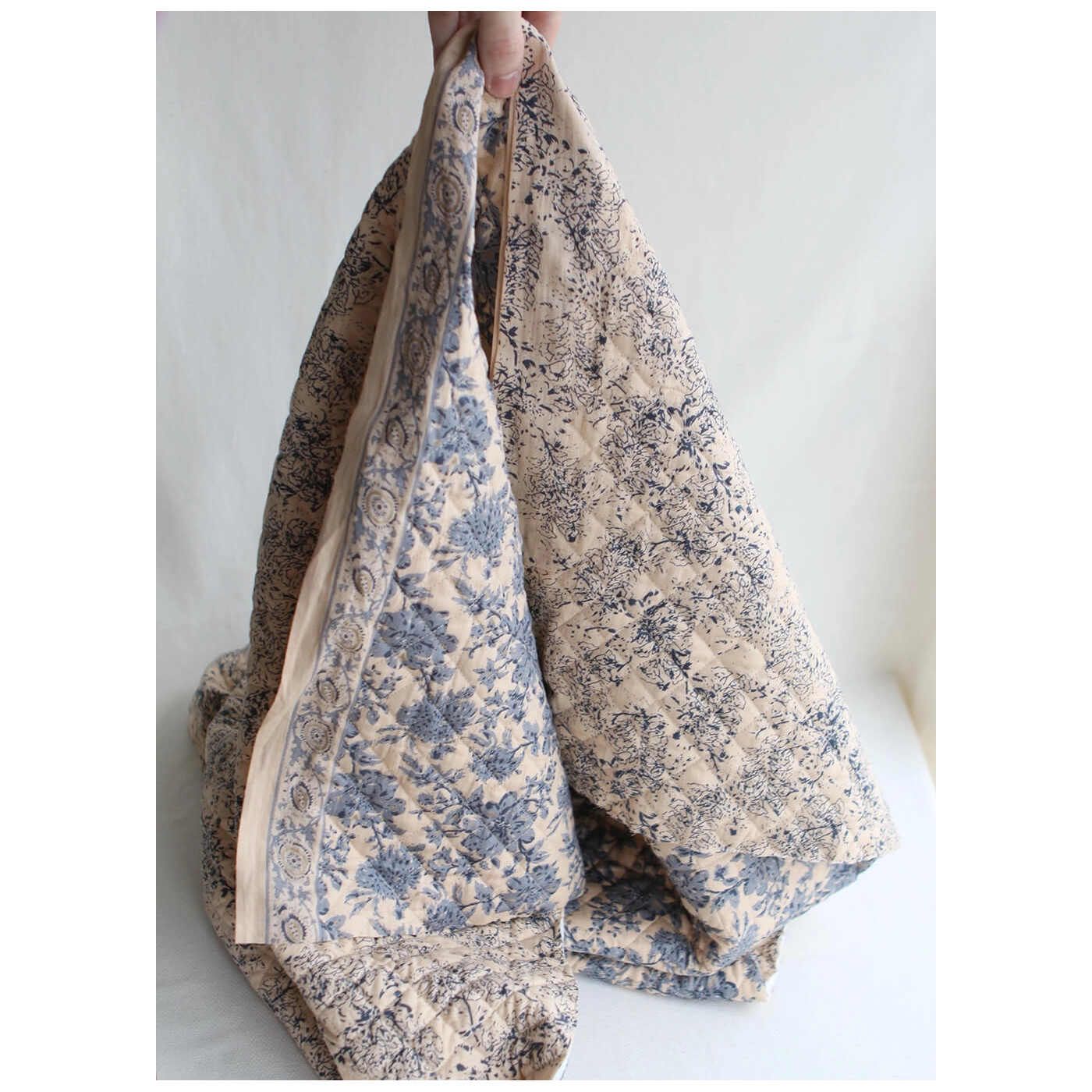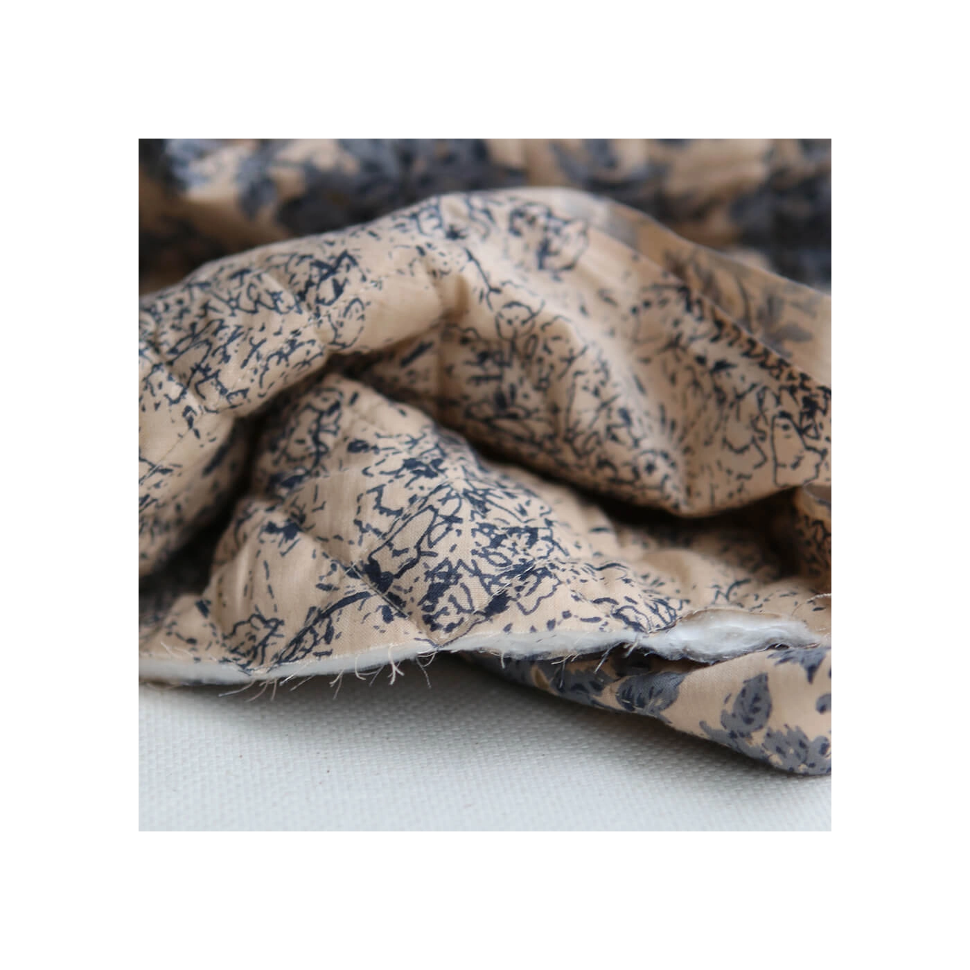 Coupon de 60 cm de Anjali bleu - Tissu indien matelassé double face coton hand block largeur 100cm