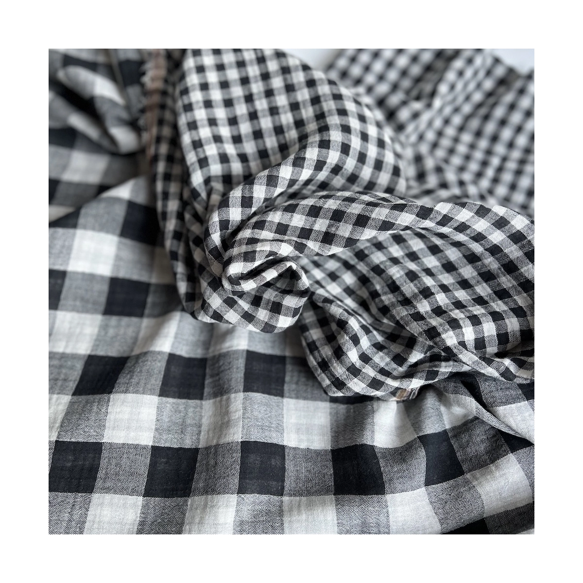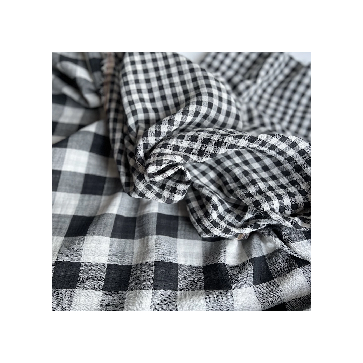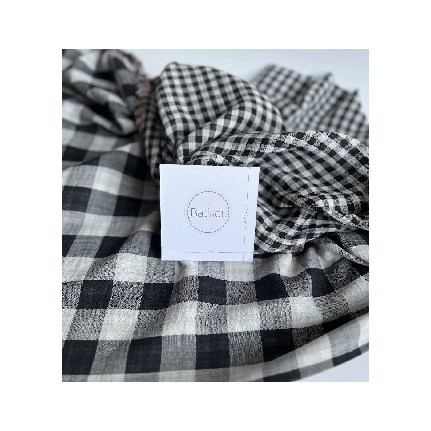 Coupon de 30 cm de Double gaze de coton vichy réversible noir / blanc
