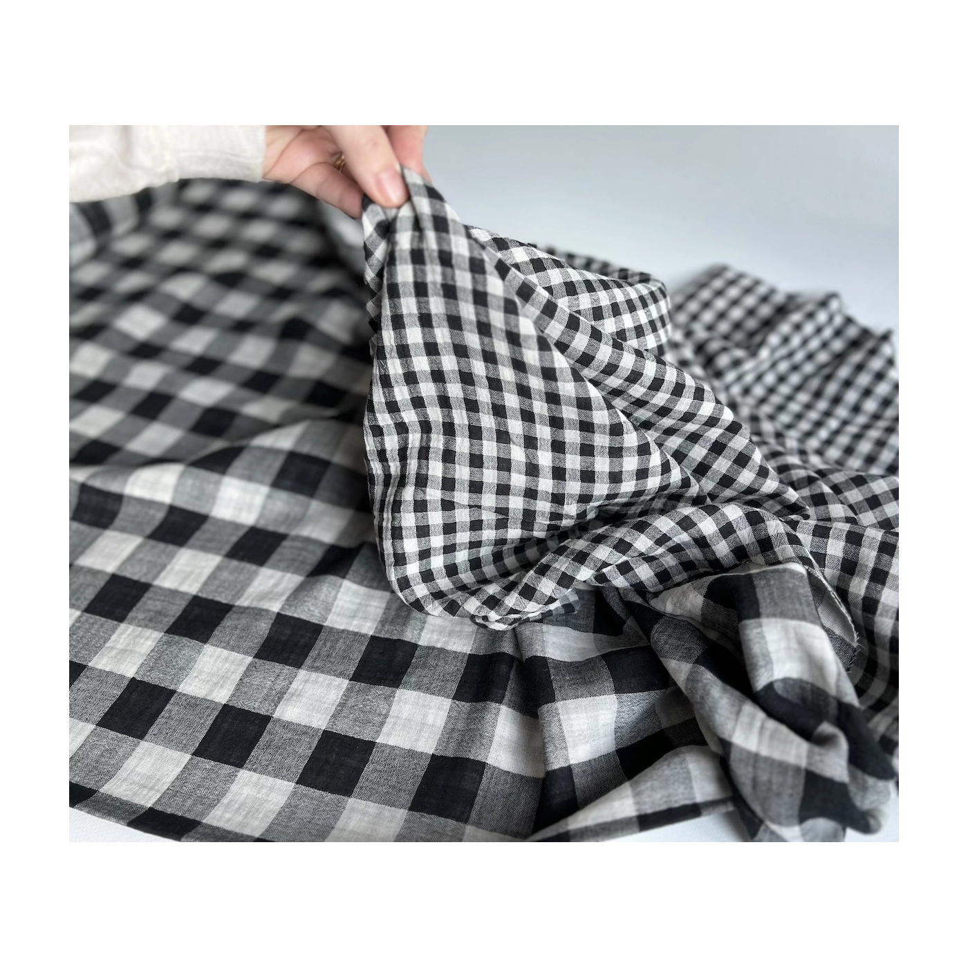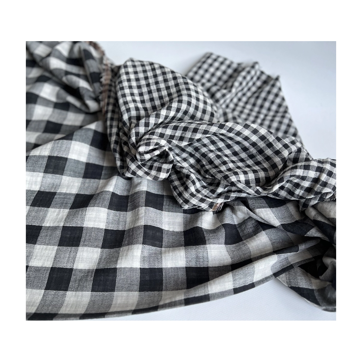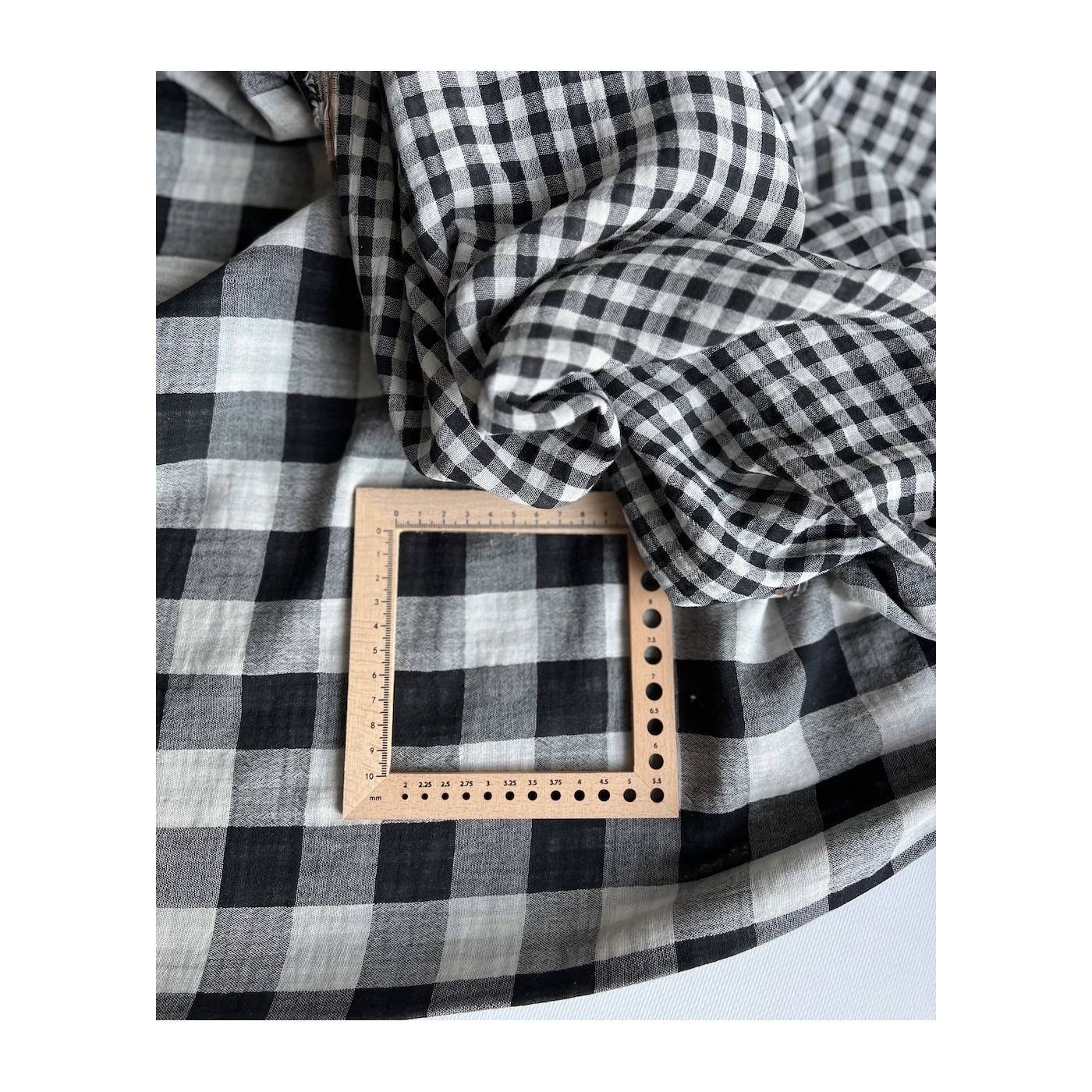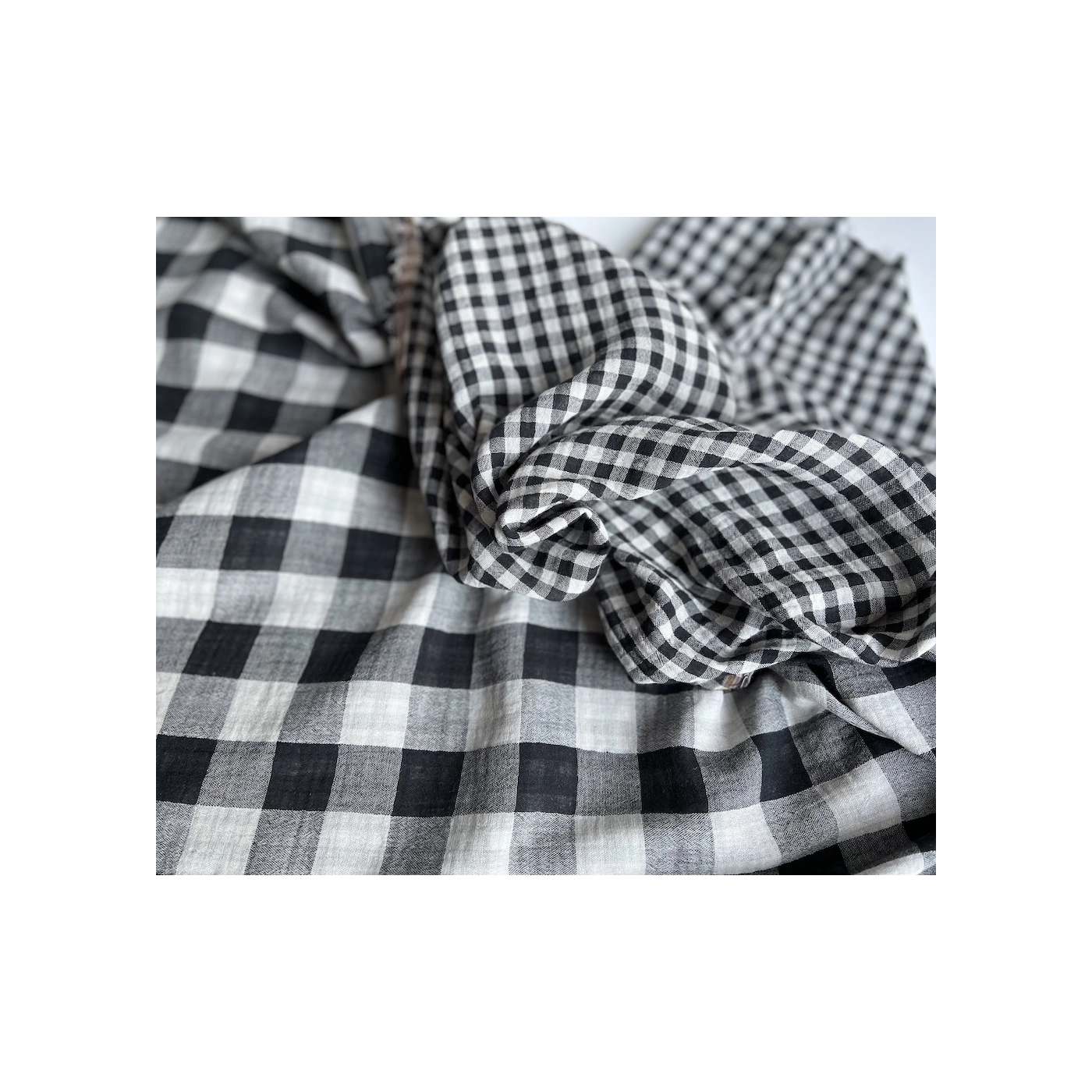 Coupon de 30 cm de Double gaze de coton vichy réversible noir / blanc