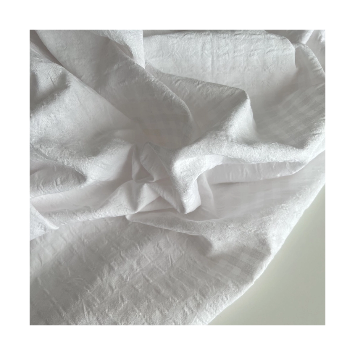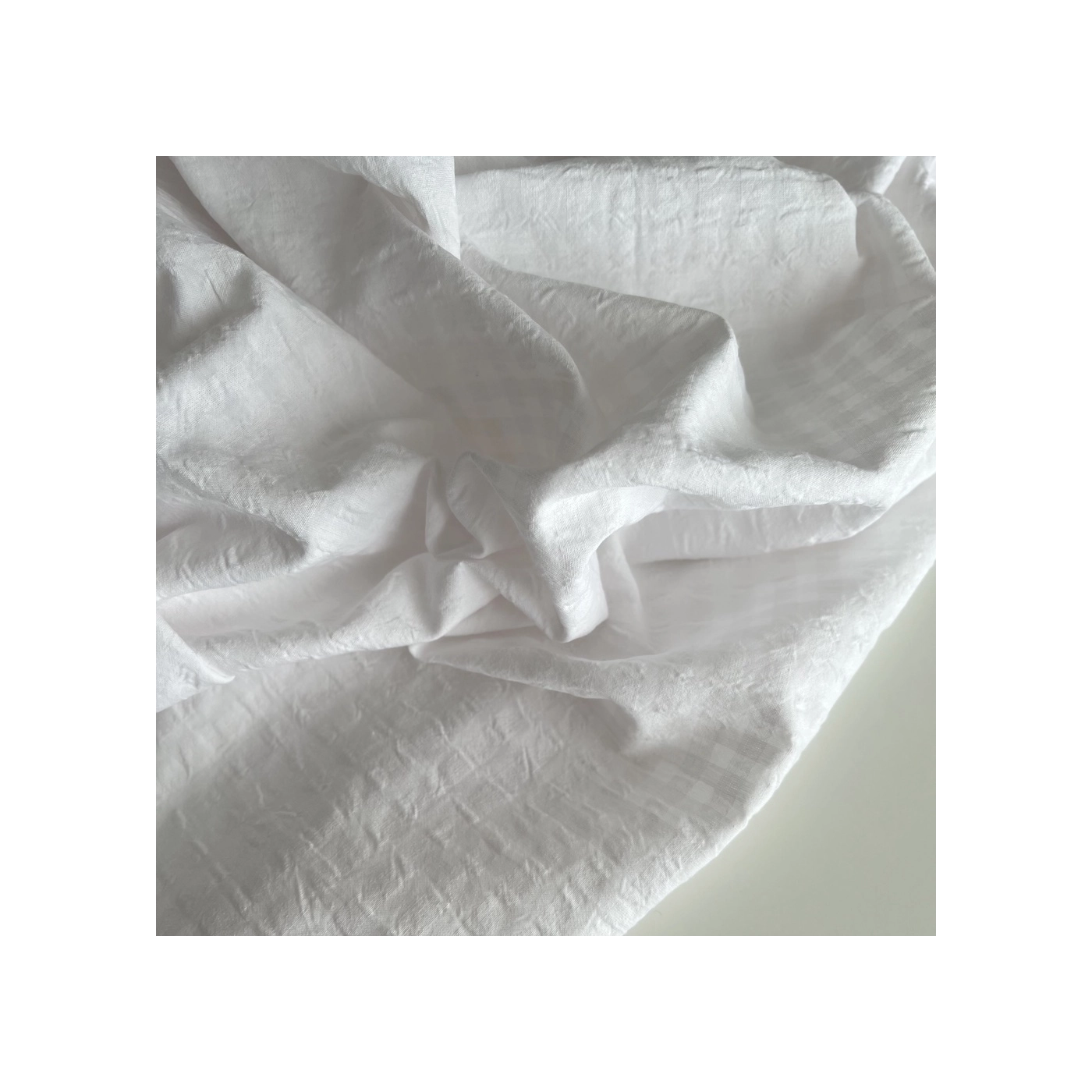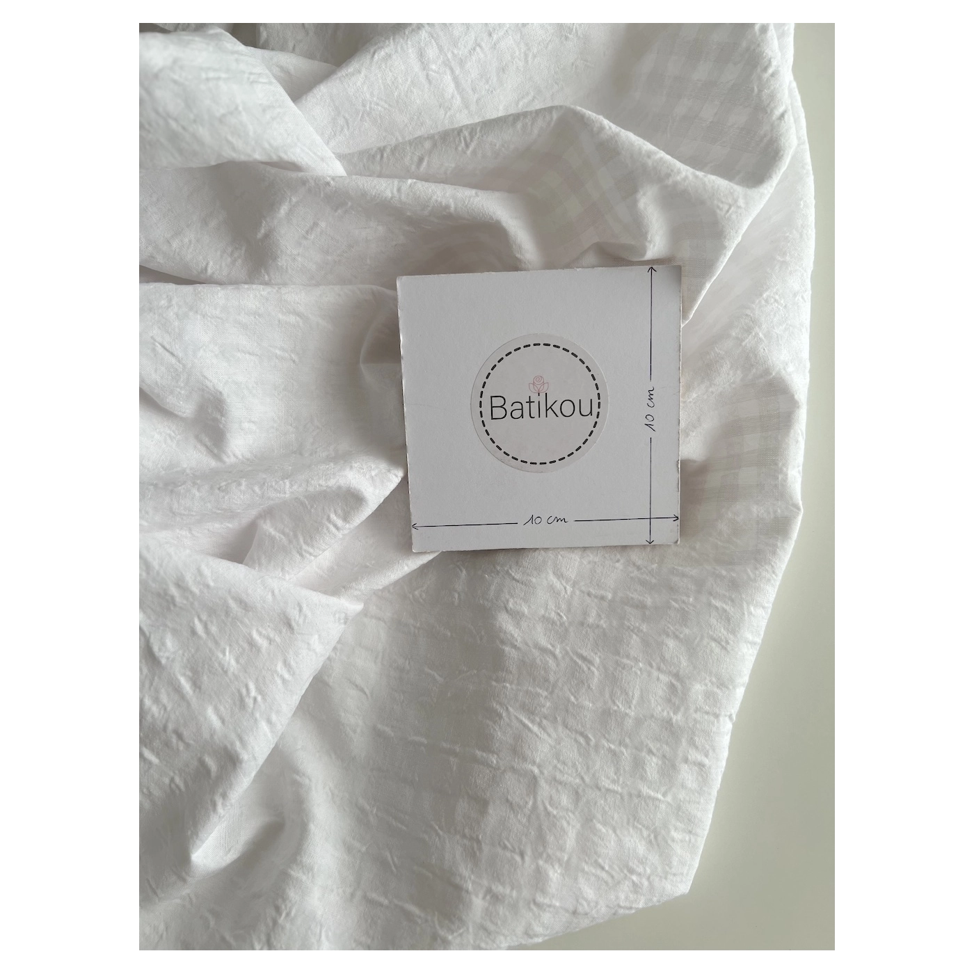 Coupon de 75 cm de Seersucker / Coton gaufré vichy 6mm blanc / blanc