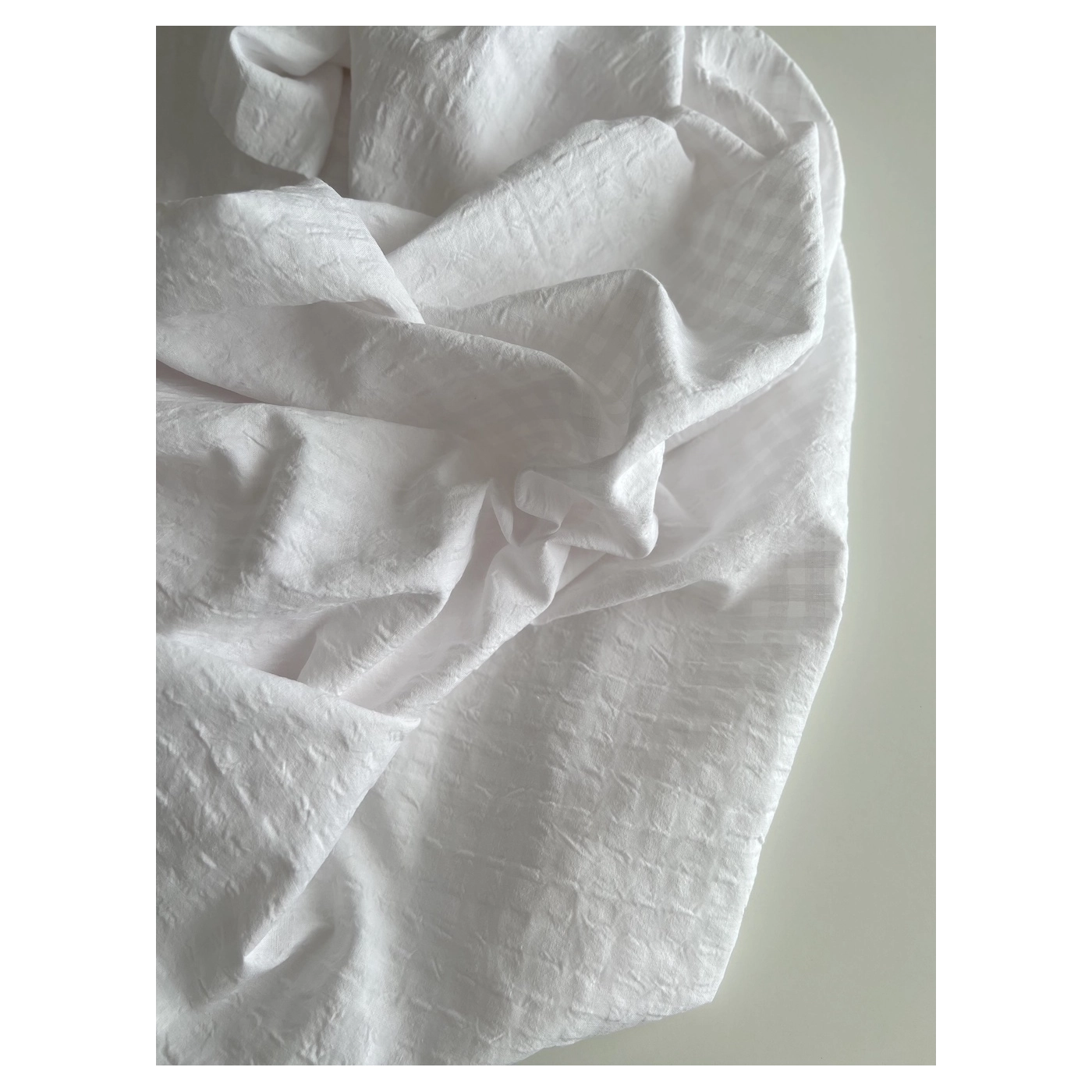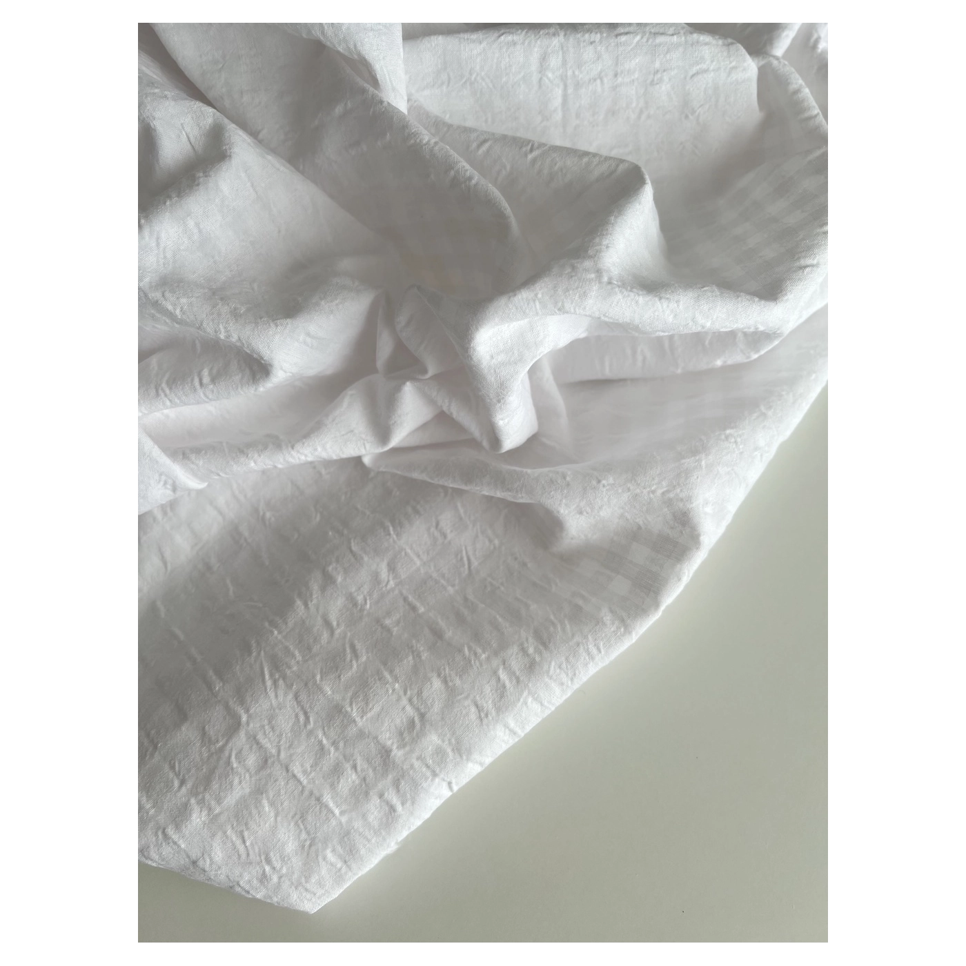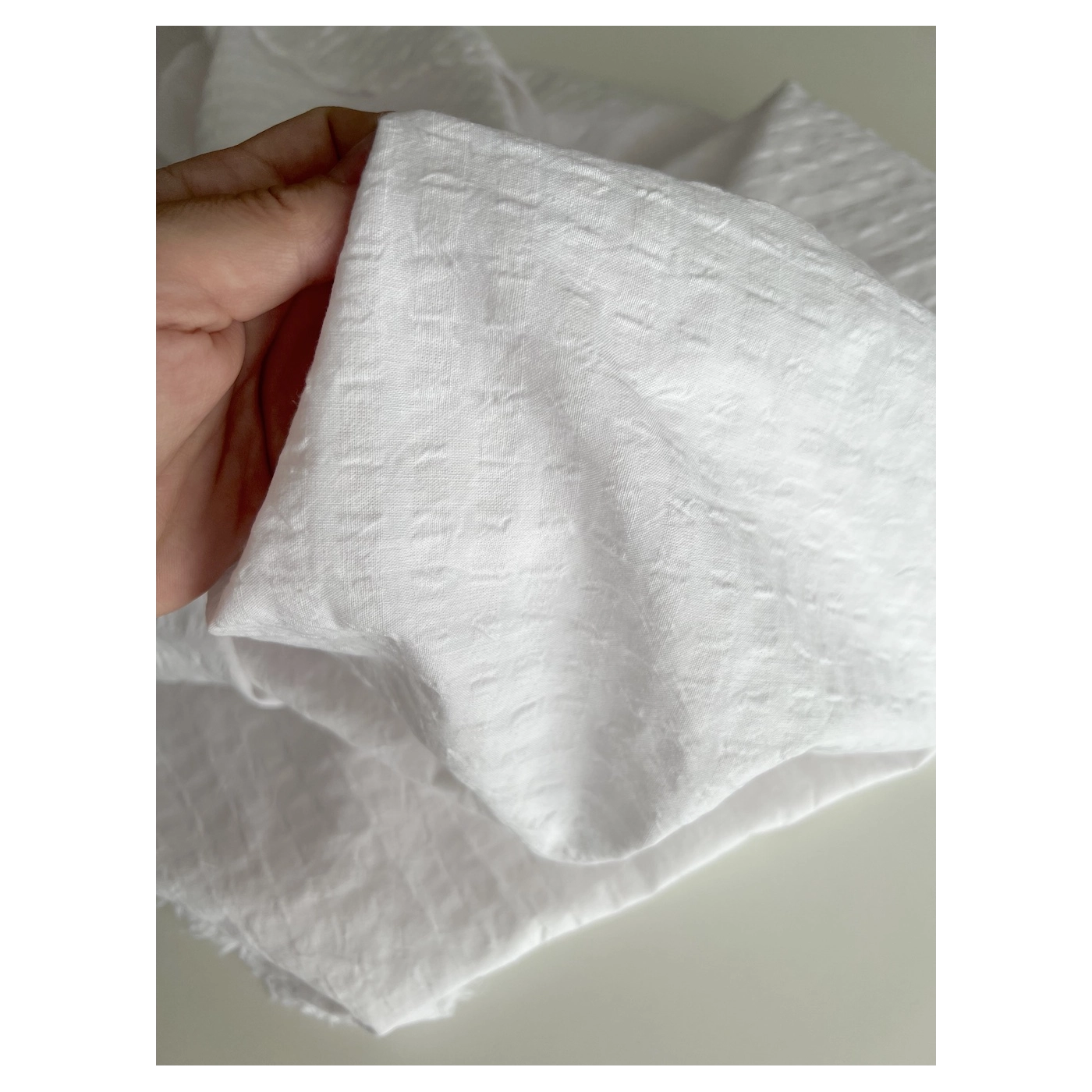 Coupon de 75 cm de Seersucker / Coton gaufré vichy 6mm blanc / blanc