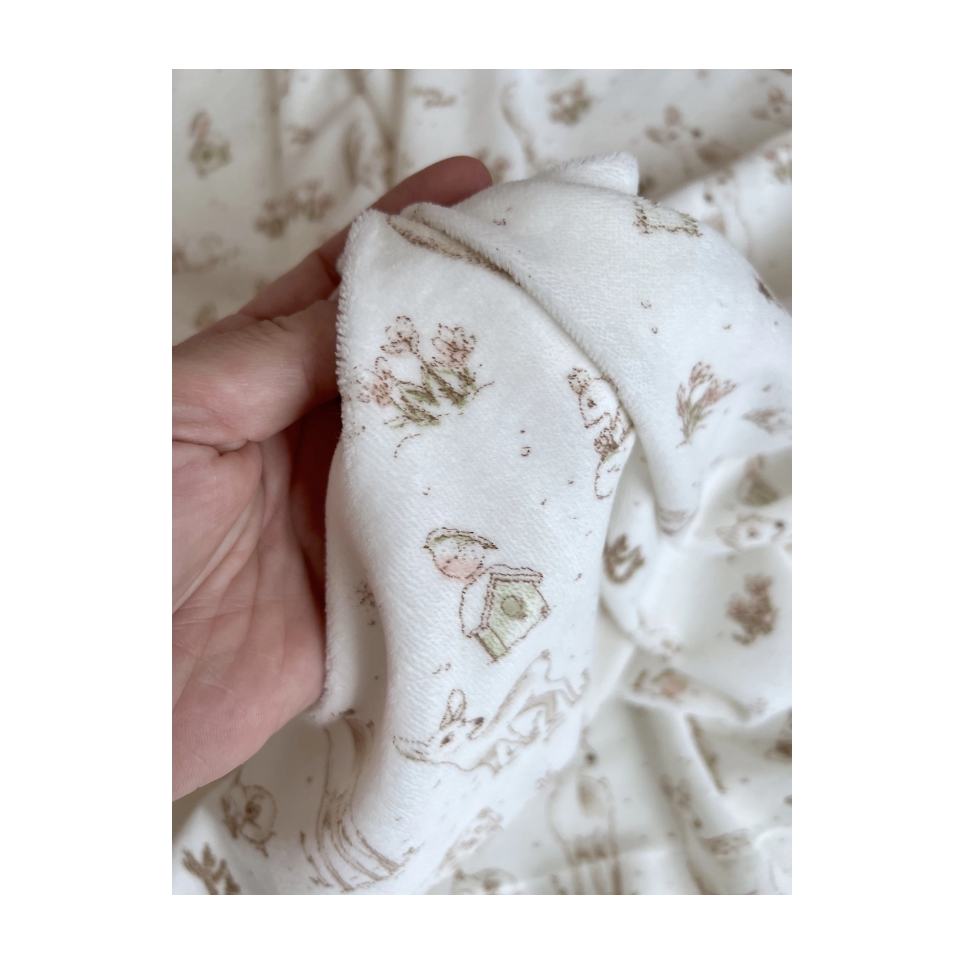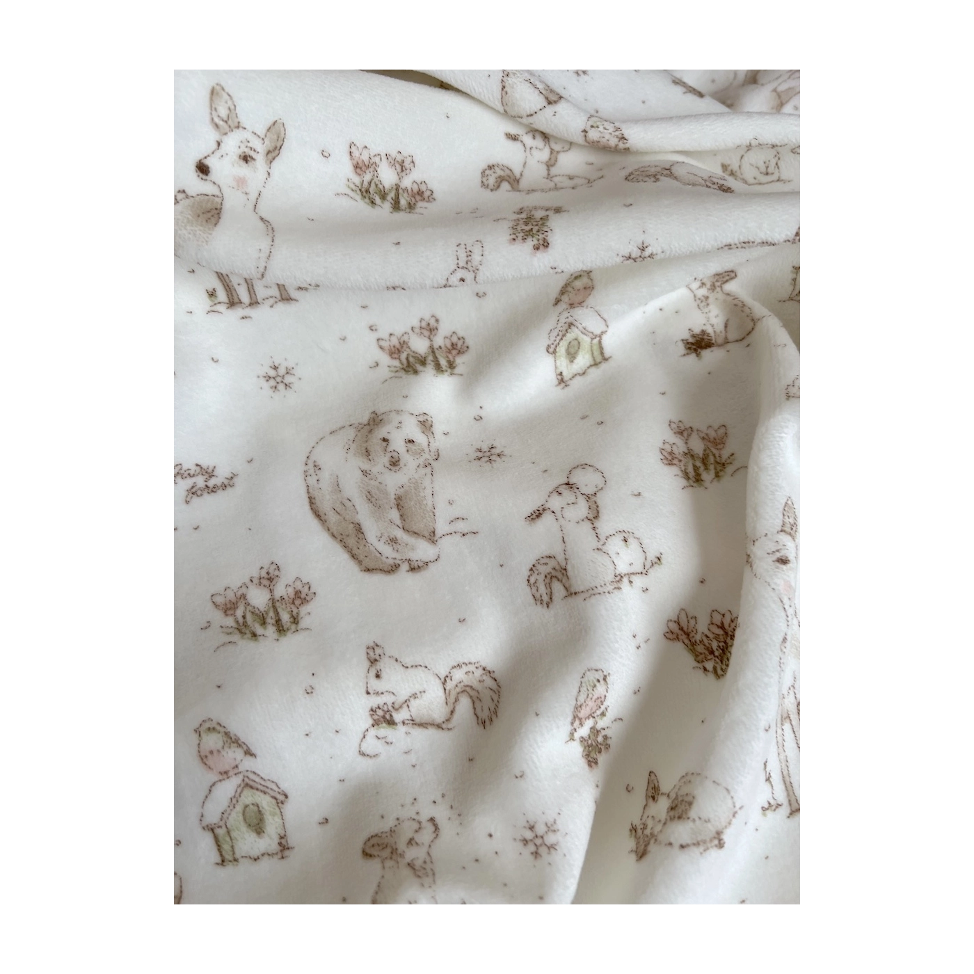 Coupon de 150 cm de Robin - Velours de coton Nicky motif forêt tons beige