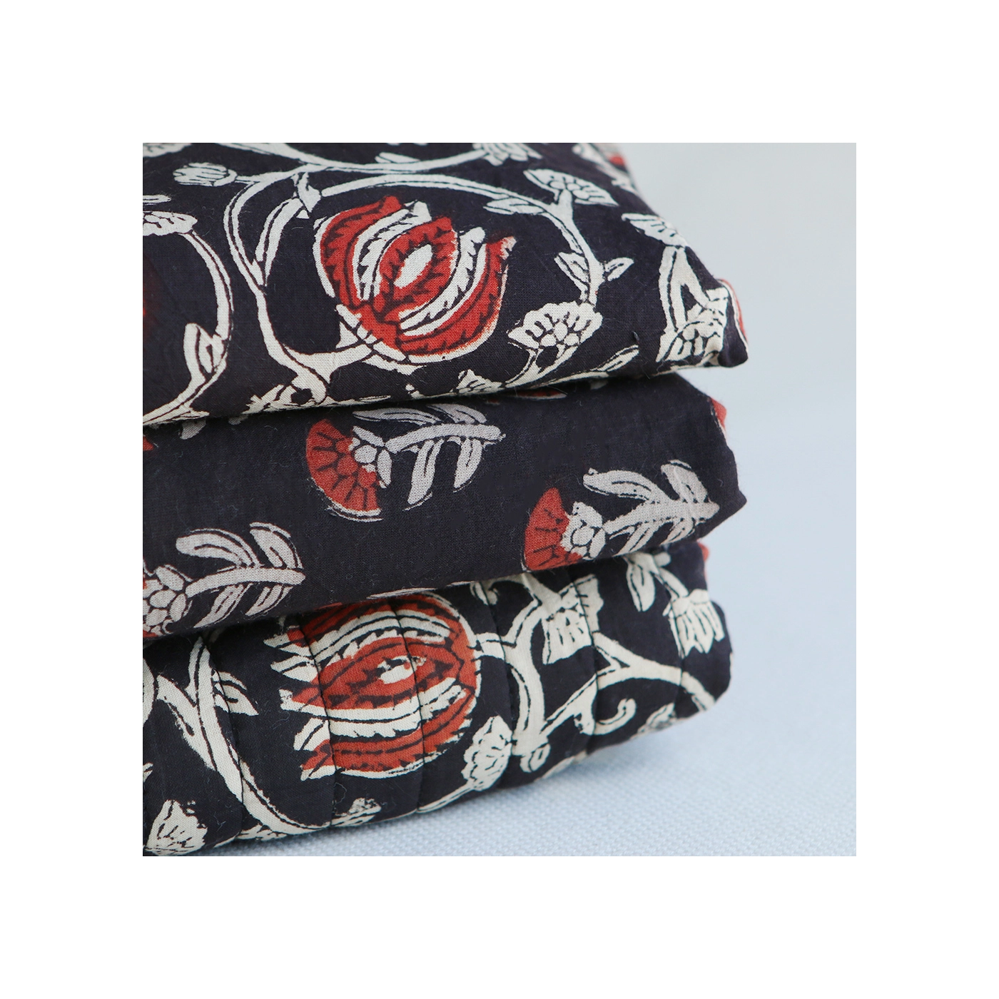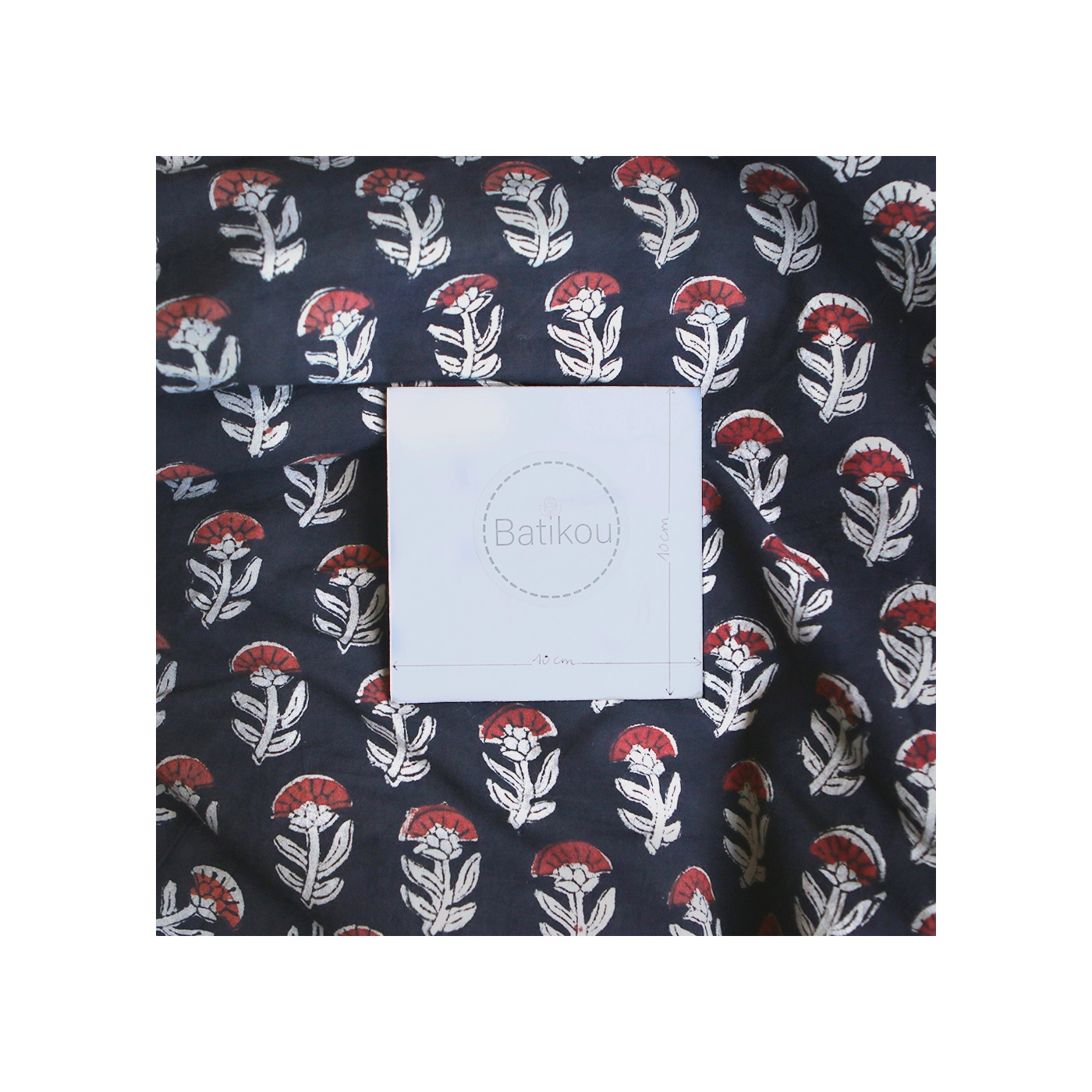 A noter que le processus artisanal (impression à la main, au tampon en bois) de ce tissu fait que chaque pièce est unique et que l'impression n'est pas aussi parfaite qu'un processus industriel.