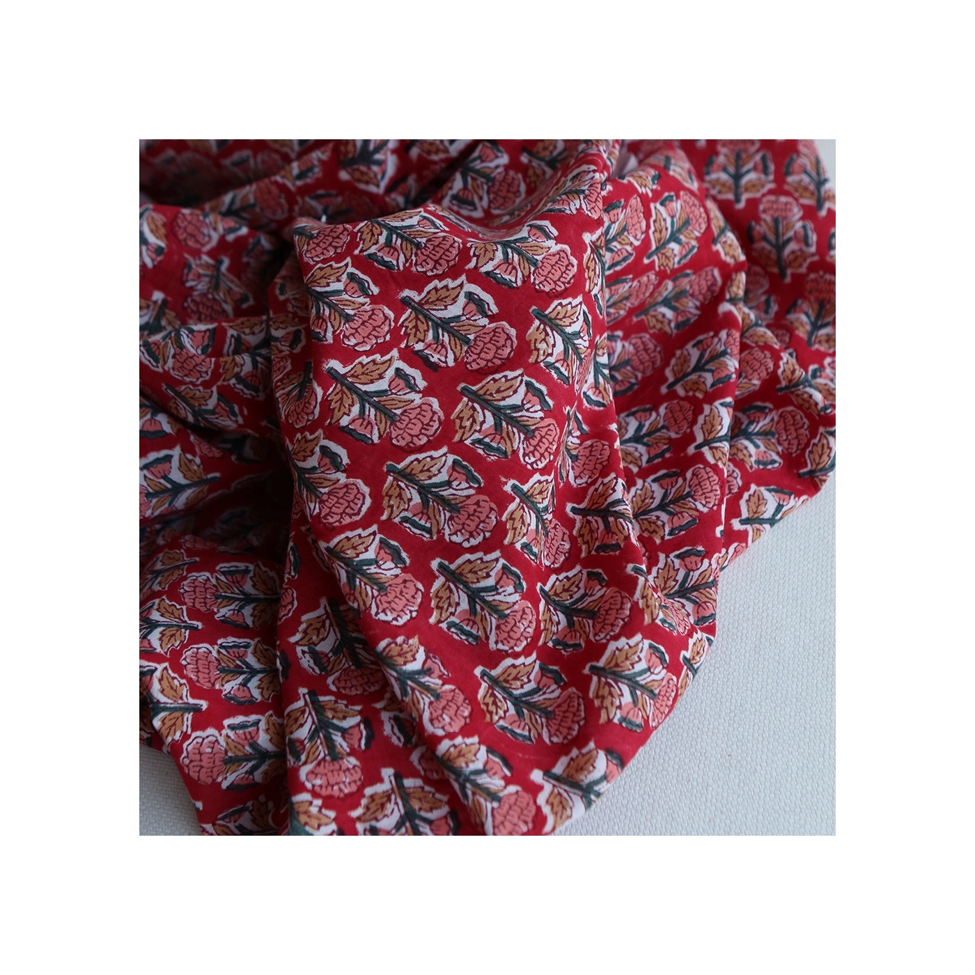 Le block print est un artisanat ancestral indien : le dessin est gravé sur un tampon en bois, chaque couleur nécessitant une étape d'impression distincte.