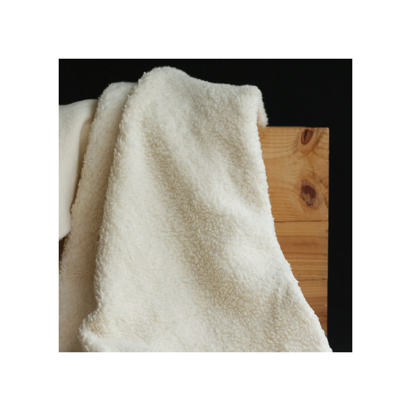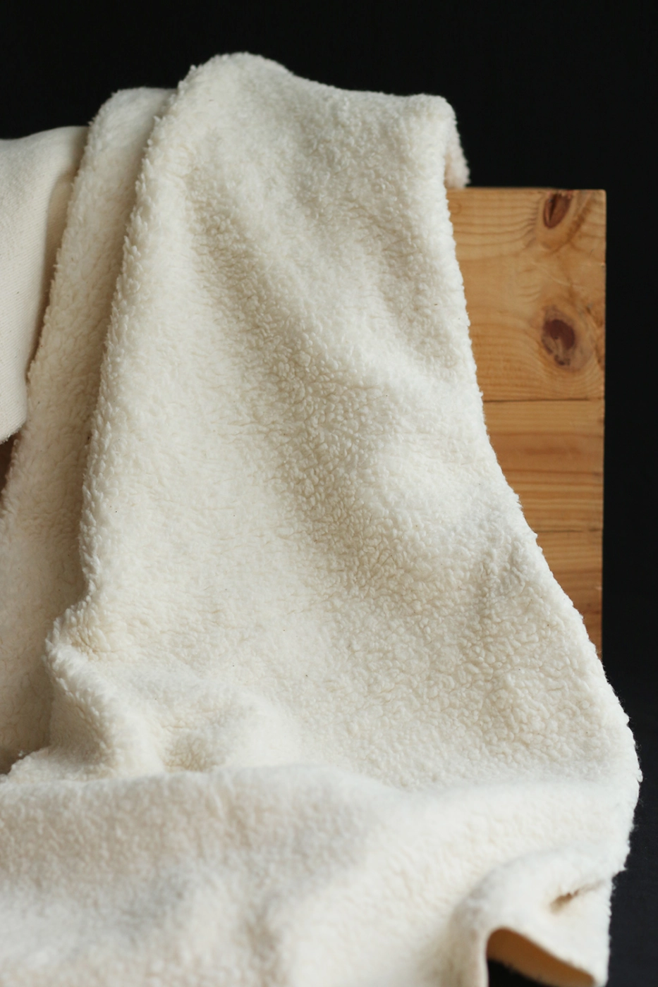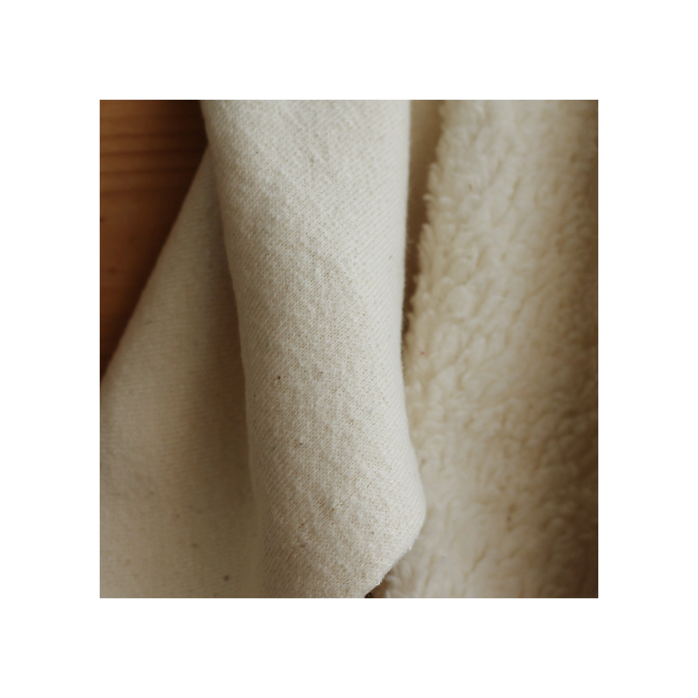 Coupon de 77cm x 96 cm de laize de Billy - Fausse fourrure / Moumoute / Sherpa 100% coton BIO non blanchi écru