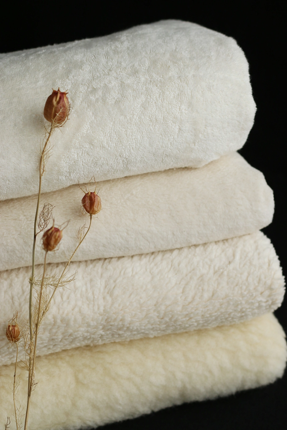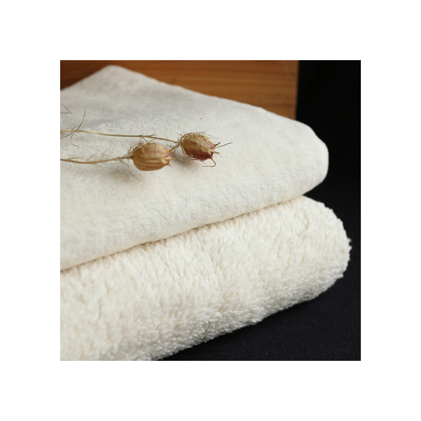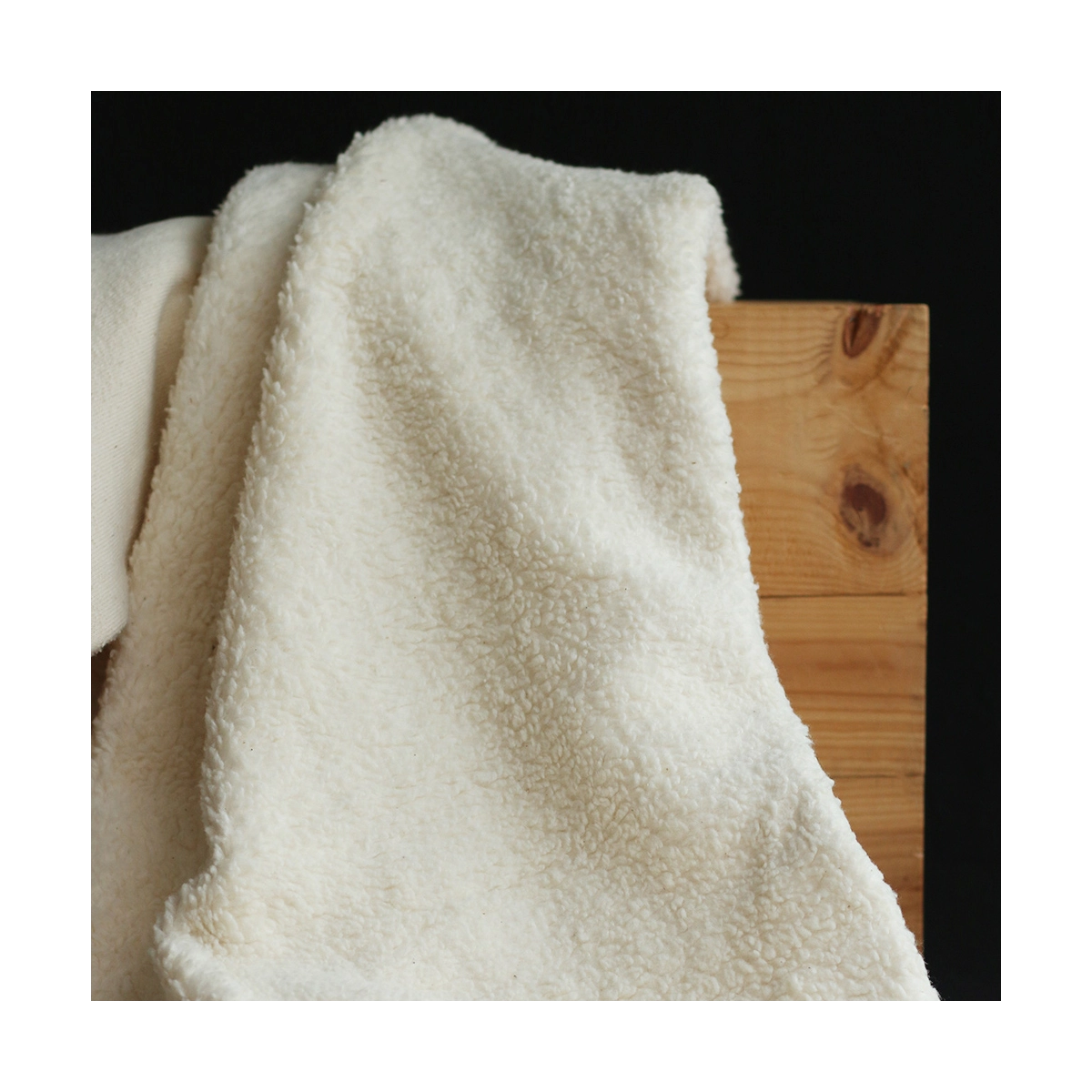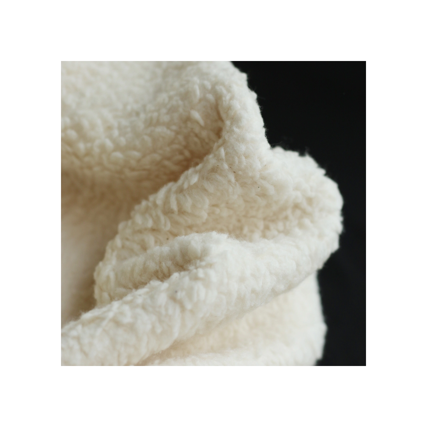 Coupon de 77cm x 96 cm de laize de Billy - Fausse fourrure / Moumoute / Sherpa 100% coton BIO non blanchi écru