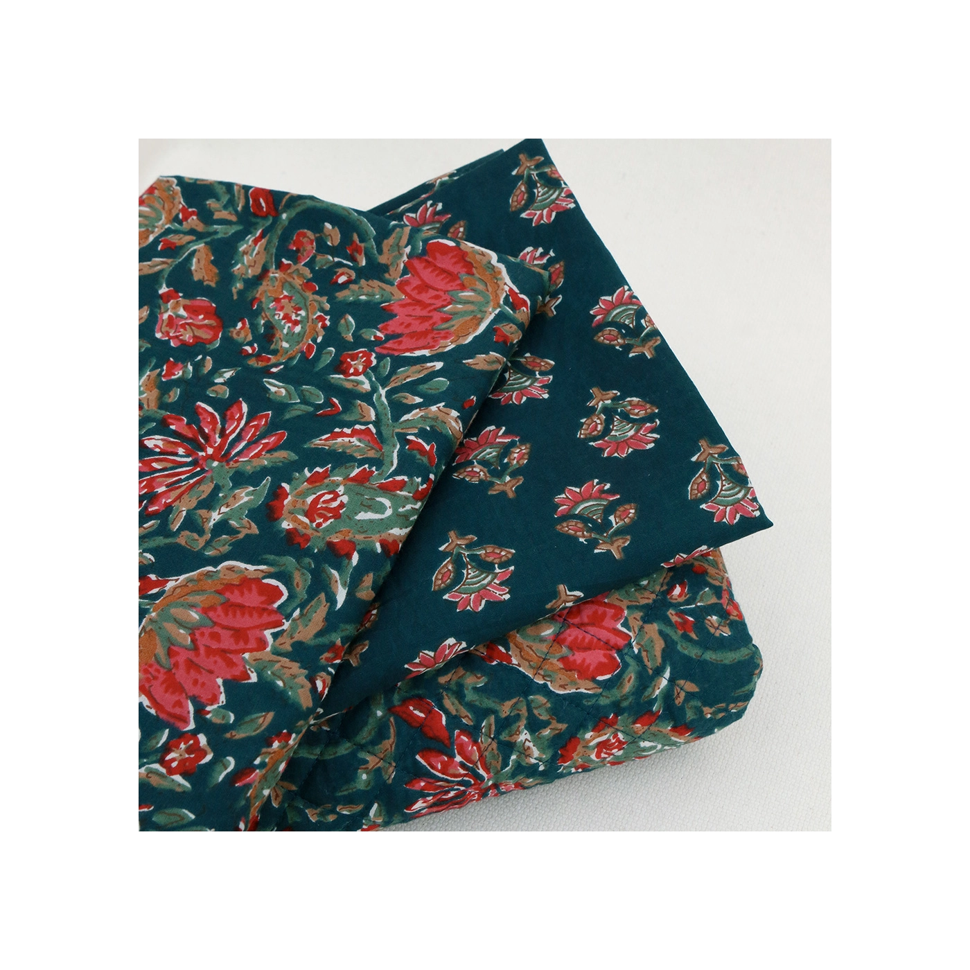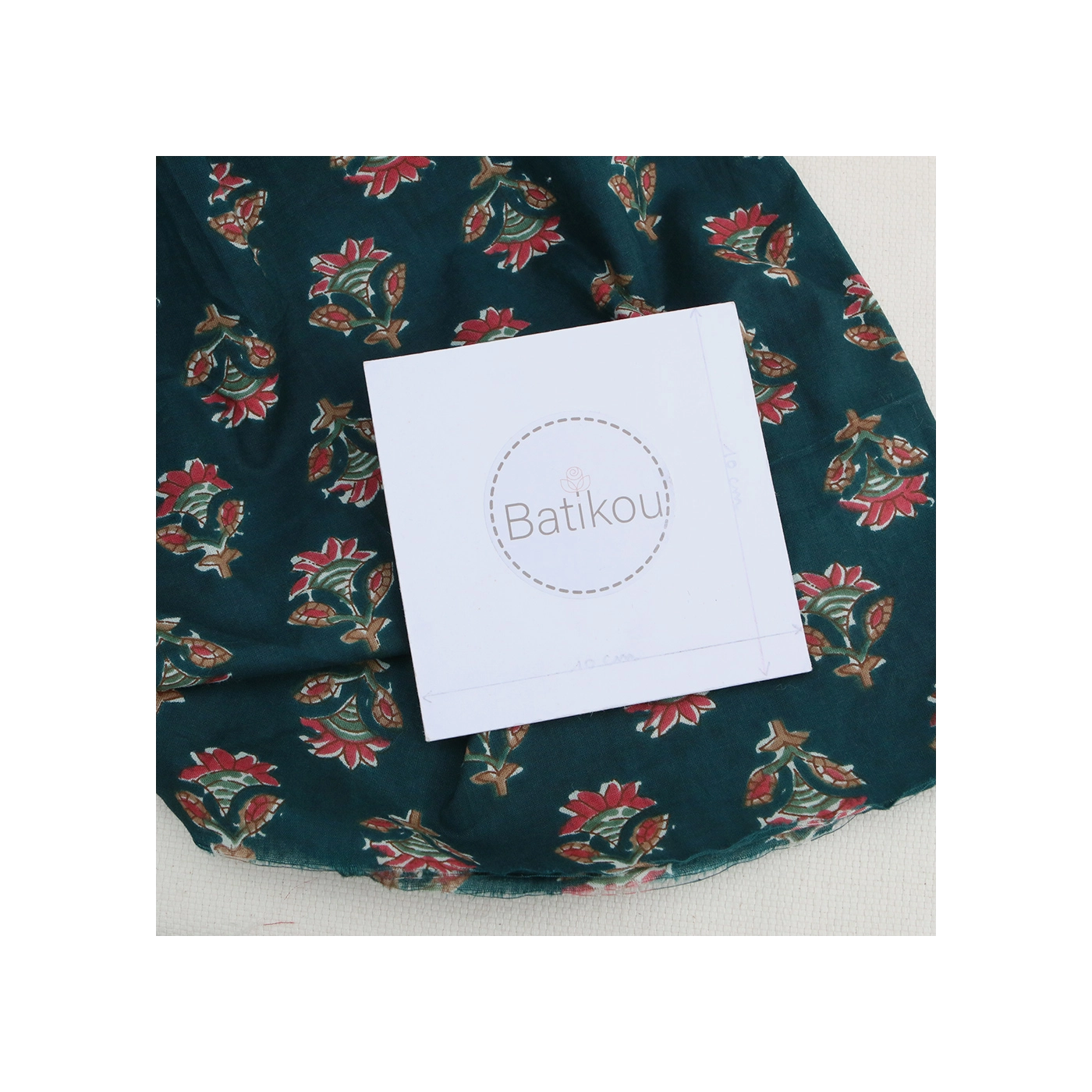 A noter que le processus artisanal (impression à la main, au tampon en bois) de ce tissu fait que chaque pièce est unique et que l'impression n'est pas aussi parfaite qu'un processus industriel.