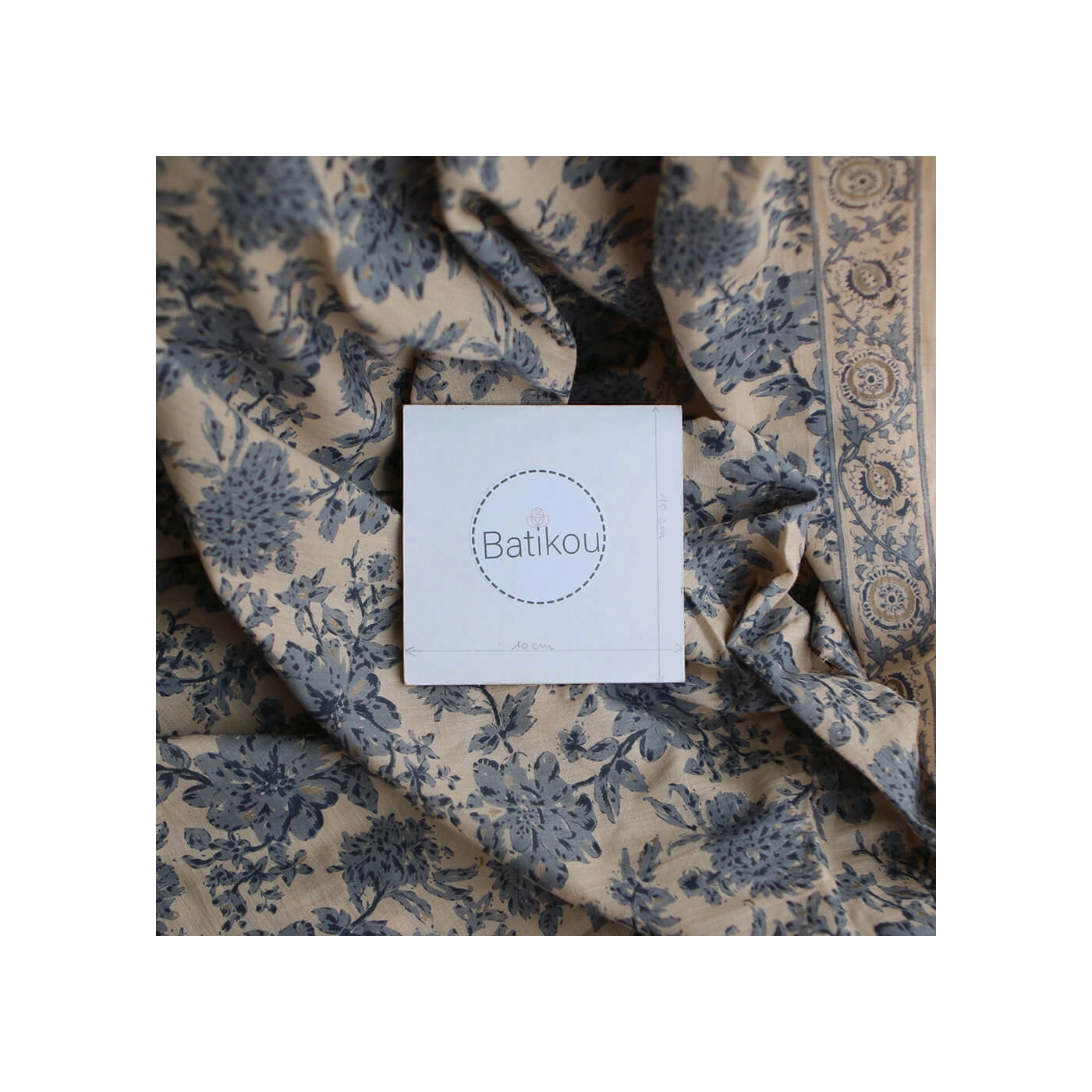 A noter que le processus artisanal (impression à la main, au tampon en bois) de ce tissu fait que chaque pièce est unique et que l'impression n'est pas aussi parfaite qu'un processus industriel.