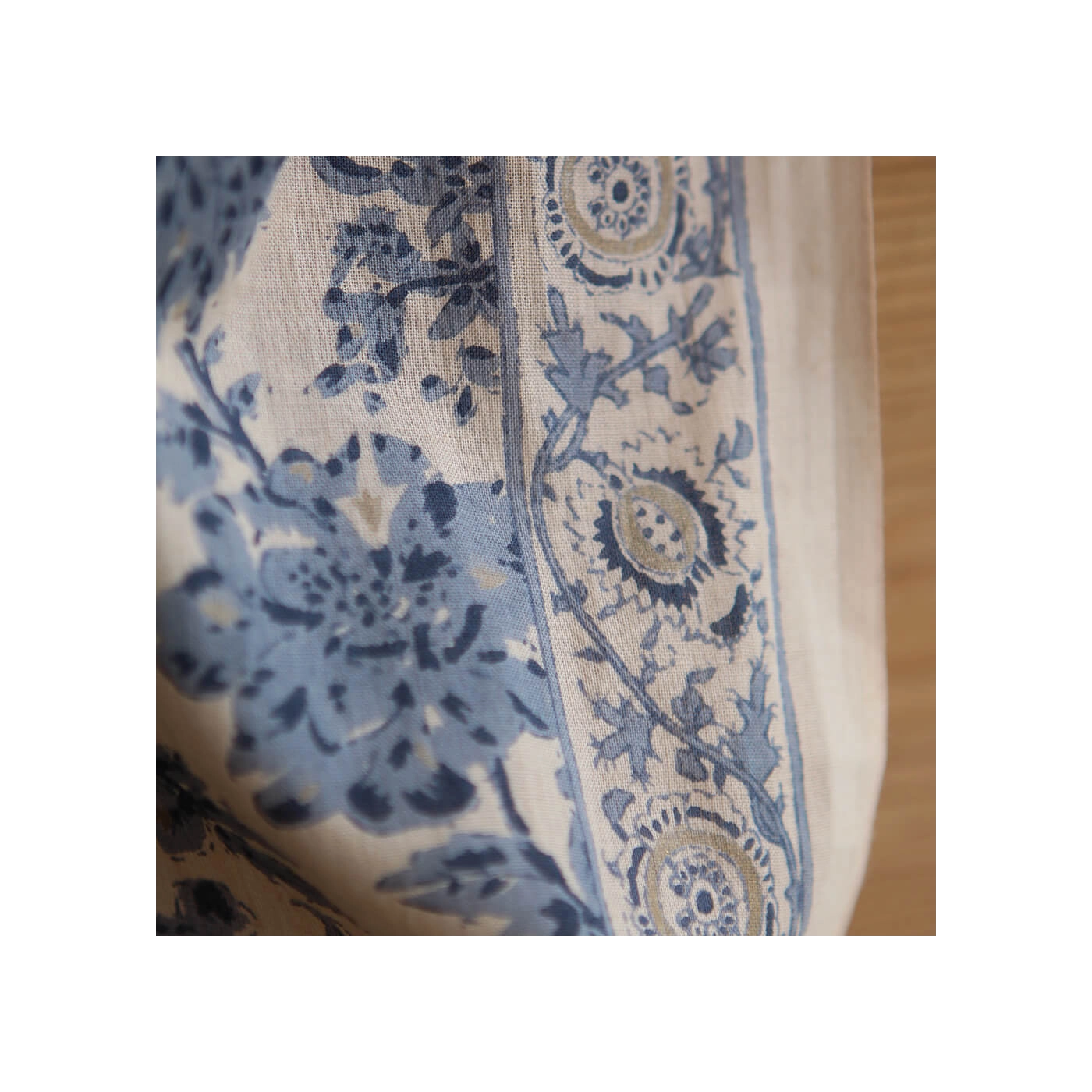 Le block print est un artisanat ancestral indien : le dessin est gravé sur un tampon en bois, chaque couleur nécessitant une étape d'impression distincte.