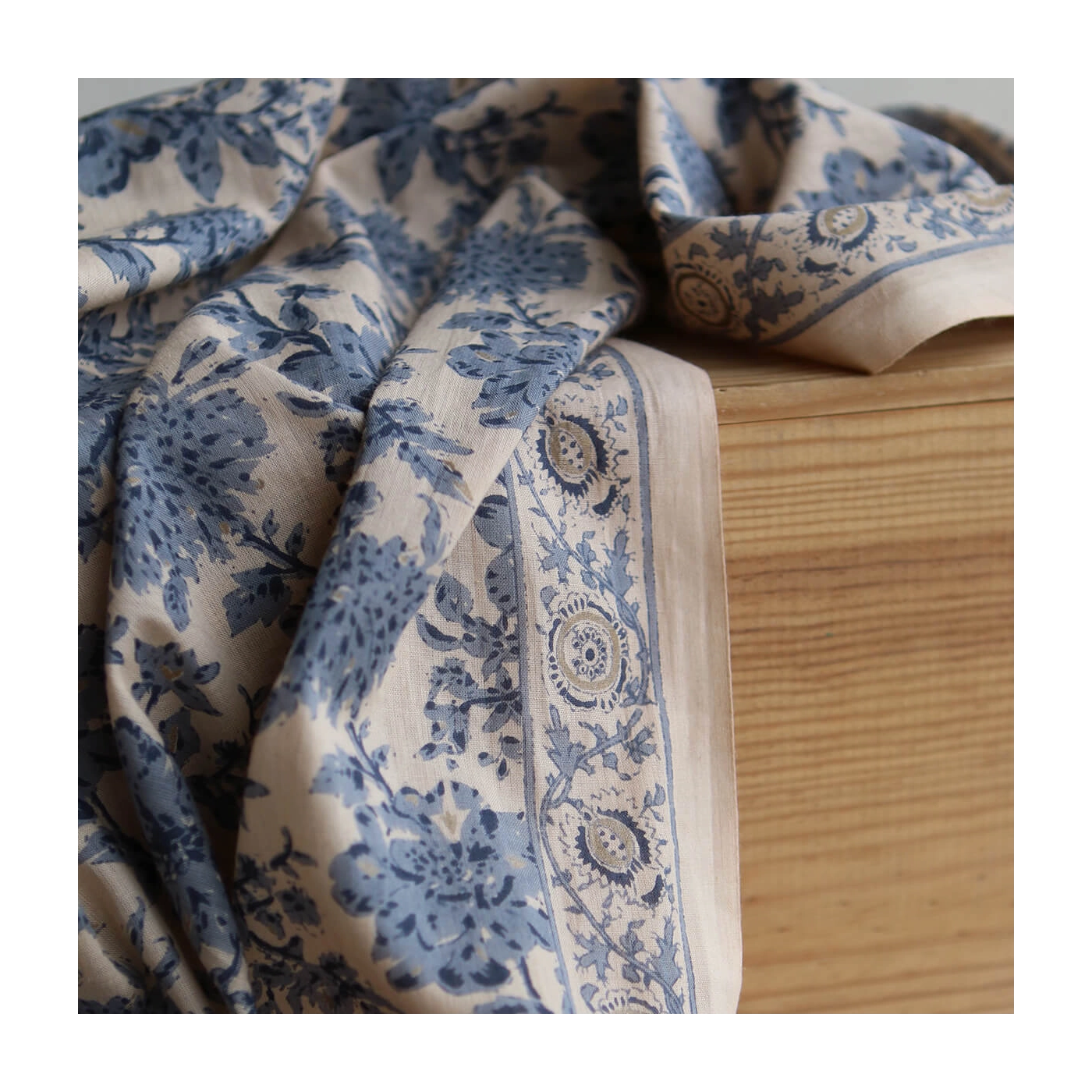 Anjali Bleu - Tissu indien en coton imprimé main Hand Block