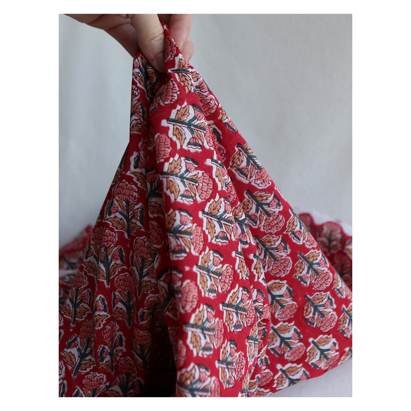 A noter que le processus artisanal (impression à la main, au tampon en bois) de ce tissu fait que chaque pièce est unique et que l'impression n'est pas aussi parfaite qu'un processus industriel.