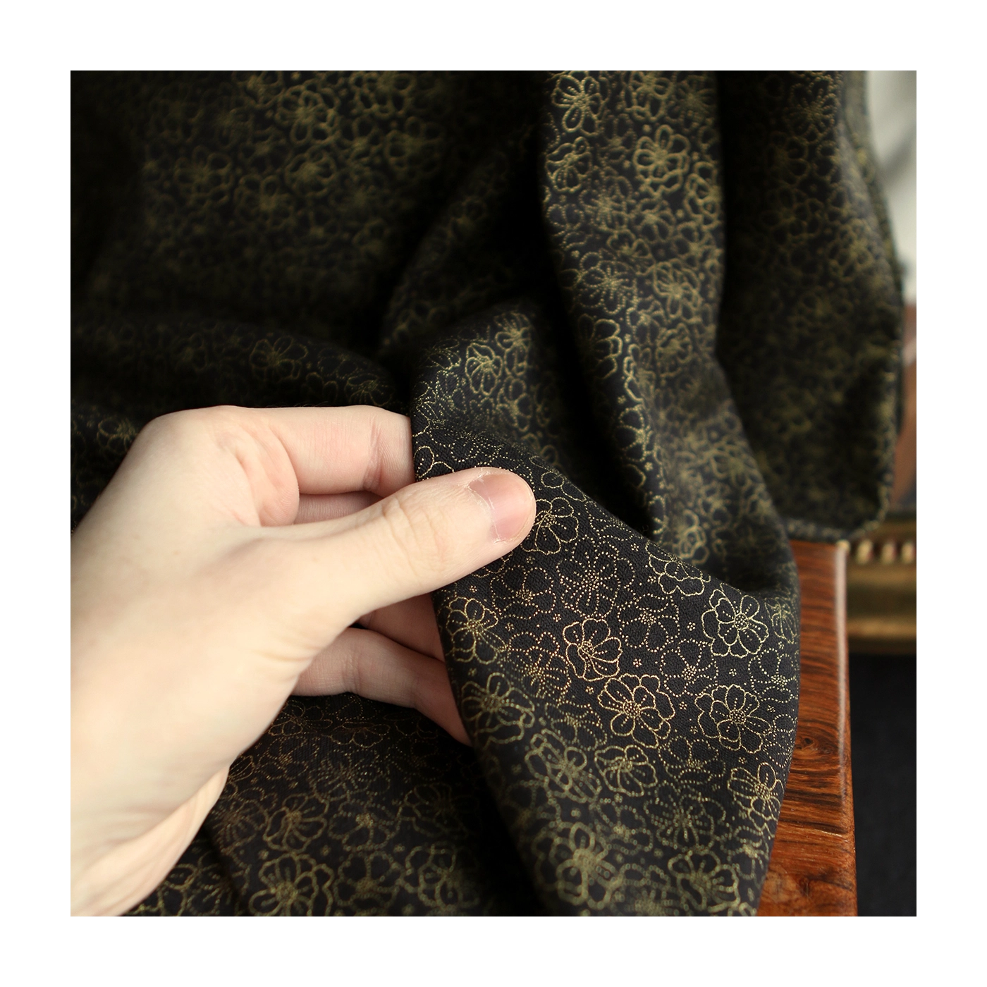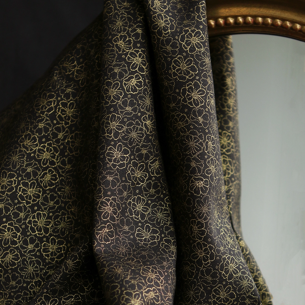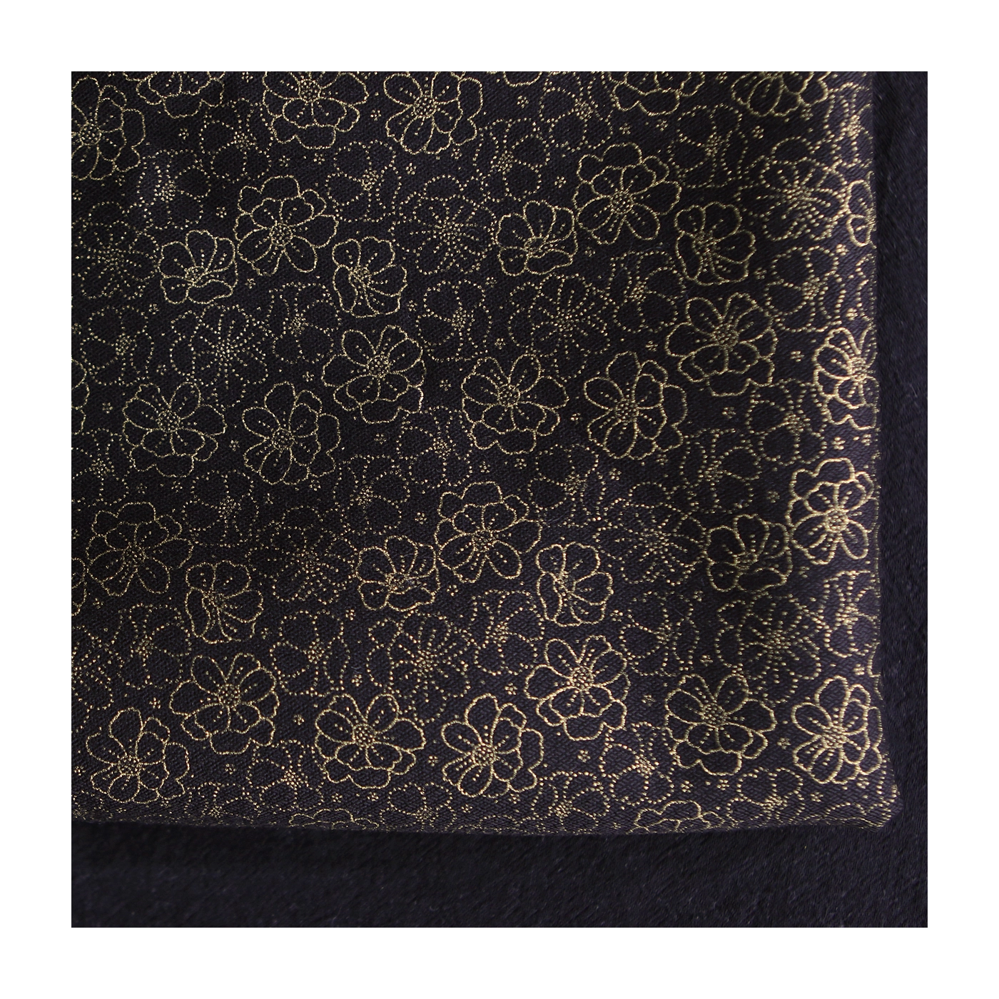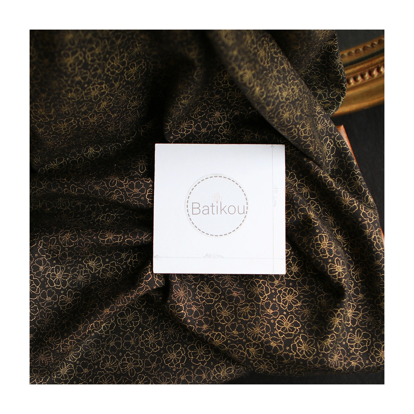 Coupon de 75 cm de Coton viscose motif doré fond noir