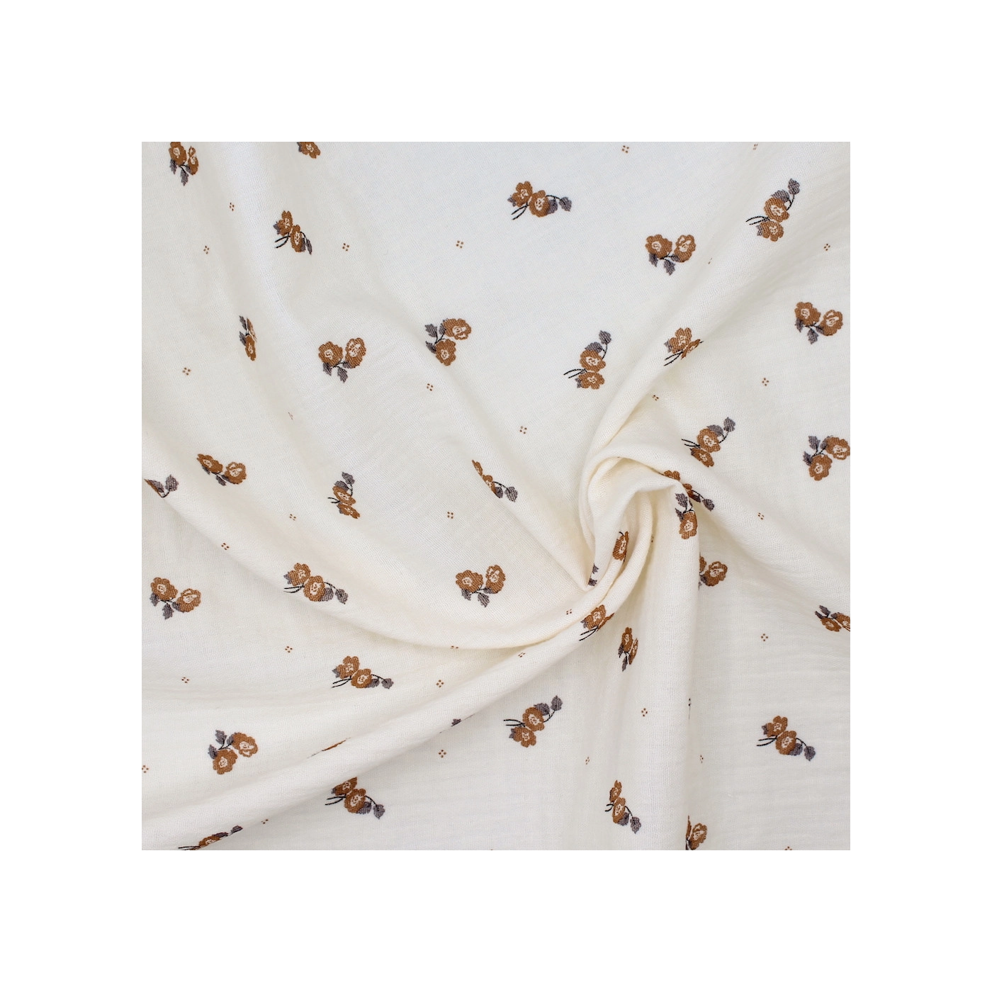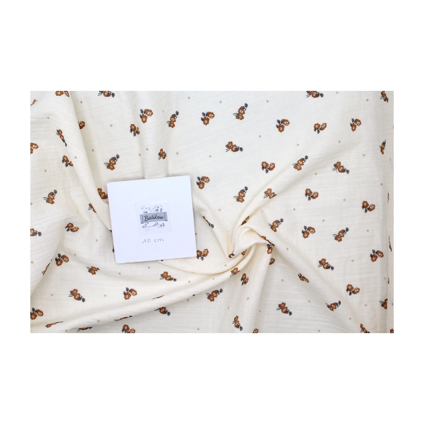 Coupon de 28 cm de Hana - Double gaze de coton BIO écru motif exclusif