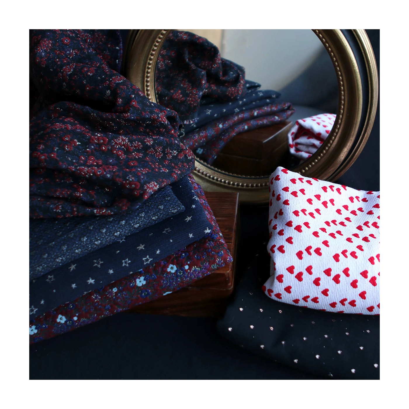 Coloris: noir et or rose, ce tissu peut être cousu sur les 2 faces