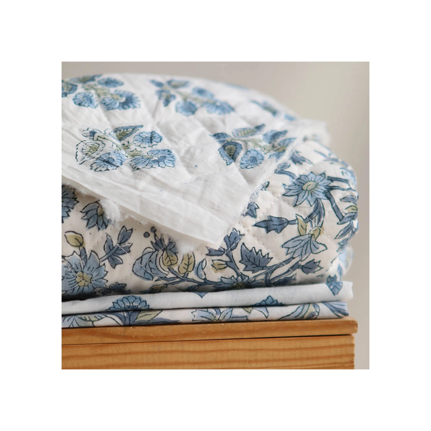 Le block print est un artisanat ancestral indien : le dessin est gravé sur un tampon en bois, chaque couleur nécessitant une étape d'impression distincte.