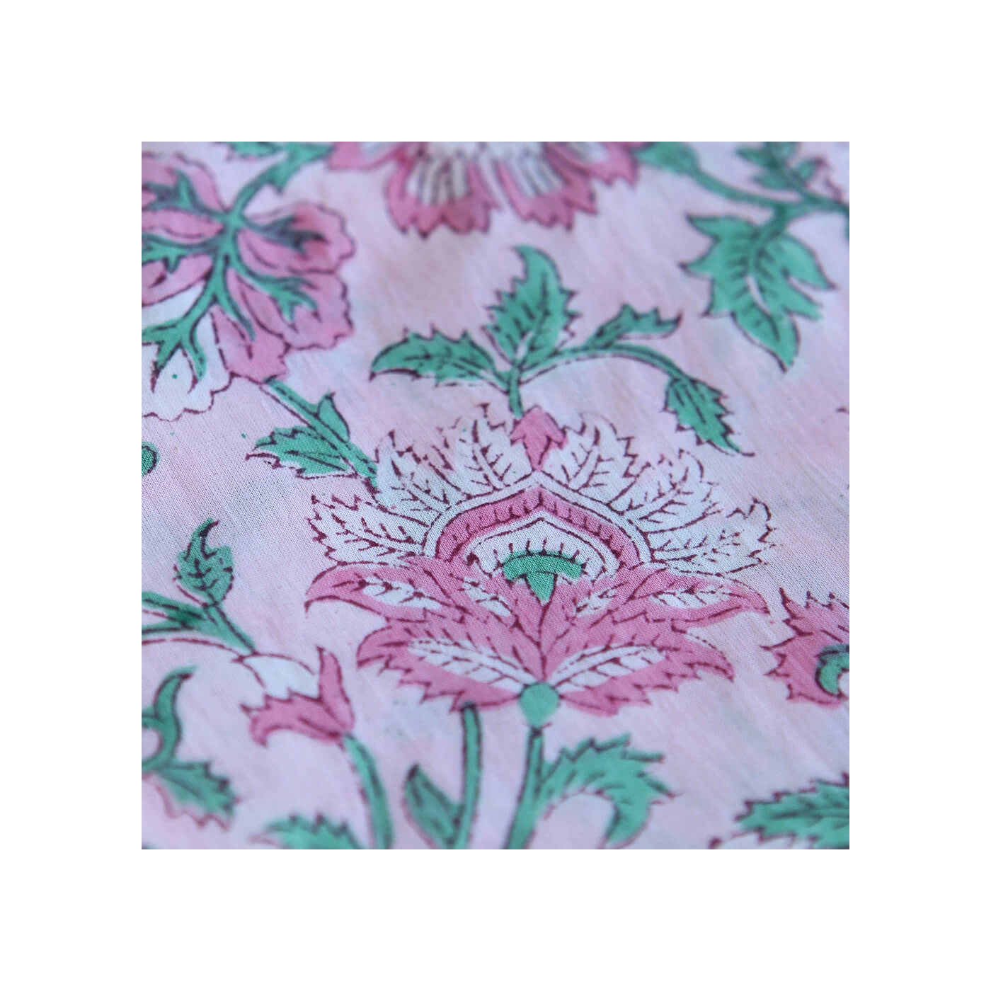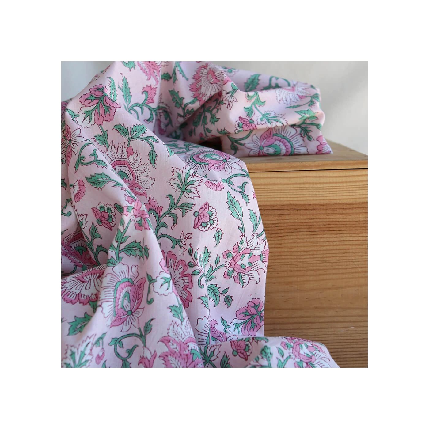 Le block print est un artisanat ancestral indien : le dessin est gravé sur un tampon en bois, chaque couleur nécessitant une étape d'impression distincte.