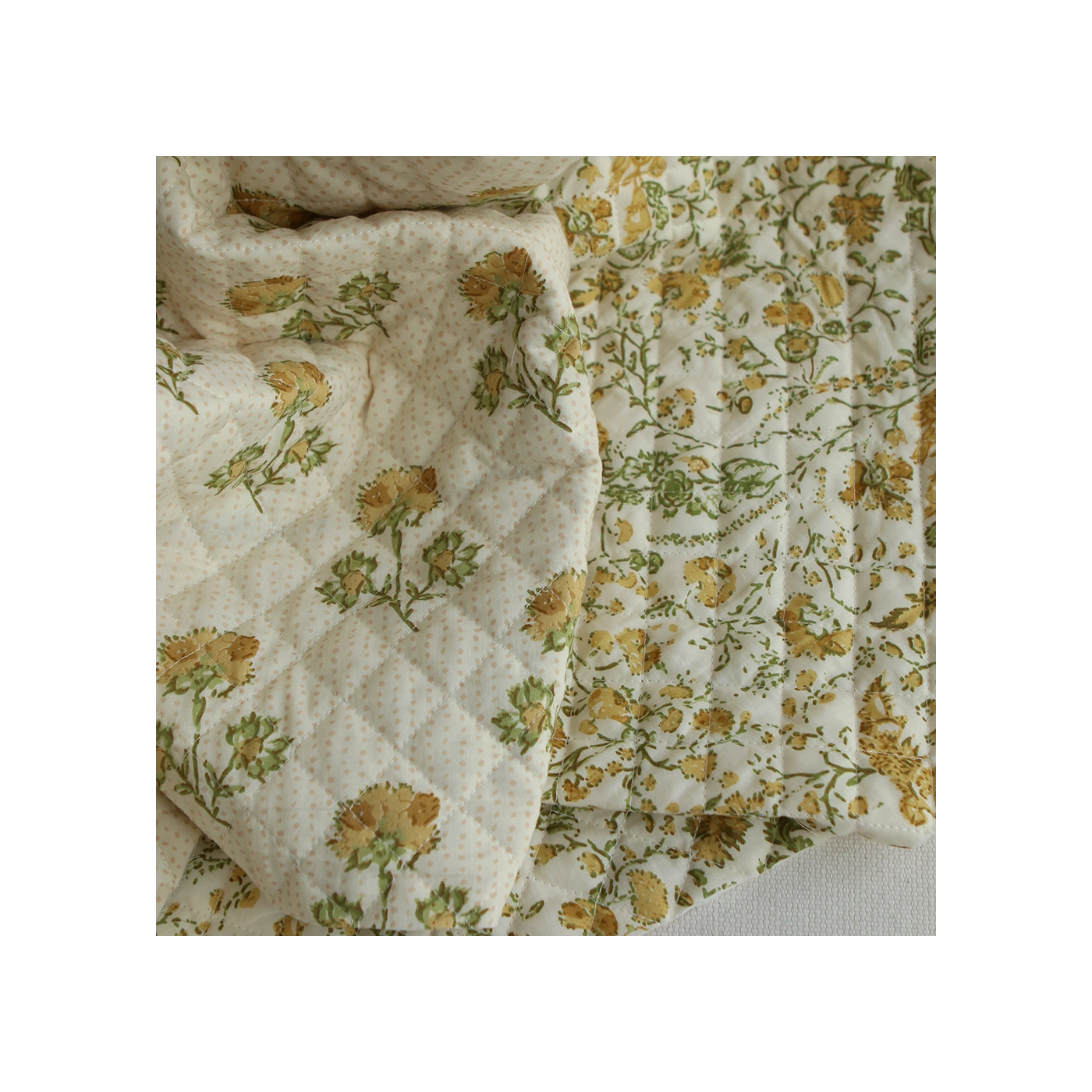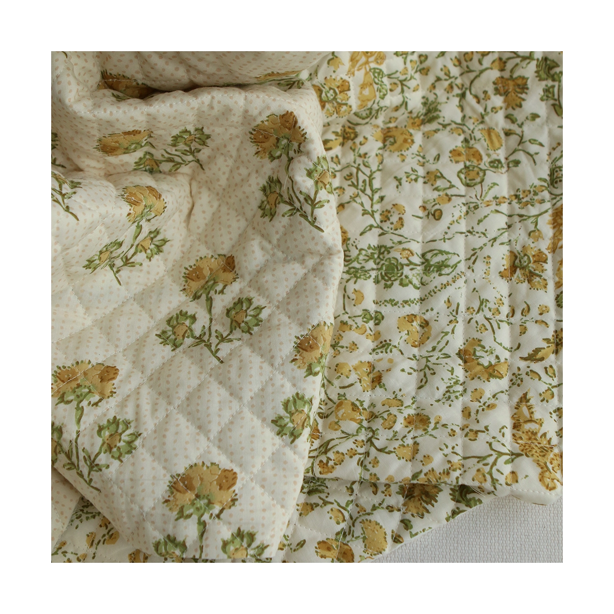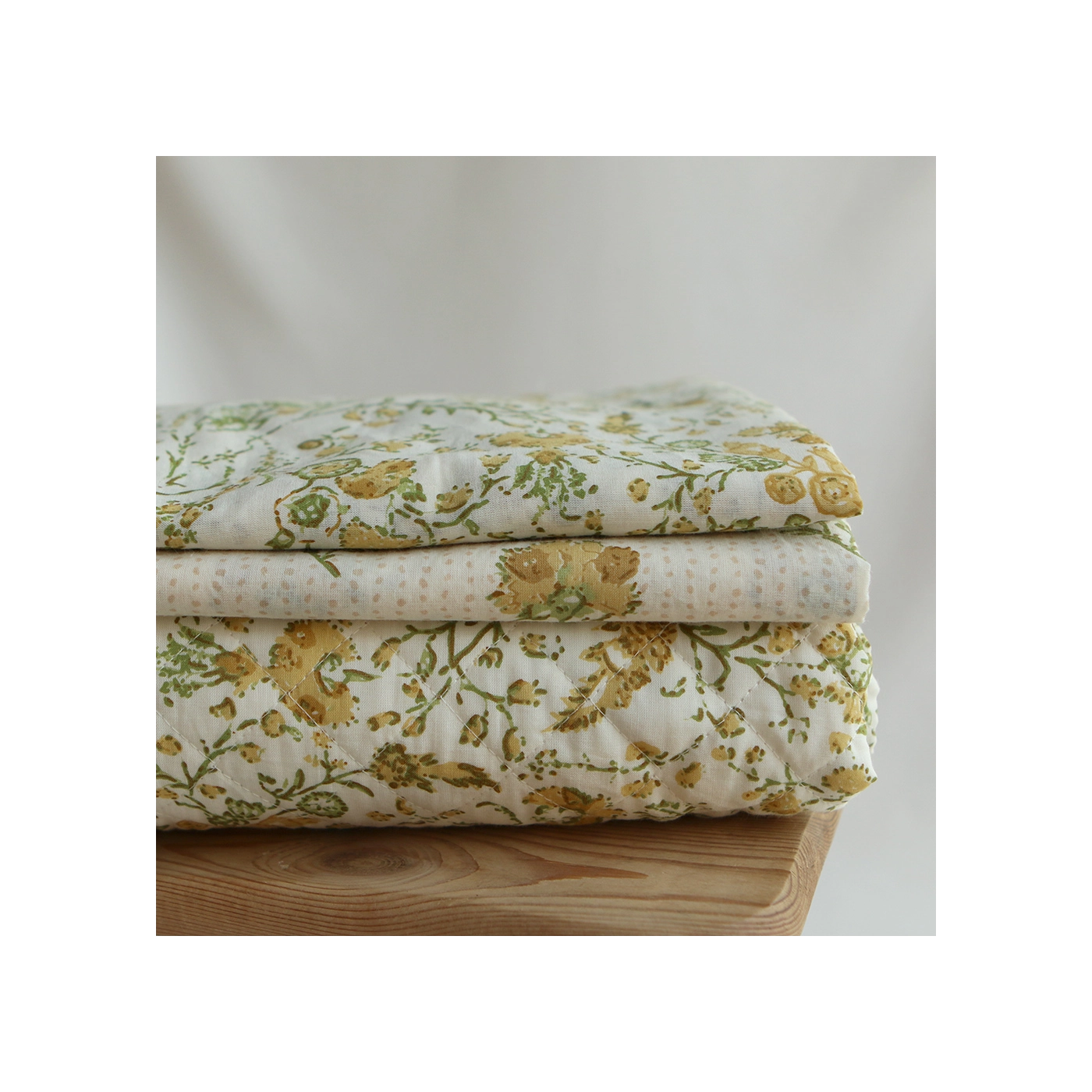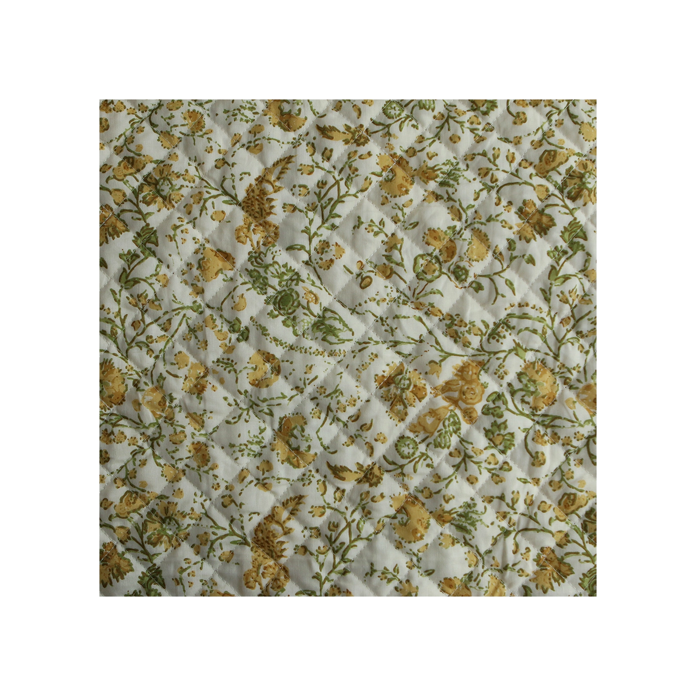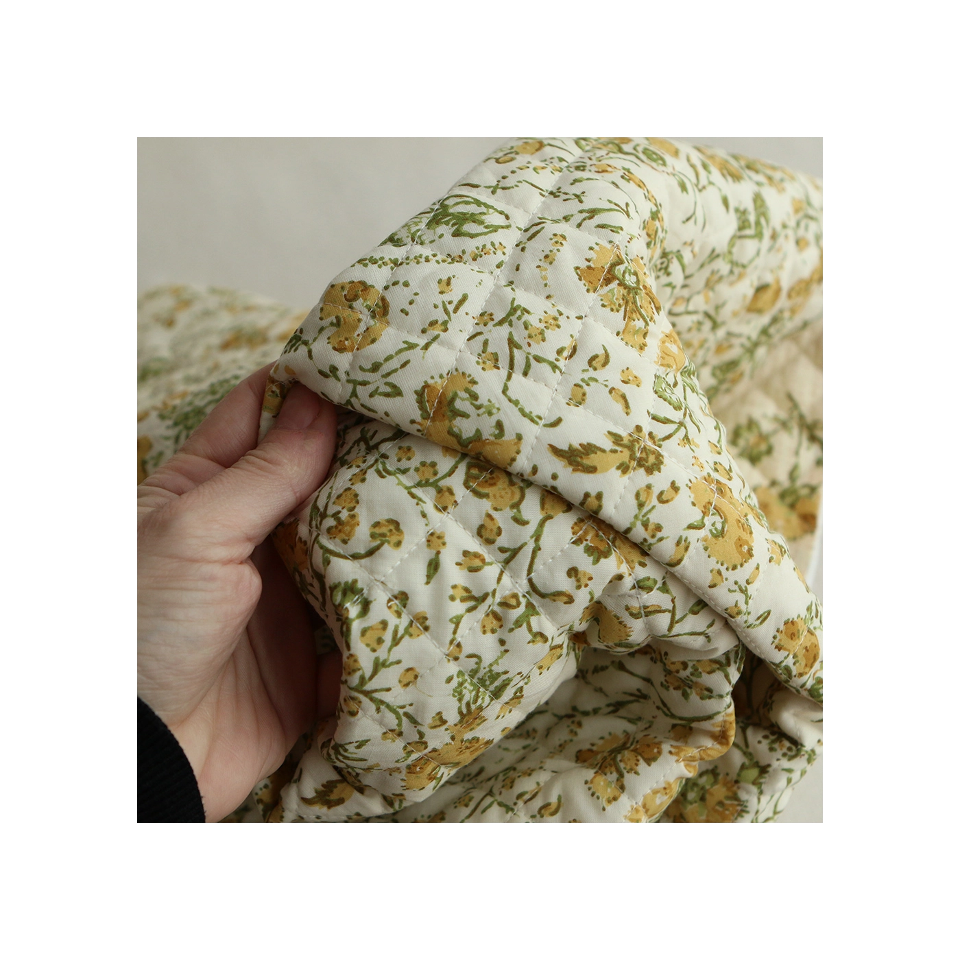 Coupon de 190 cm de Karishma jaune - Tissu indien matelassé double face coton hand block largeur 100cm