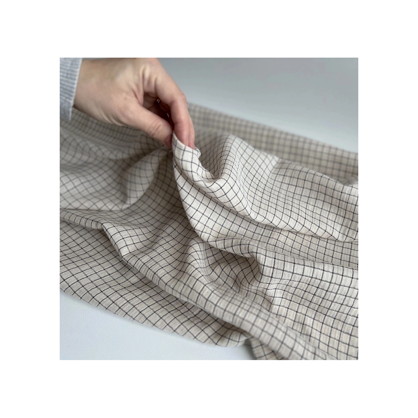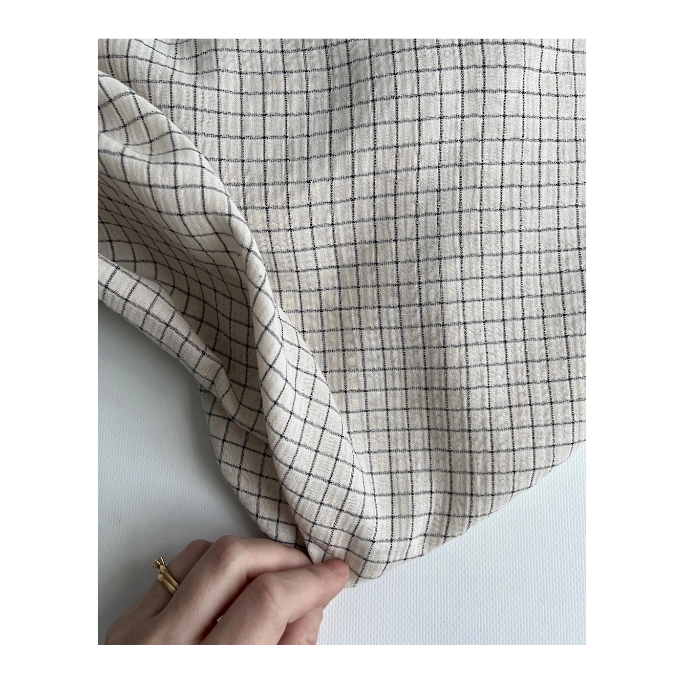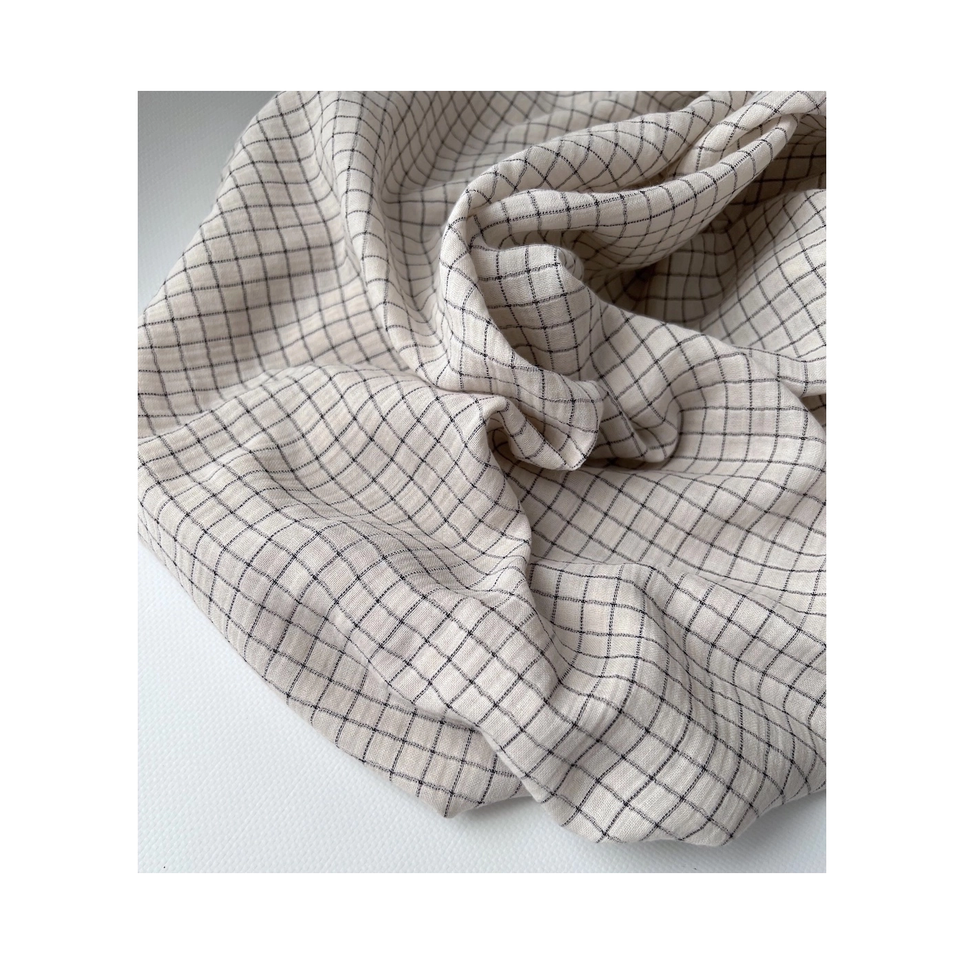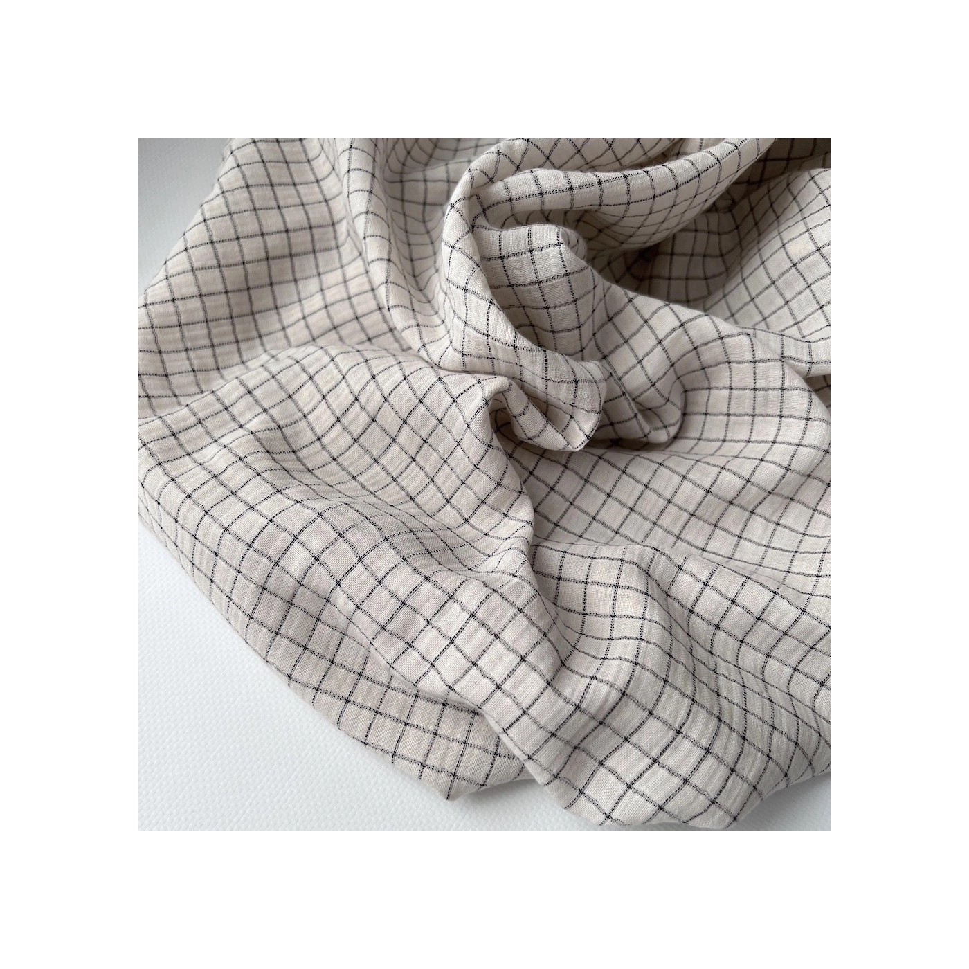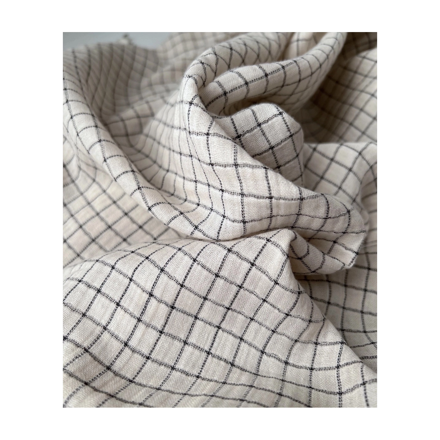 Gaze de coton lisse tissage carreaux noirs