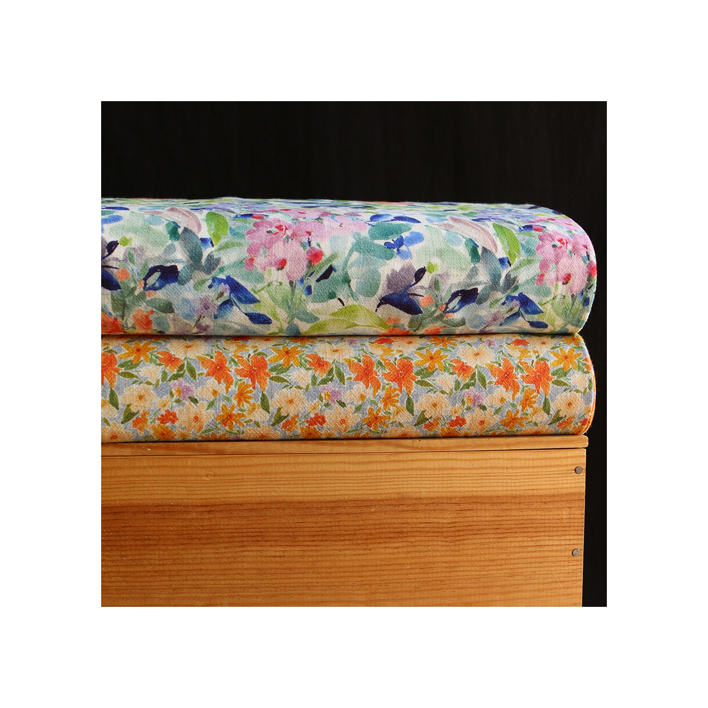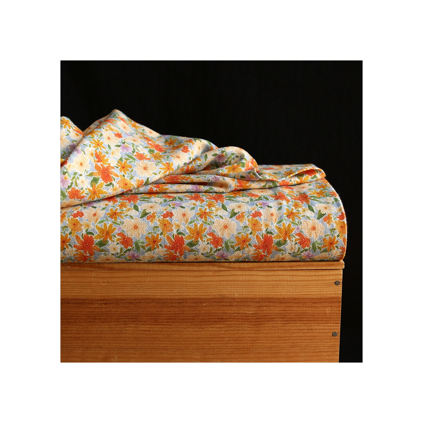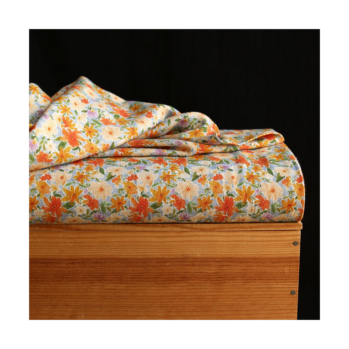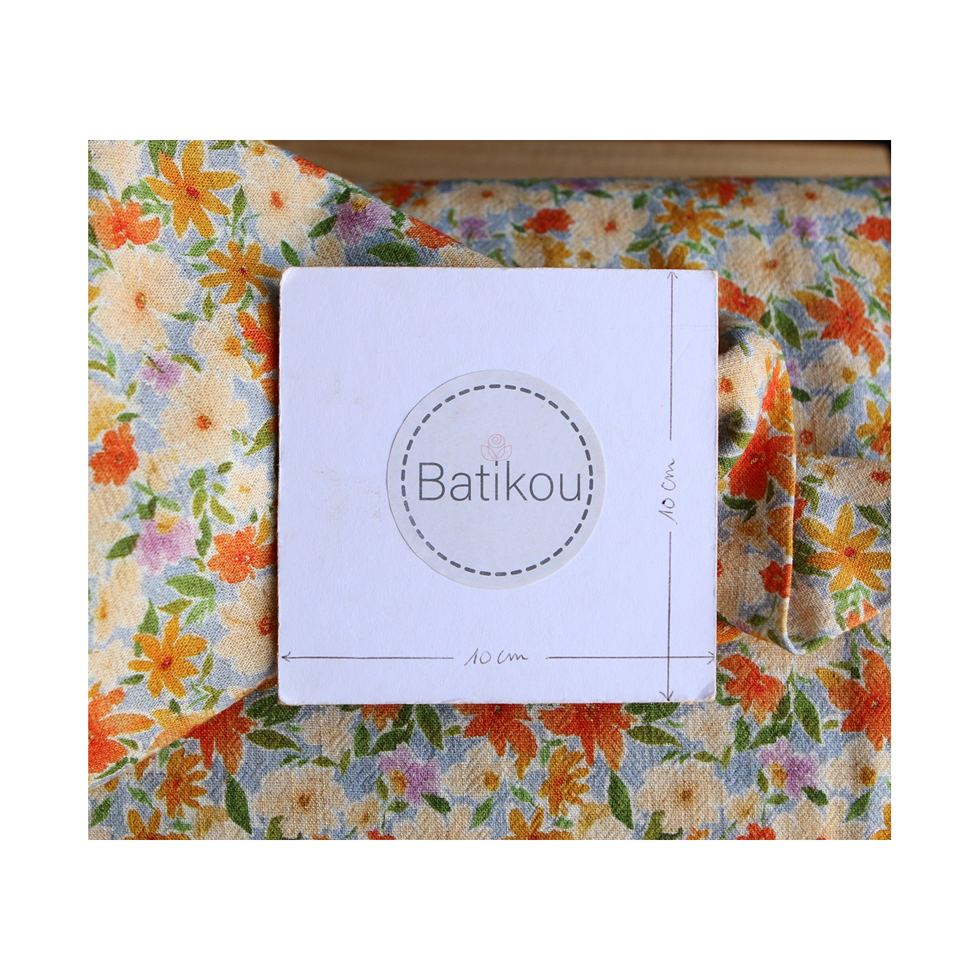 Coupon de 23 cm de Crêpe lin et viscose imprimé fleuri orangé
