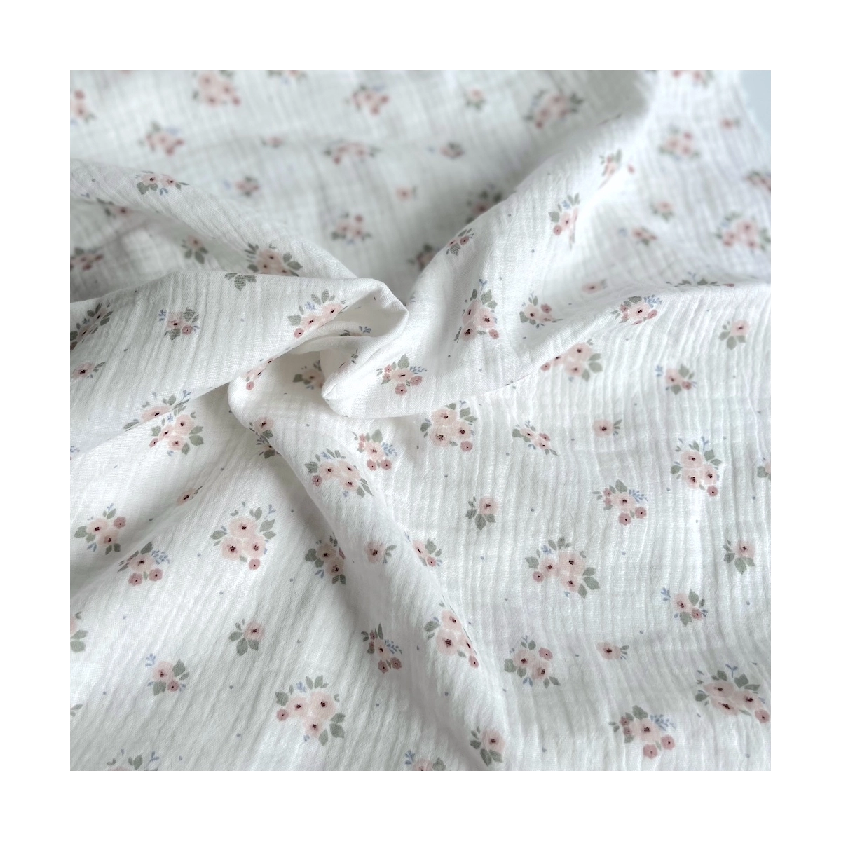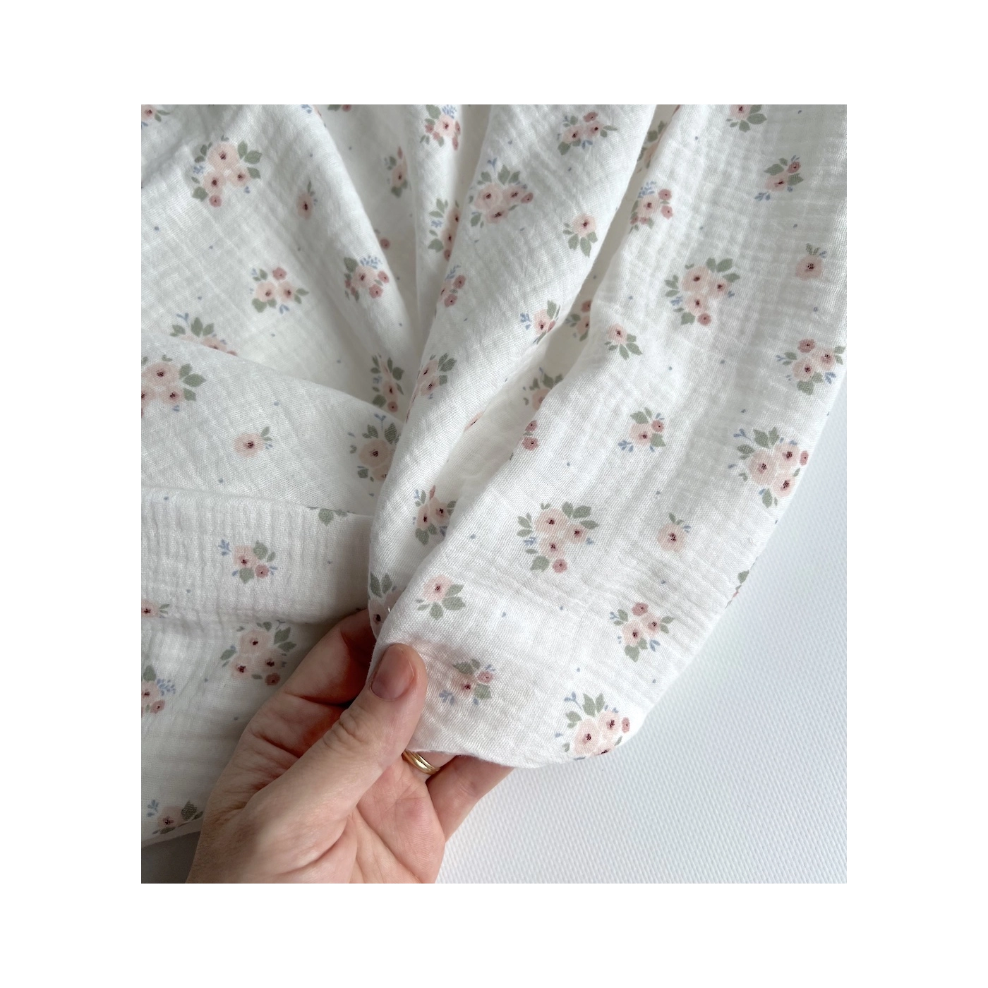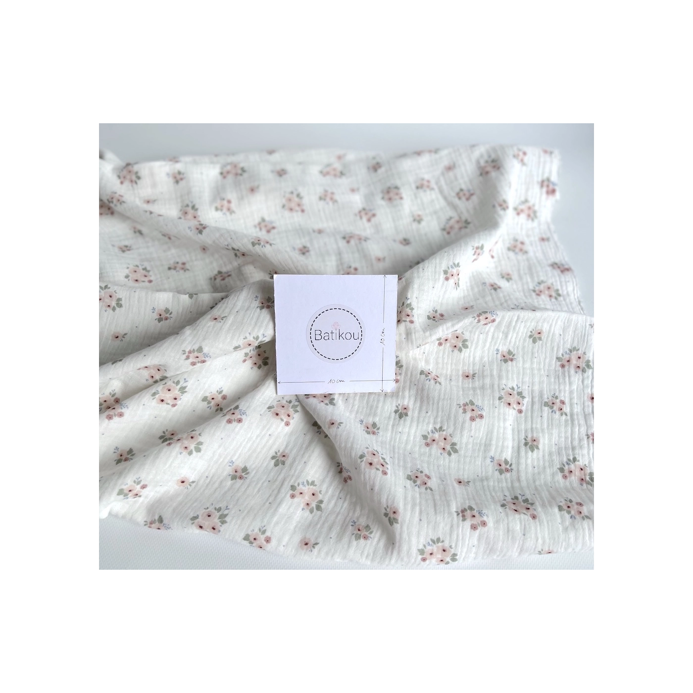 Coupon de 100 cm de ROZEN - Double gaze de coton BIO blanc motif exclusif
