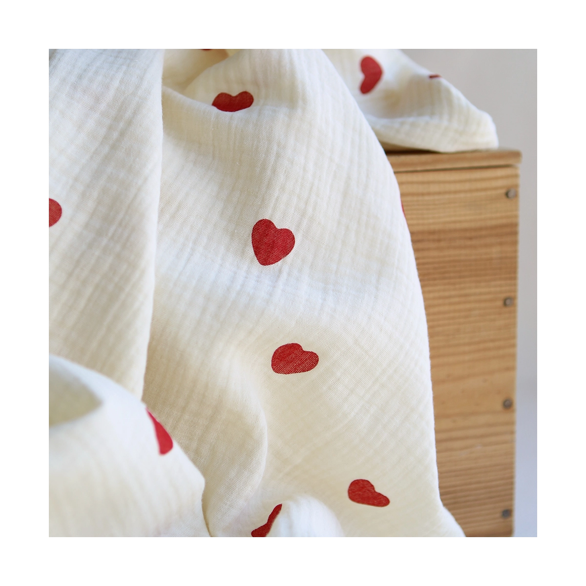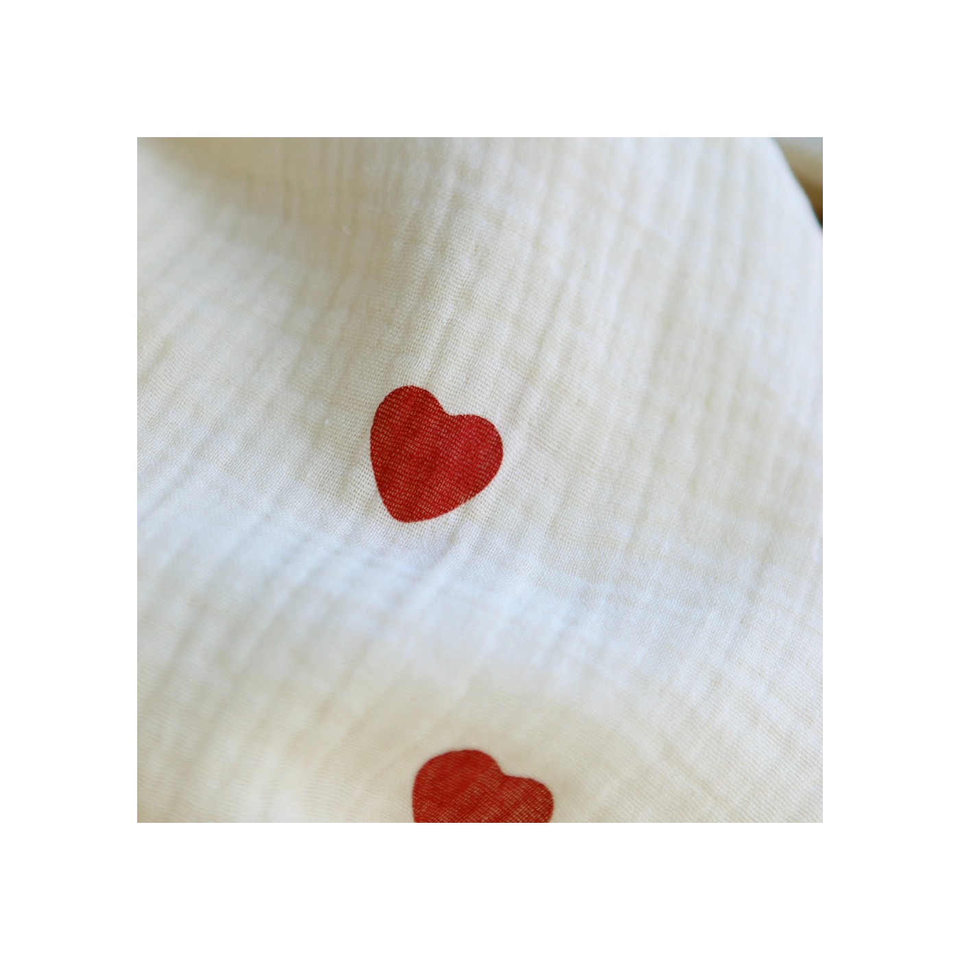 Coupon de 45 cm de Manou - Double gaze de coton BIO exclusif vanille à motif coeurs