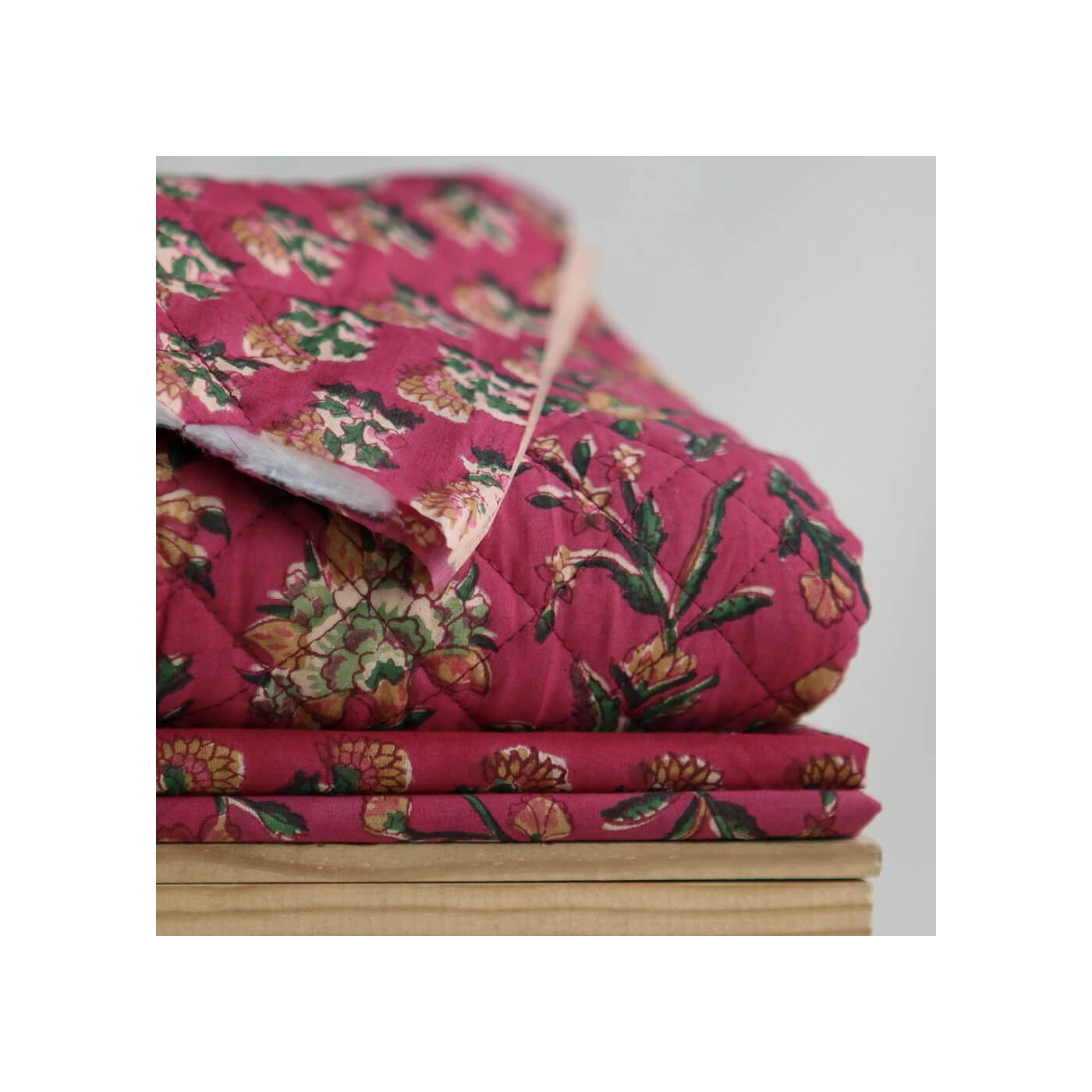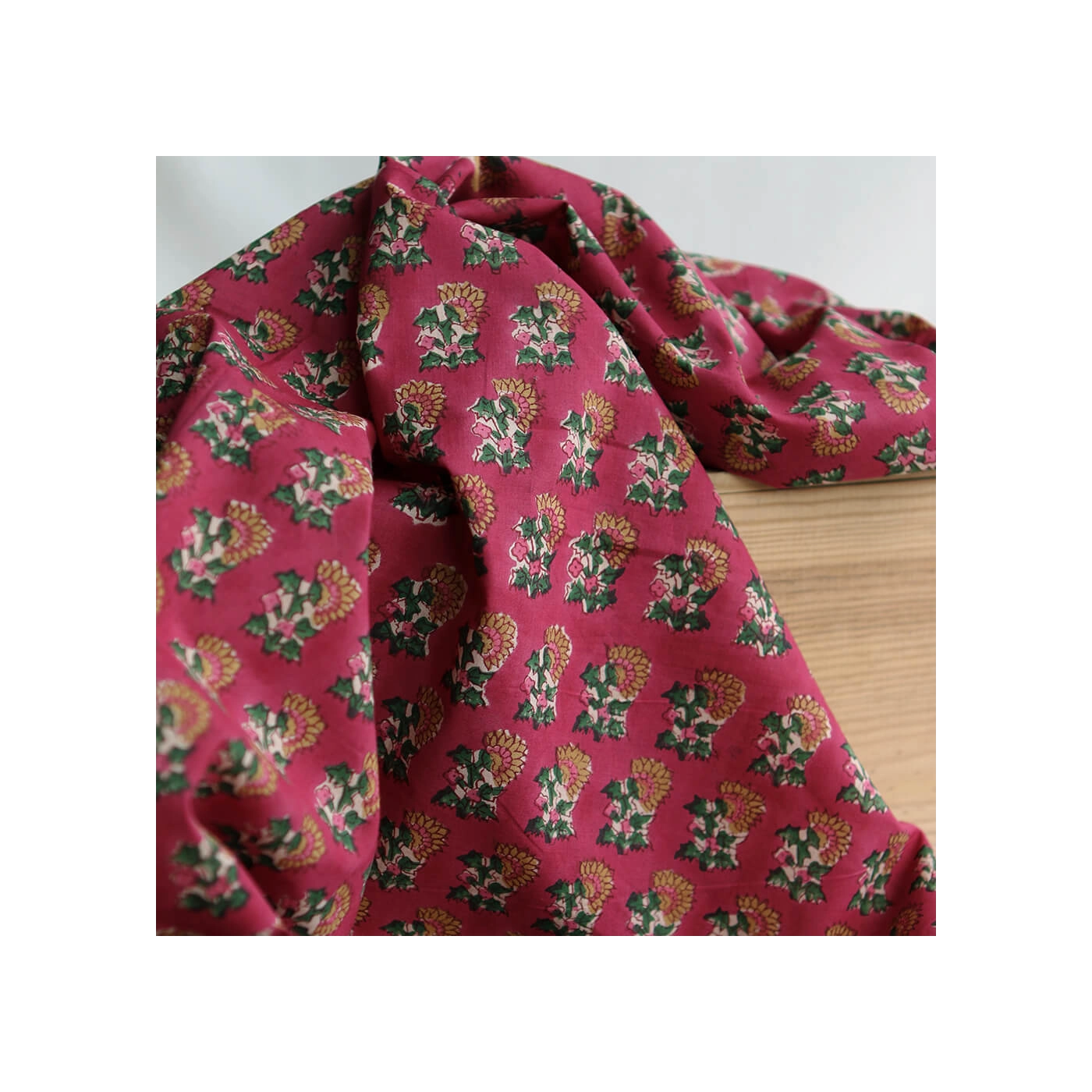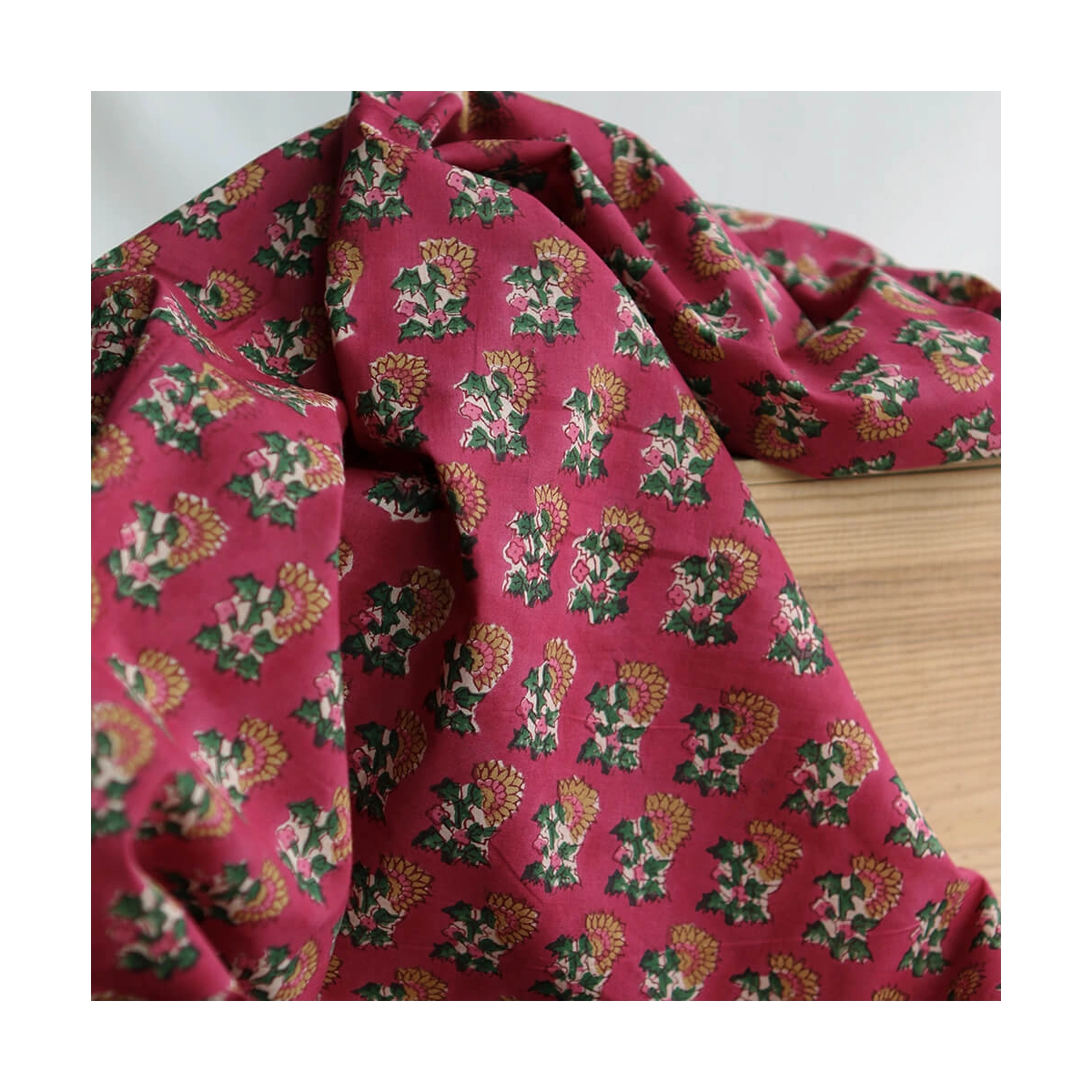 Le block print est un artisanat ancestral indien : le dessin est gravé sur un tampon en bois, chaque couleur nécessitant une étape d'impression distincte.
