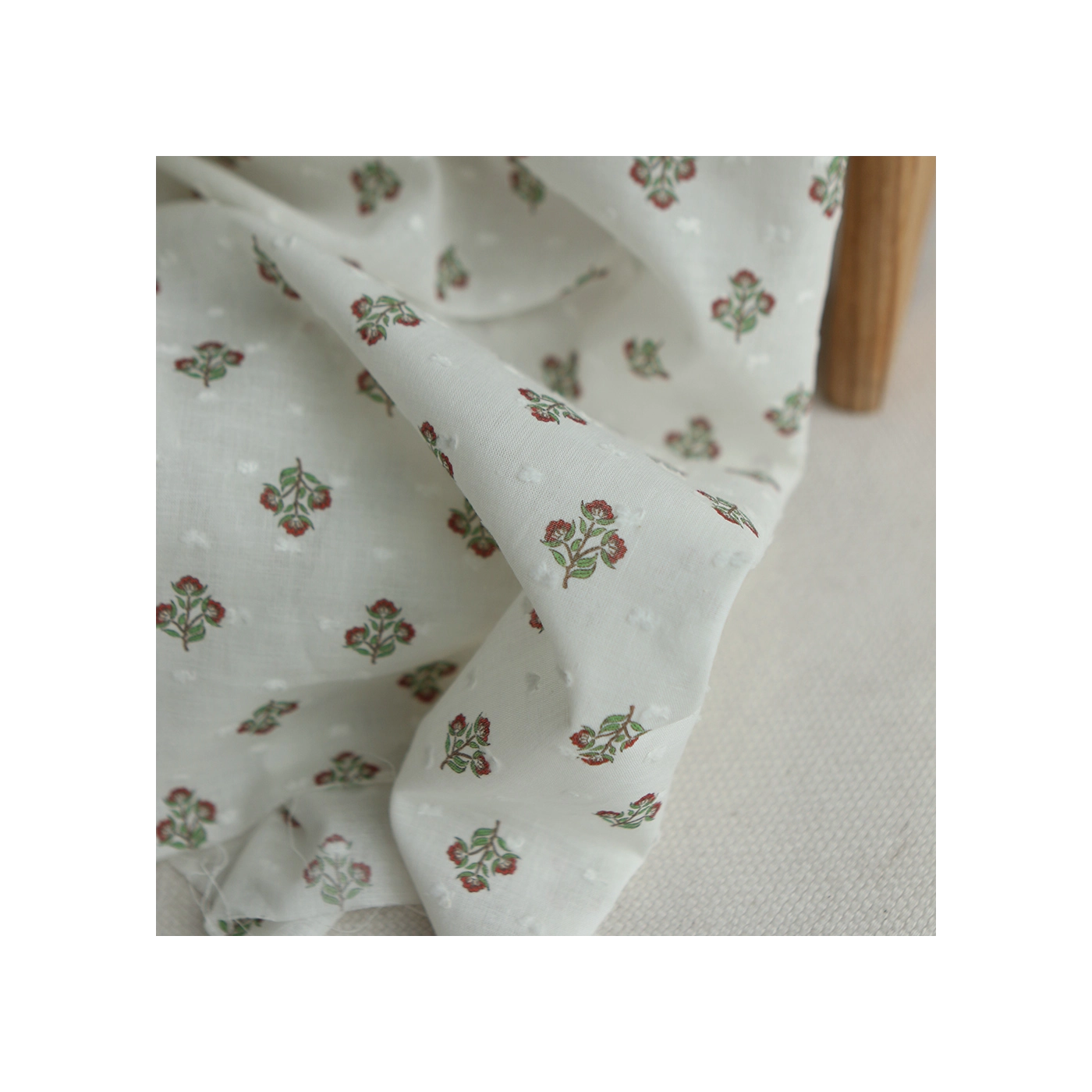 Coupon de 78 cml de Hazel - Plumetis de coton imprimé fleuri vert et rouge