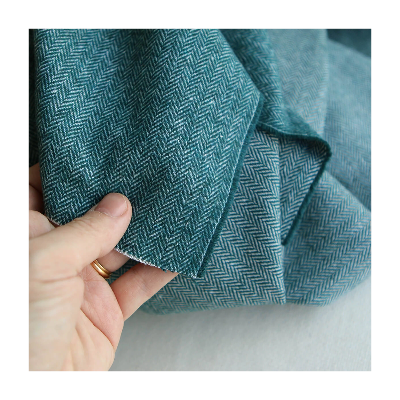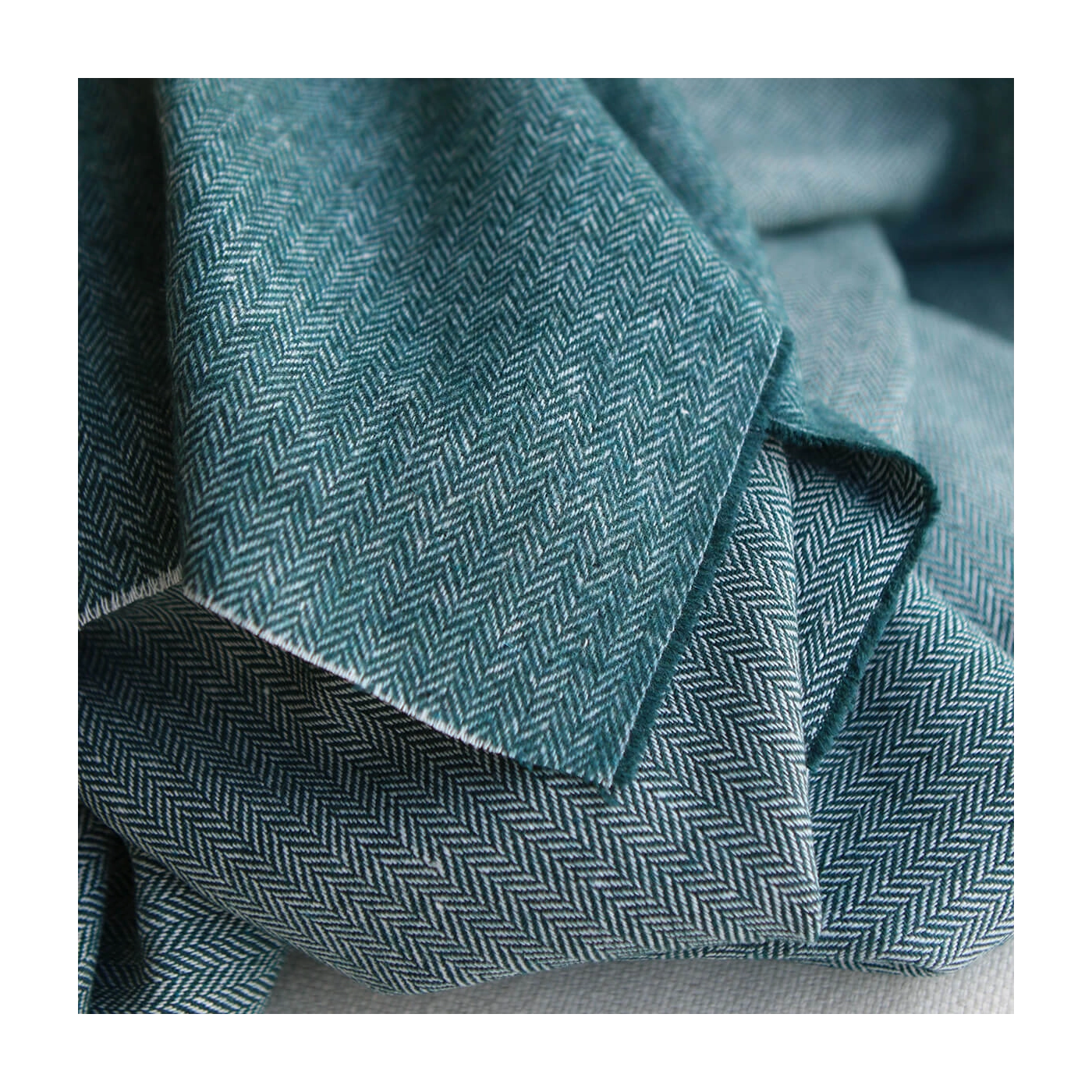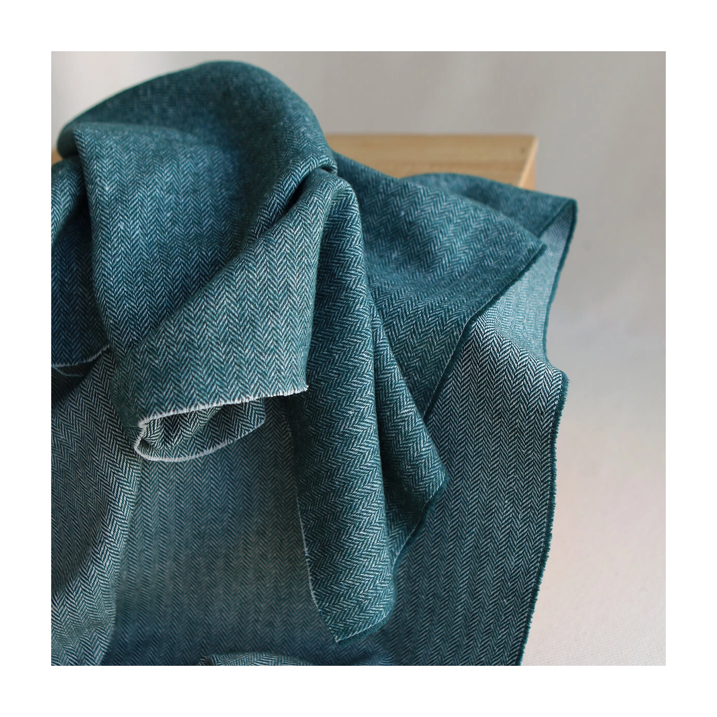 Coupon de 33 cm de Tissu chevrons texturé coton / laine coloris Pétrole