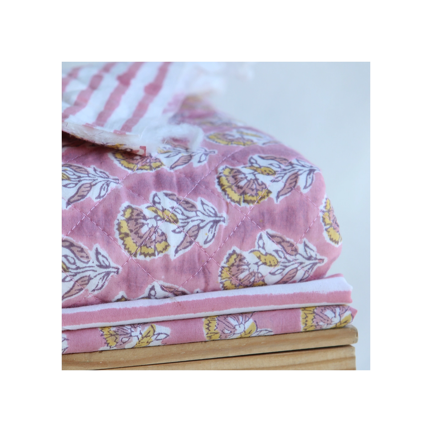 Le block print est un artisanat ancestral indien : le dessin est gravé sur un tampon en bois, chaque couleur nécessitant une étape d'impression distincte.