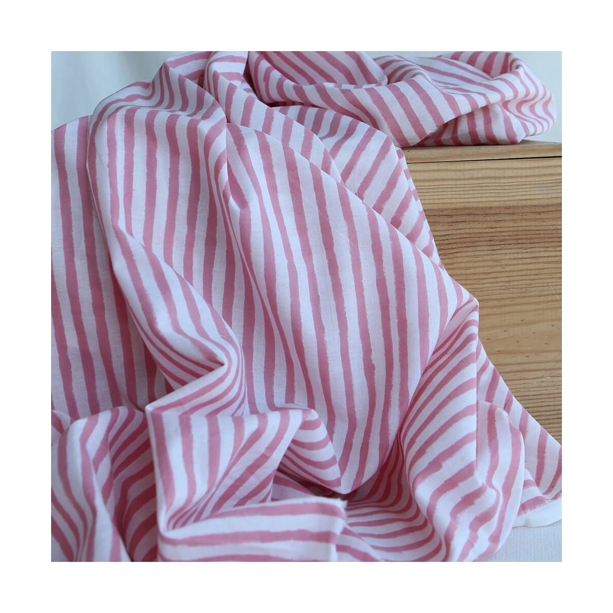 • Gamme Ishara: rayures irrégulières environ 5mm vieux rose et blanc