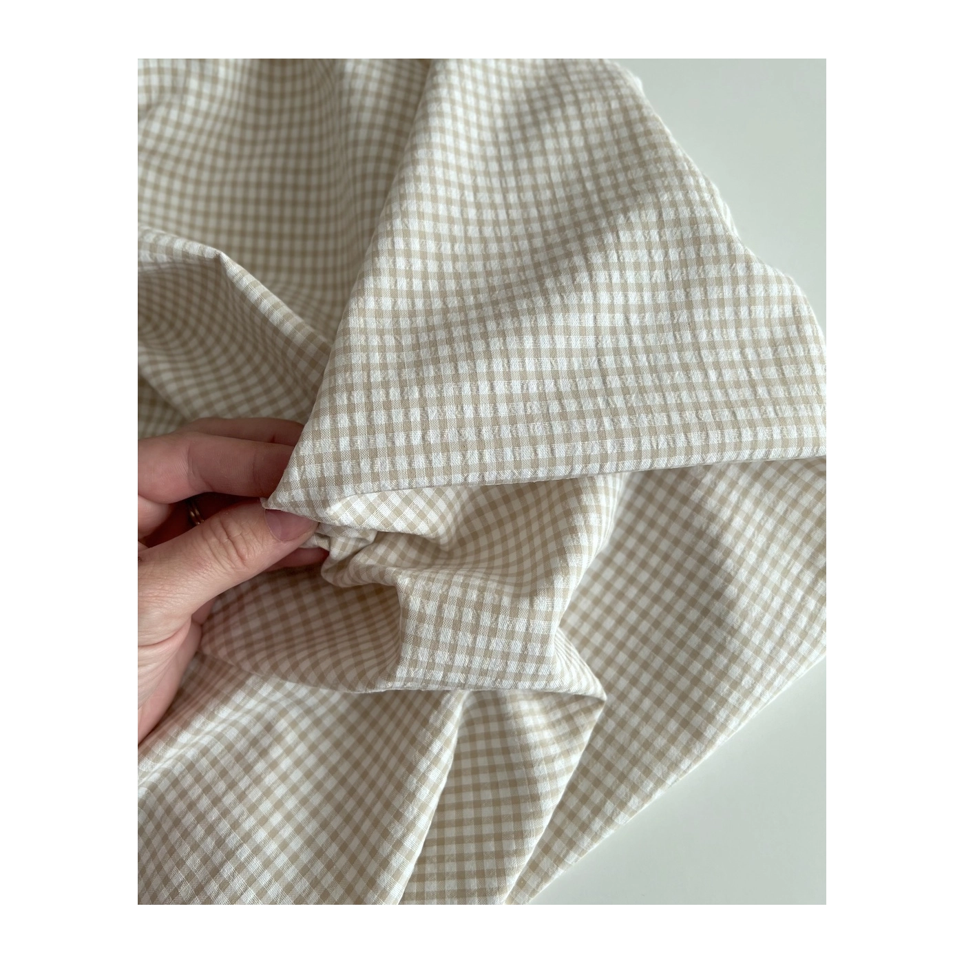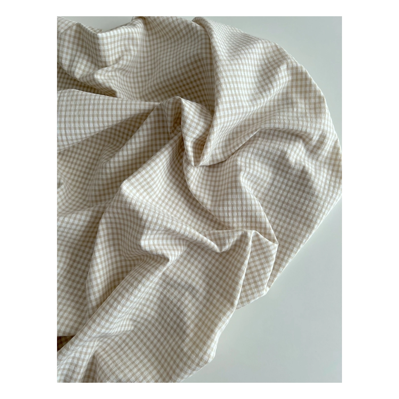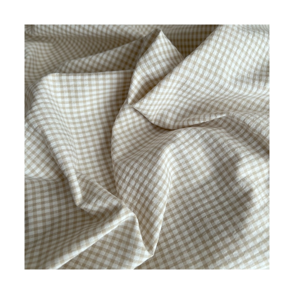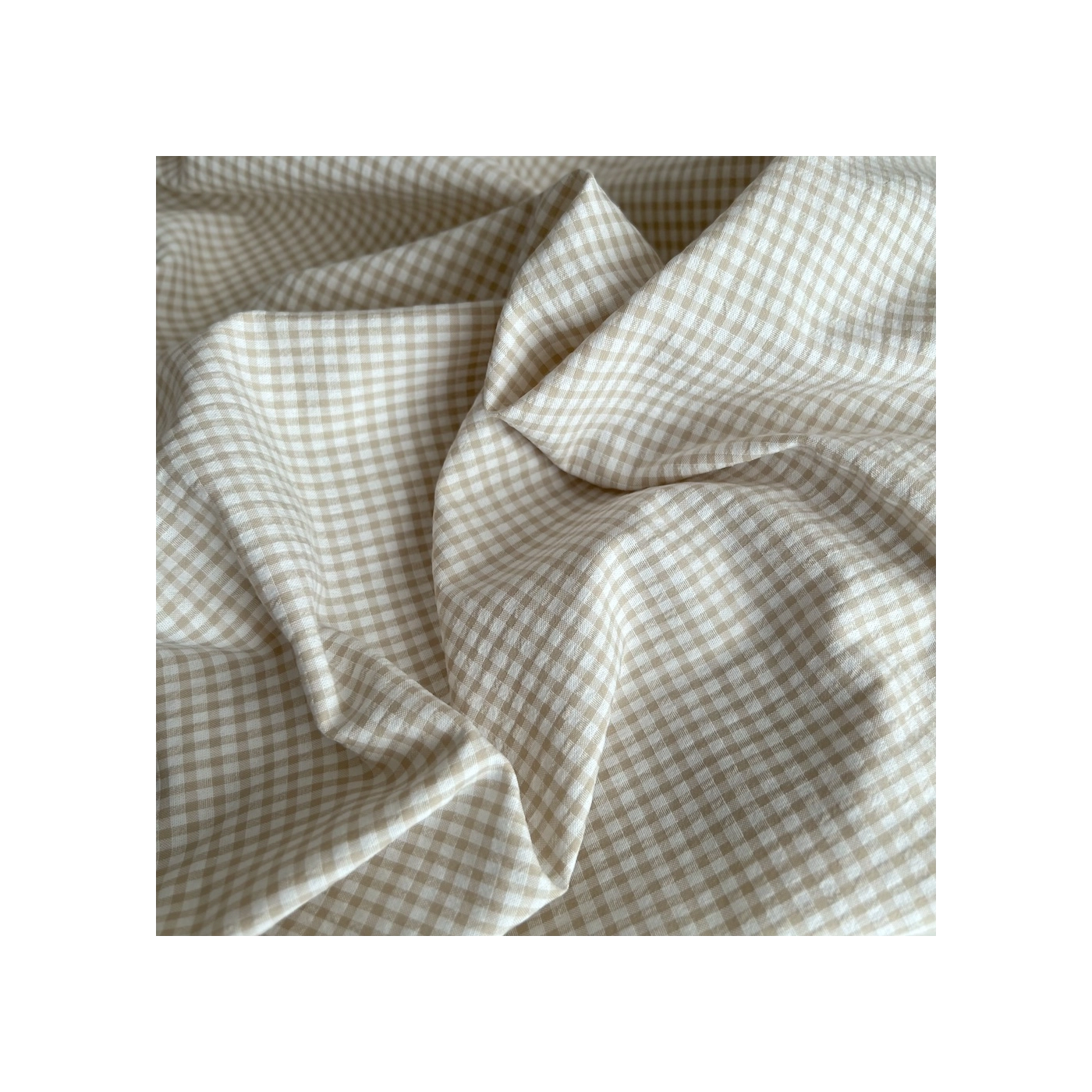 Coupon de 46 cm de Seersucker / Coton gaufré vichy mini 3mm biscuit / blanc