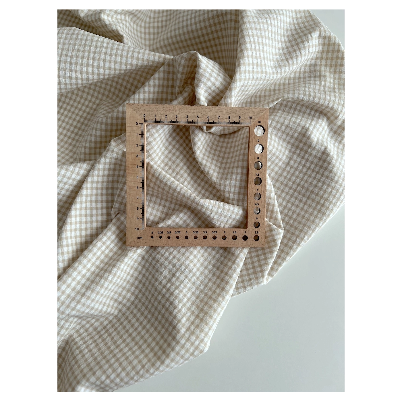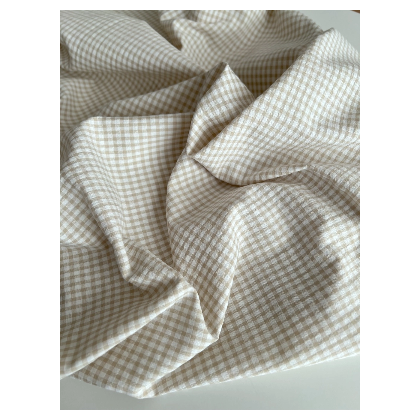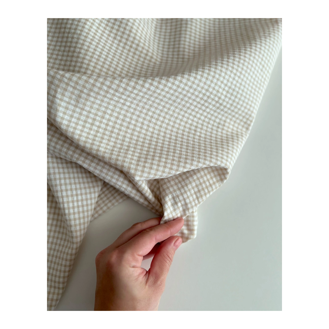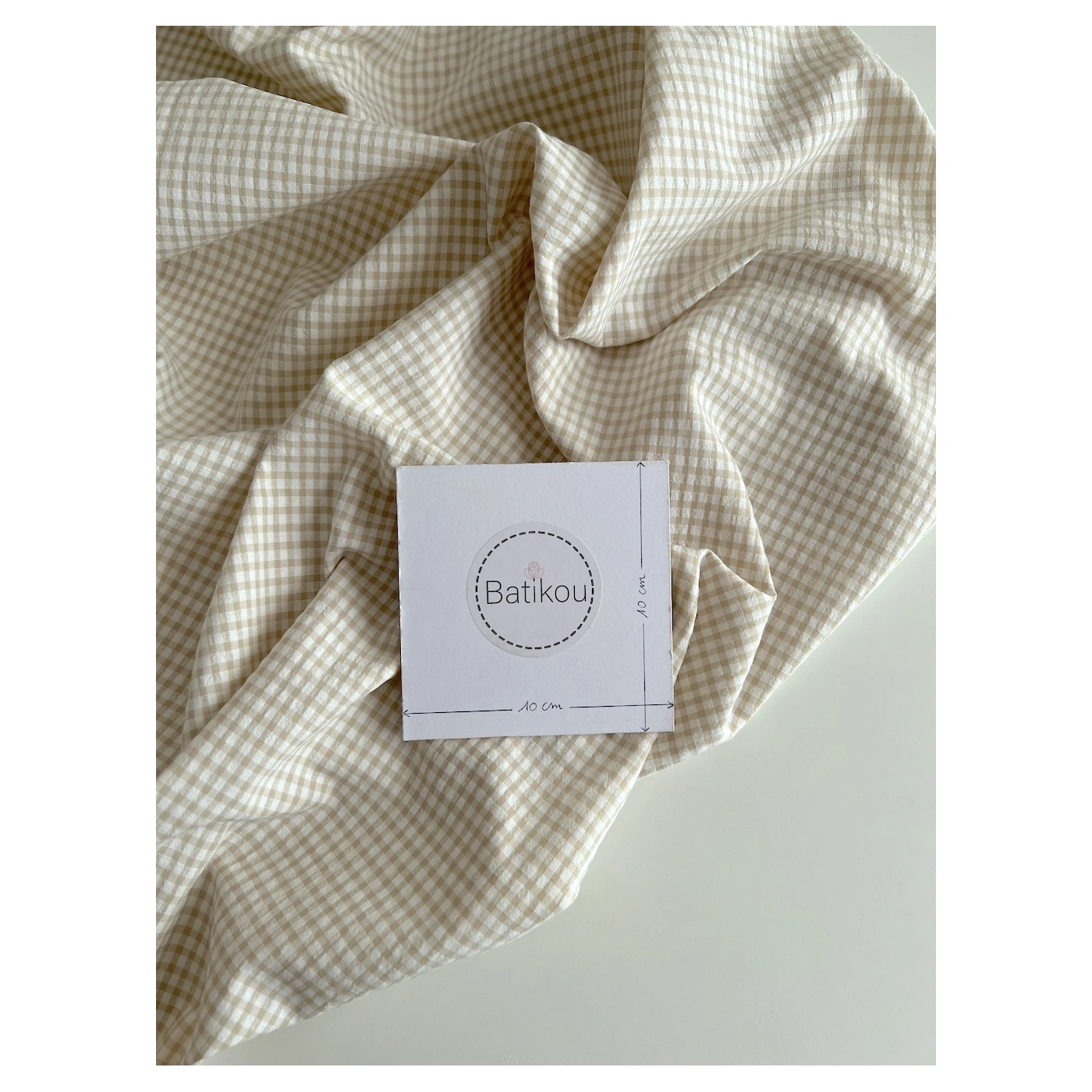 Coupon de 46 cm de Seersucker / Coton gaufré vichy mini 3mm biscuit / blanc