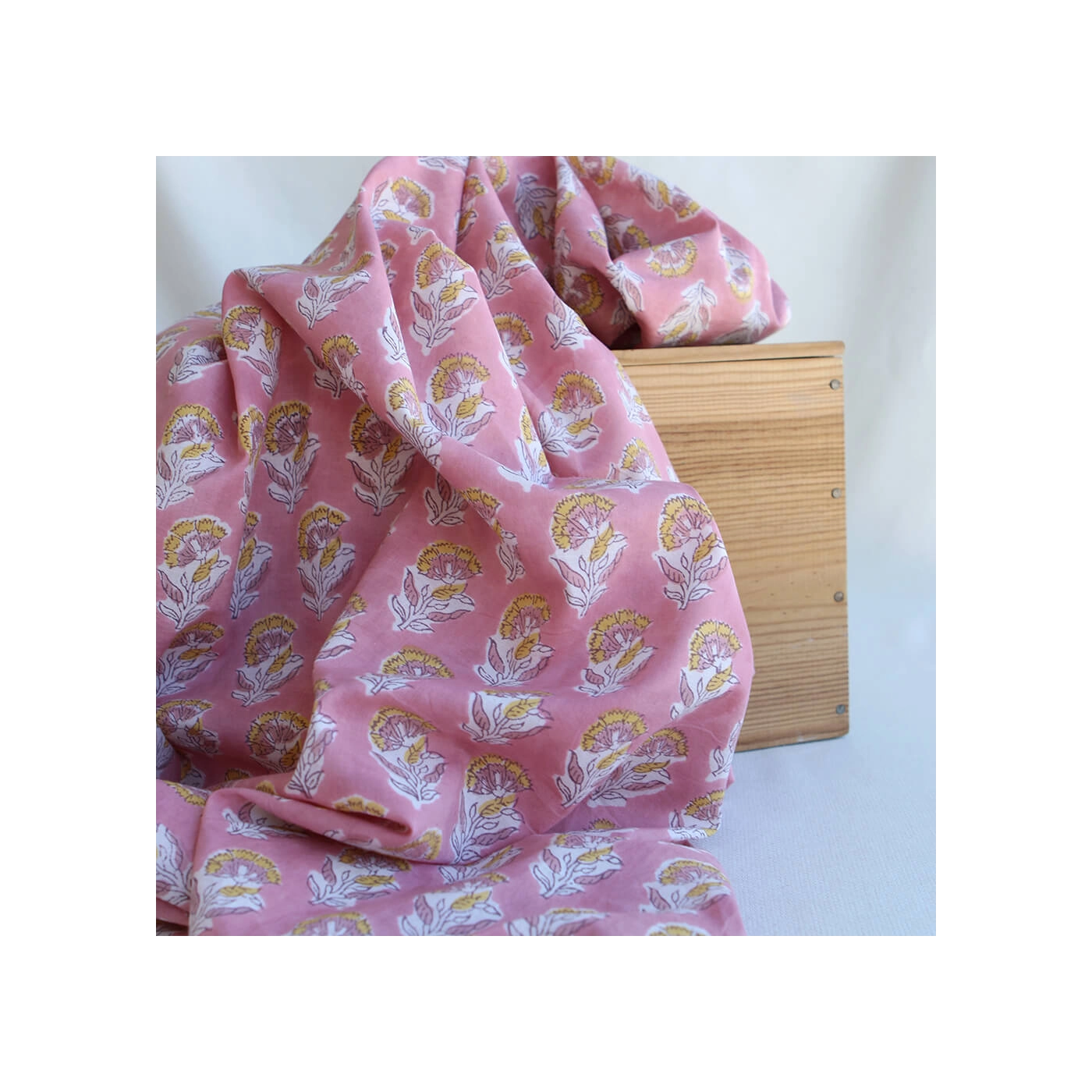 Le block print est un artisanat ancestral indien : le dessin est gravé sur un tampon en bois, chaque couleur nécessitant une étape d'impression distincte.