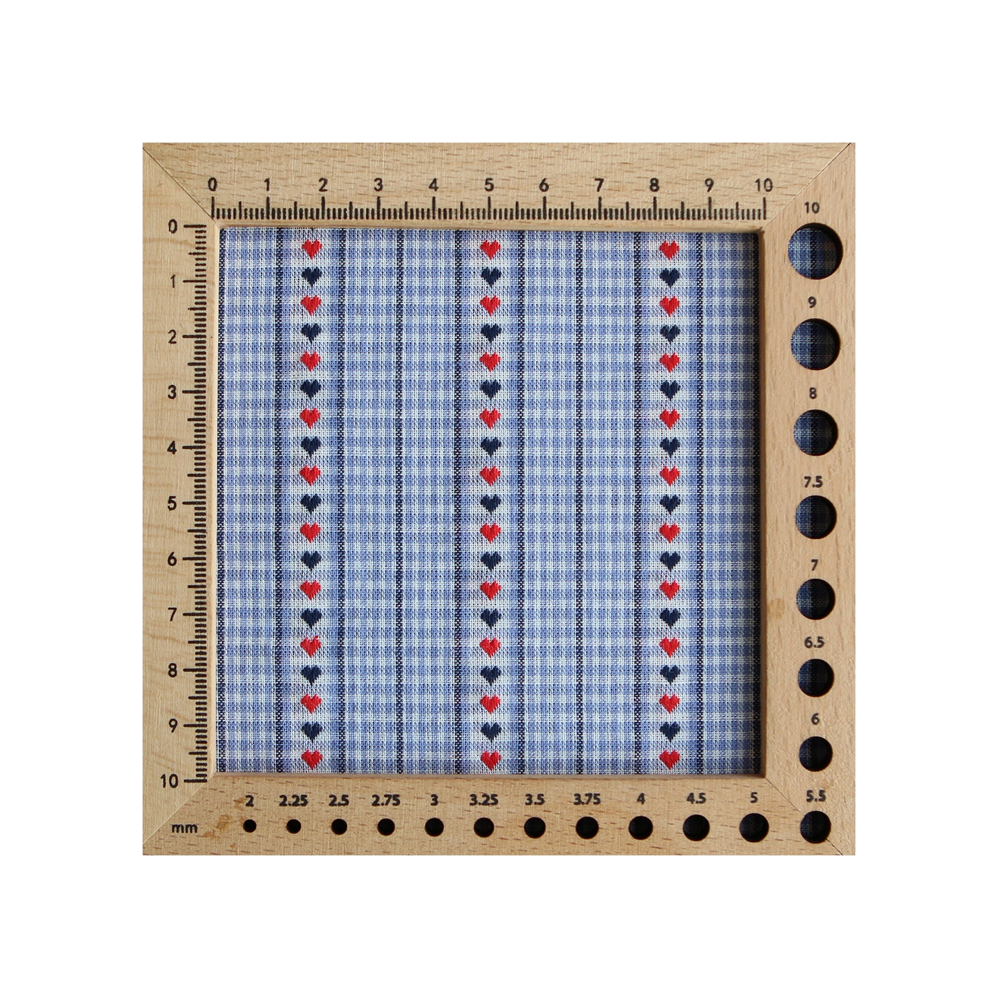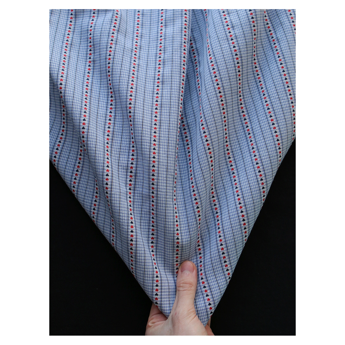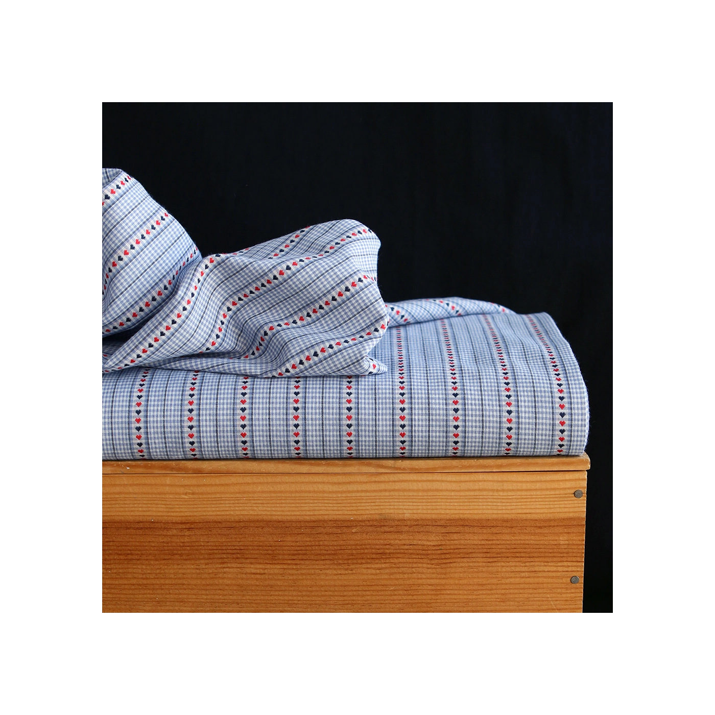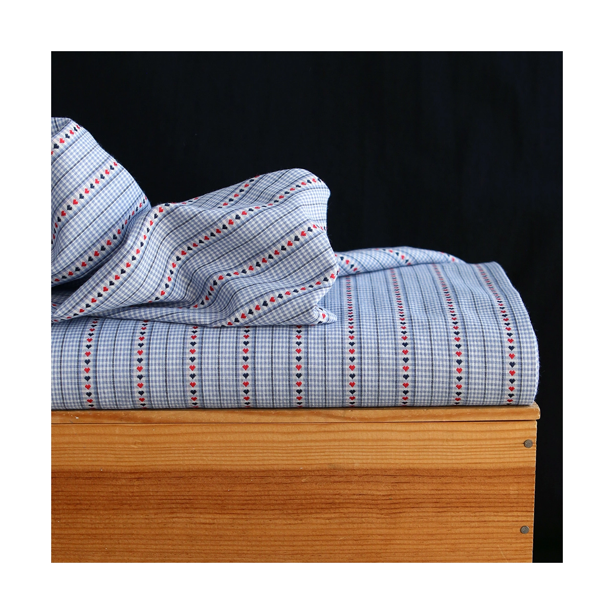 Coloris: mini vichy bleu avec des rayures de petits coeurs tissés