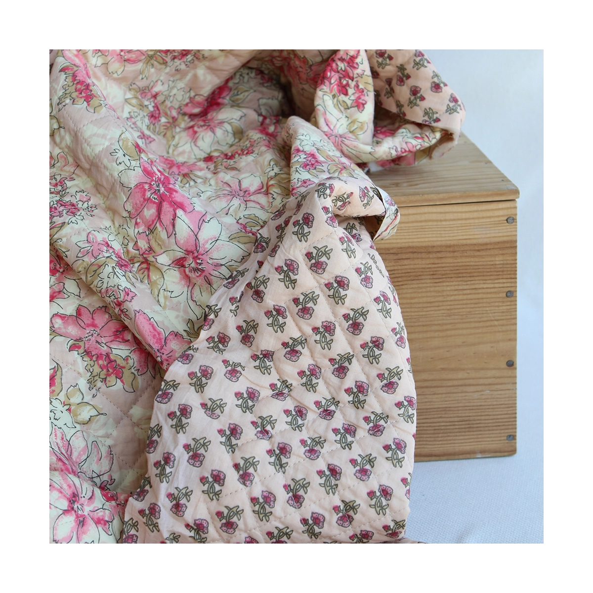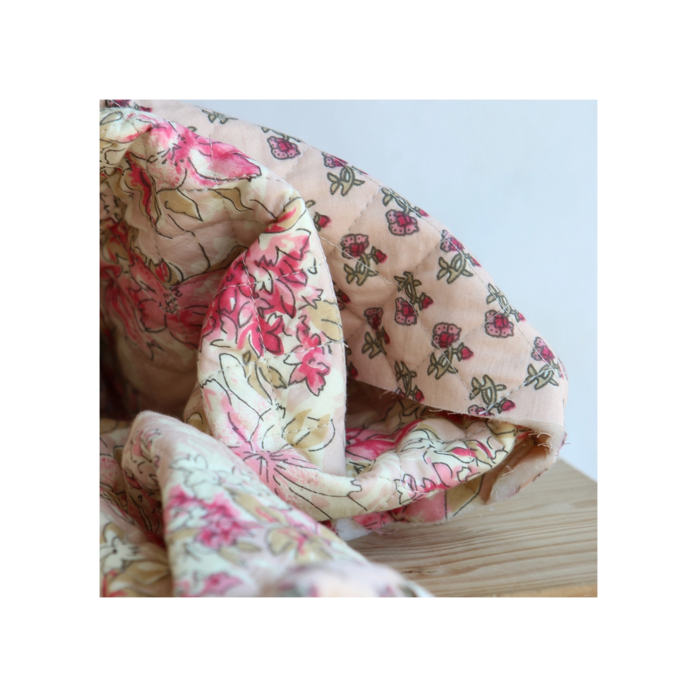Nous avons décliné cette collection avec nos partenaires en Inde, afin de vous proposer pour le même motif le tissu en coton, et la version double face matelassée.