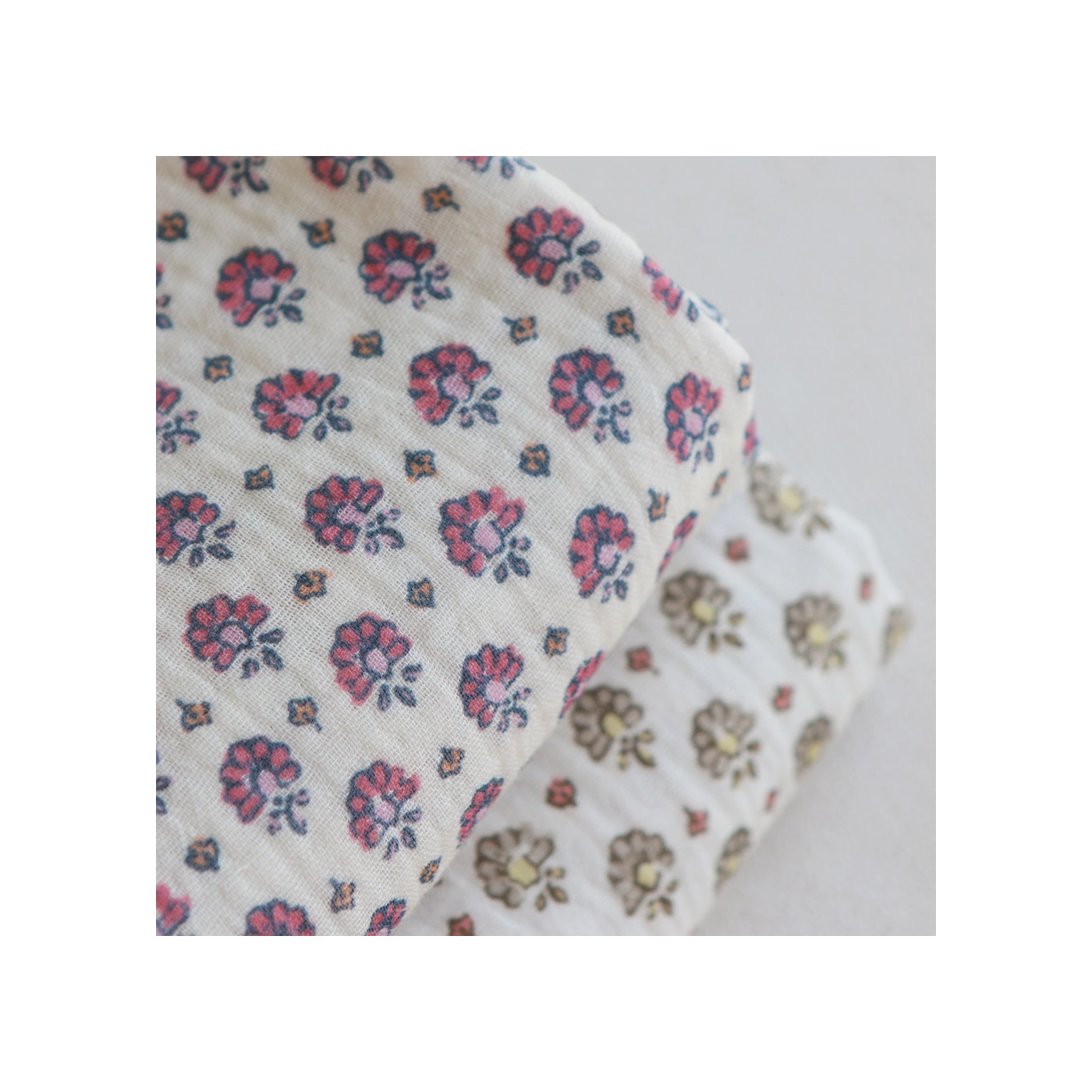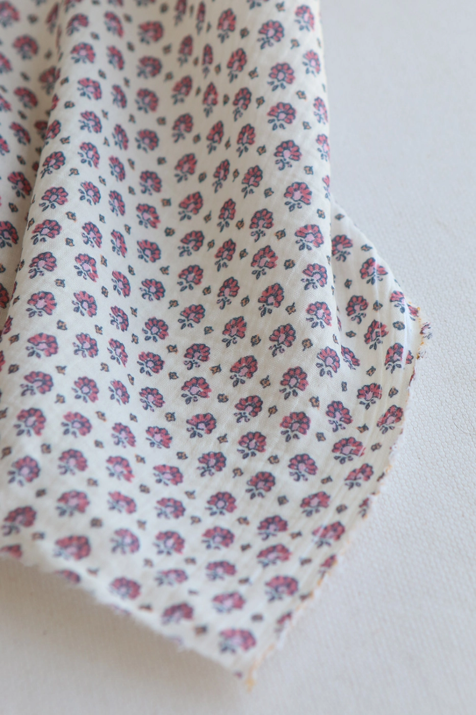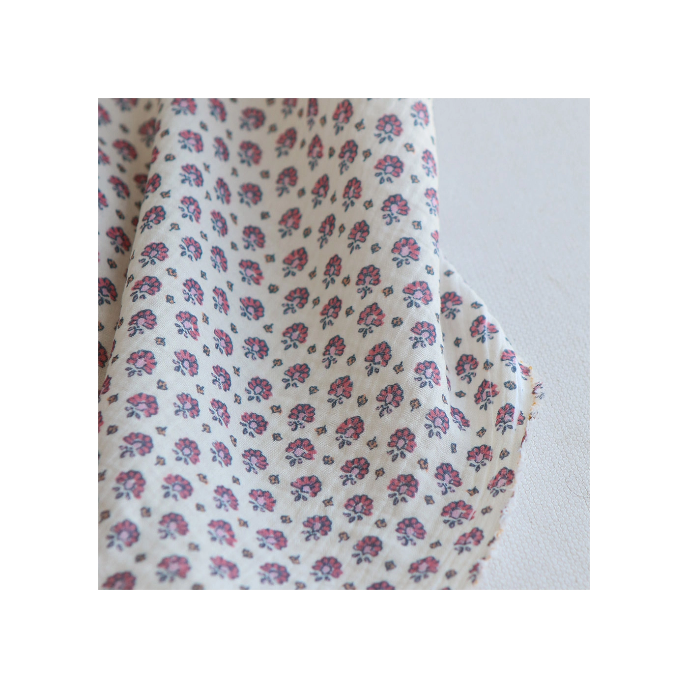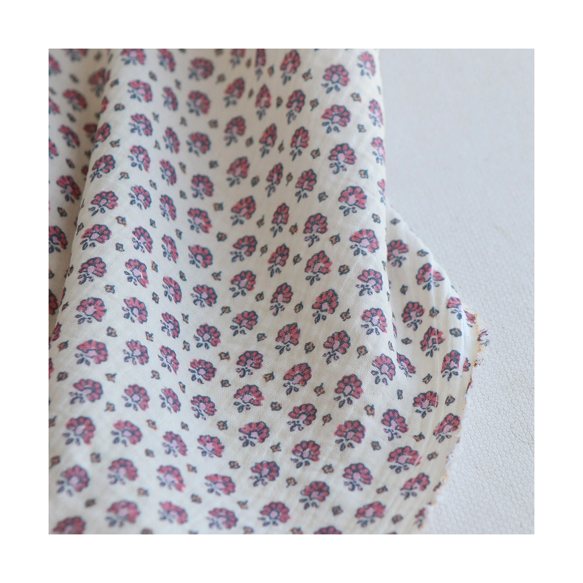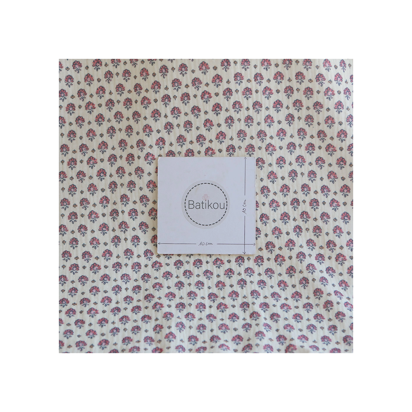 Coupon de 35 cm de Leela - Double gaze de coton motif fleuri fond écru