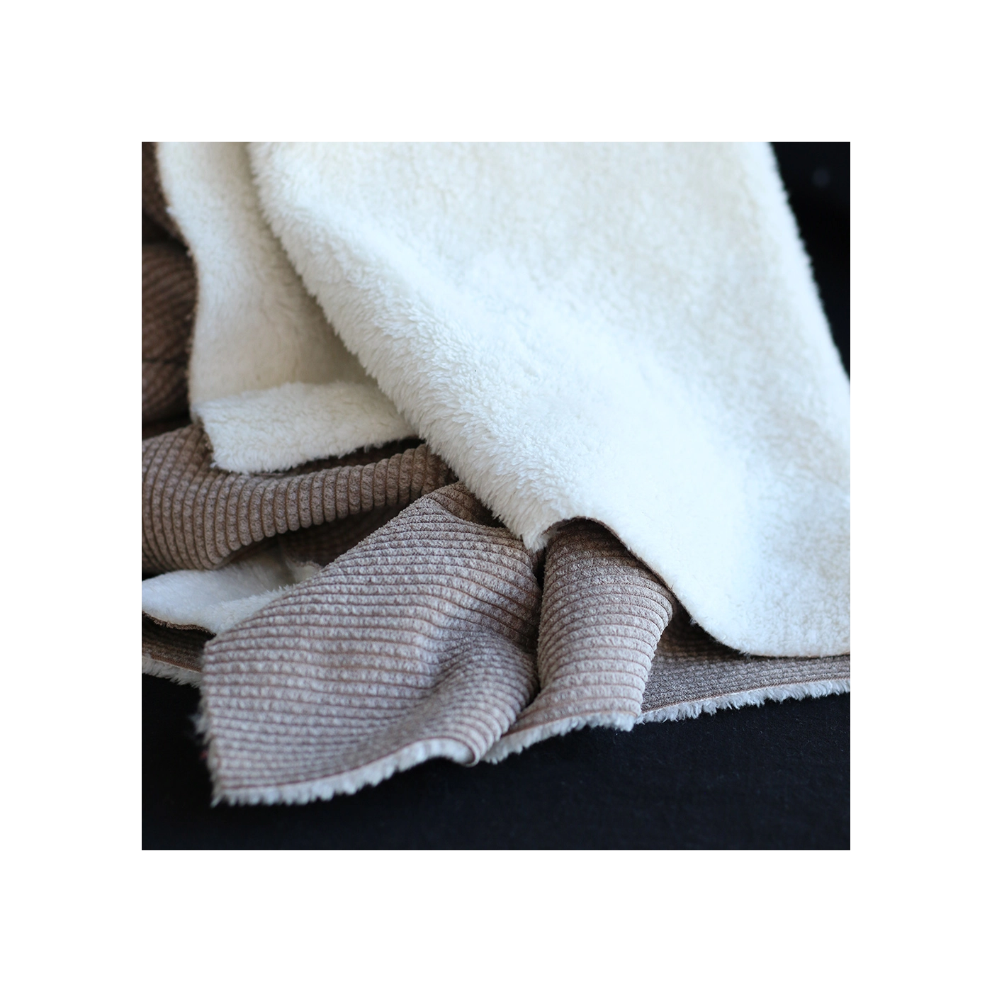 Une belle matière douillette ! Pour ce velours à côtes doublé moumoute