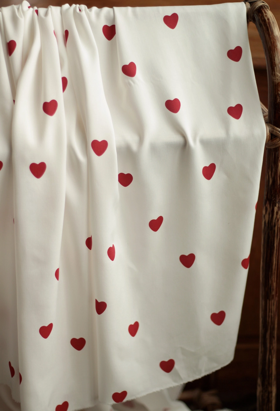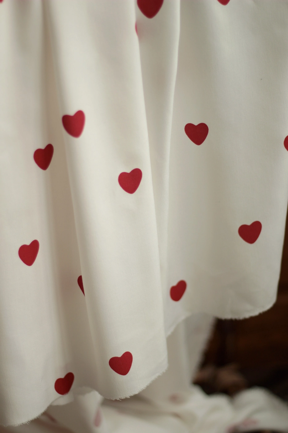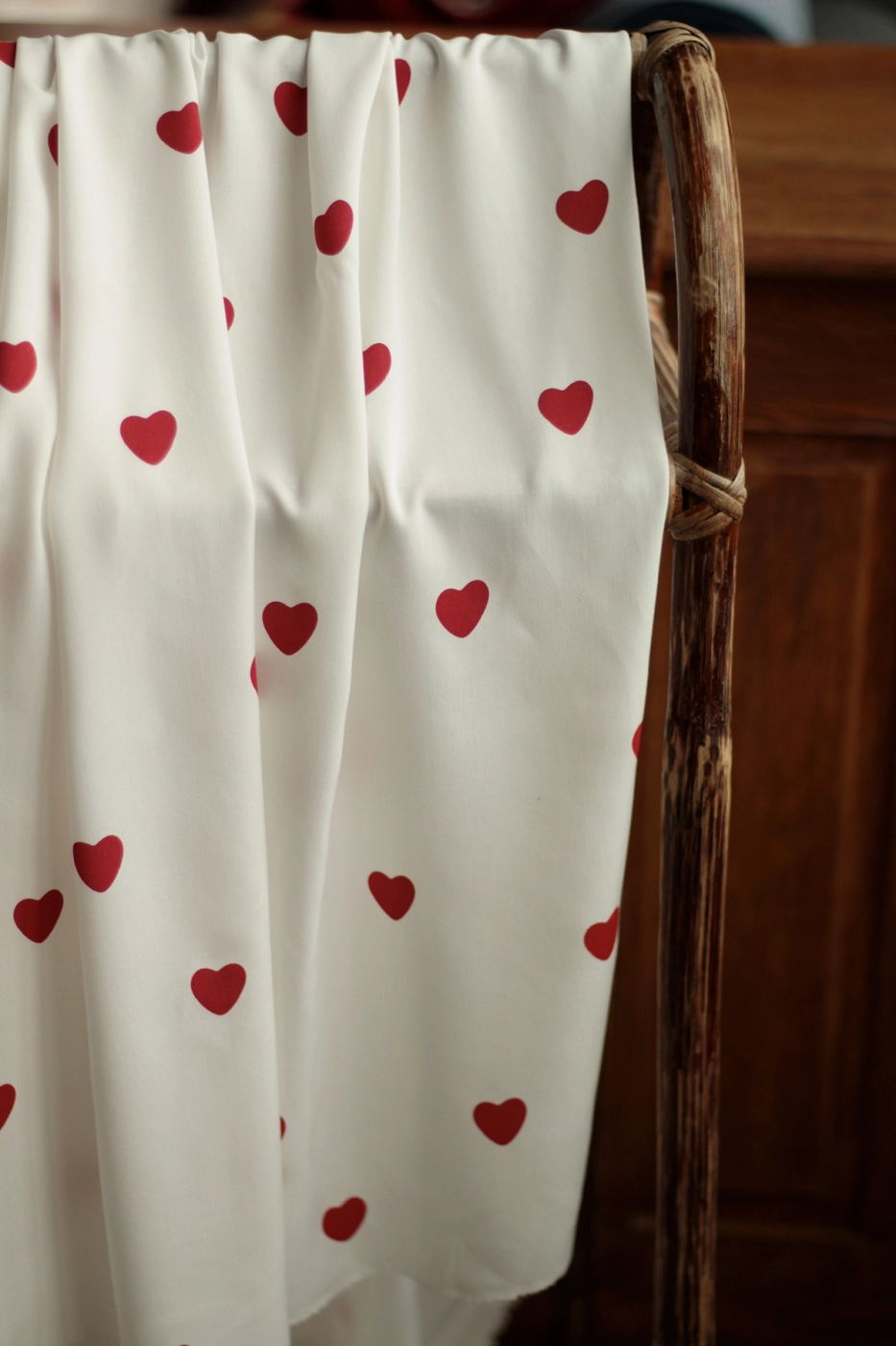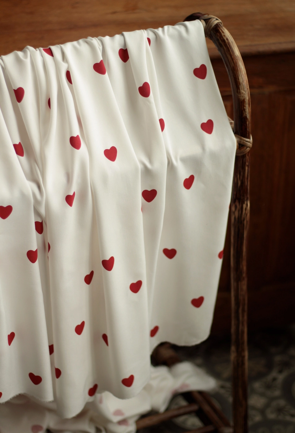 Coupon de 120 cm de Manou - Viscose blanc cassé imprimé exclusif coeurs rouges