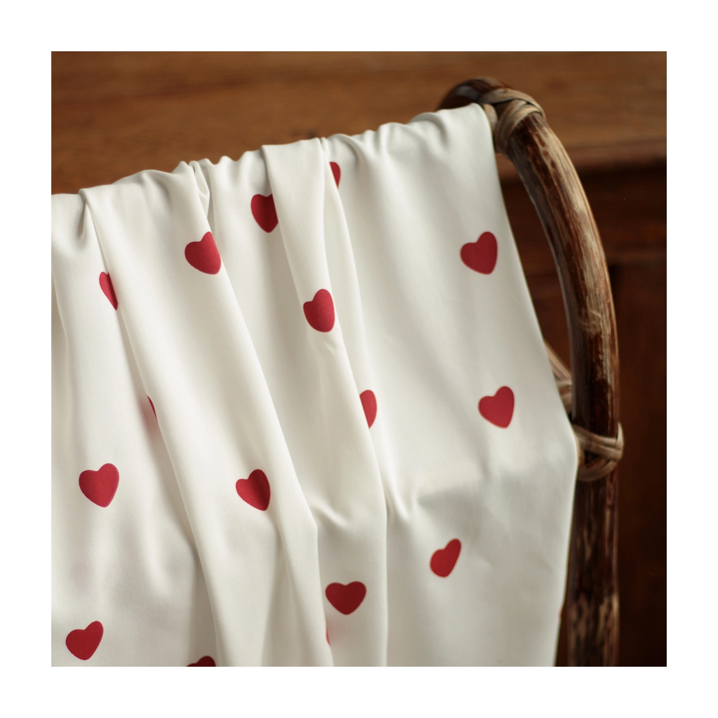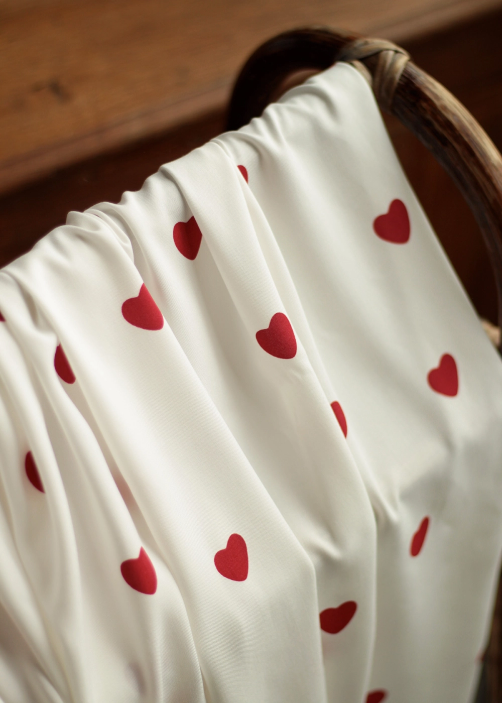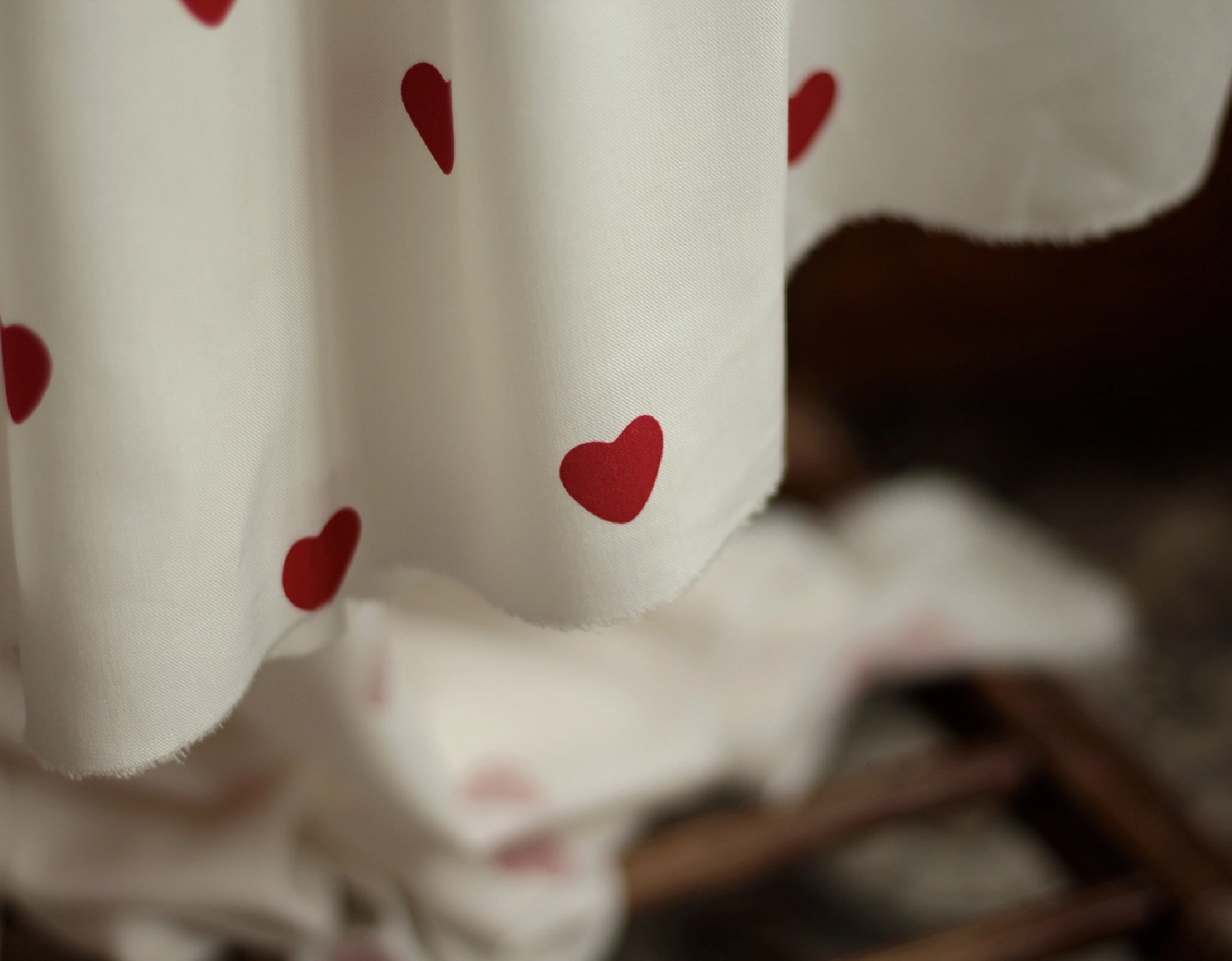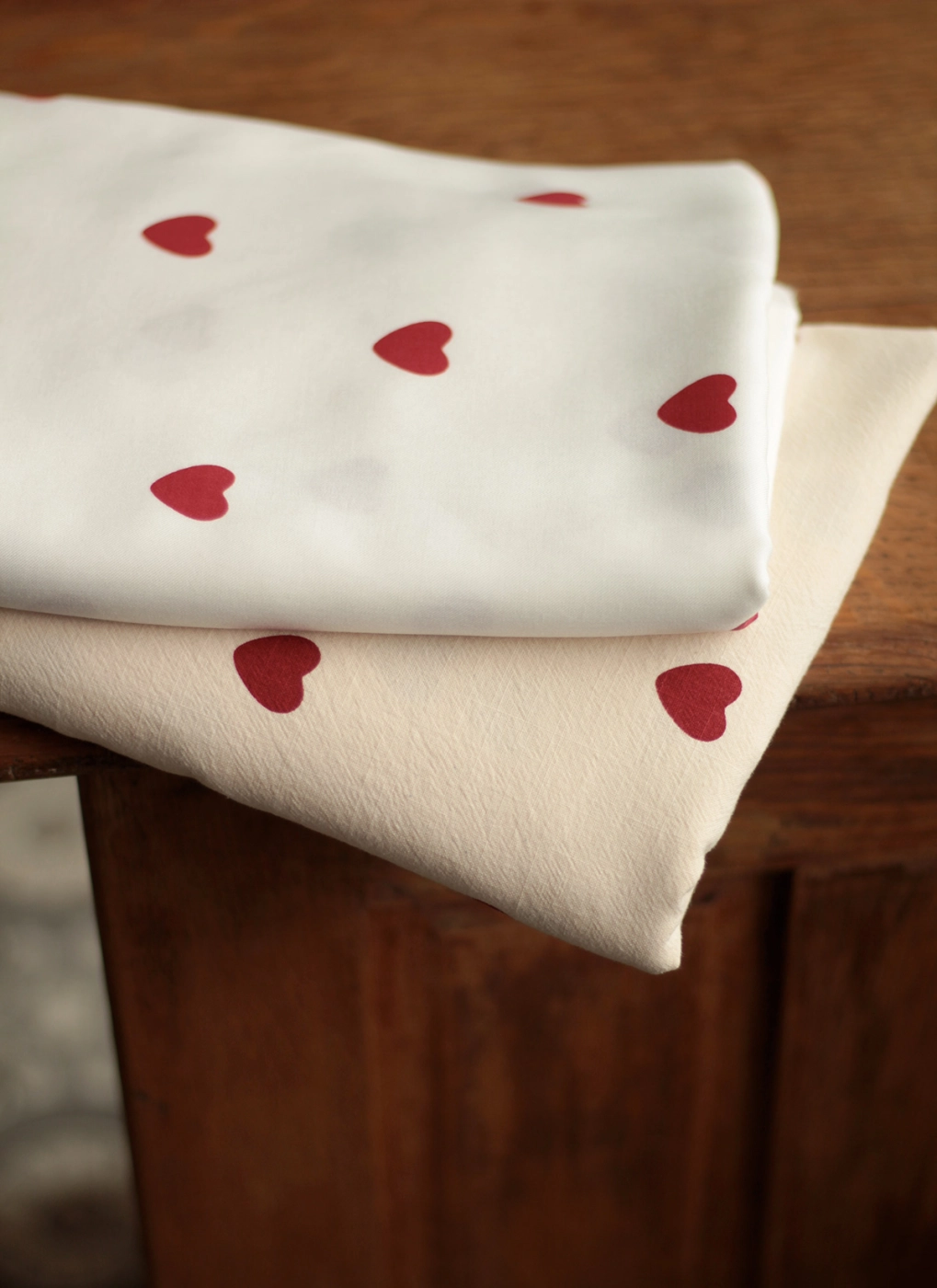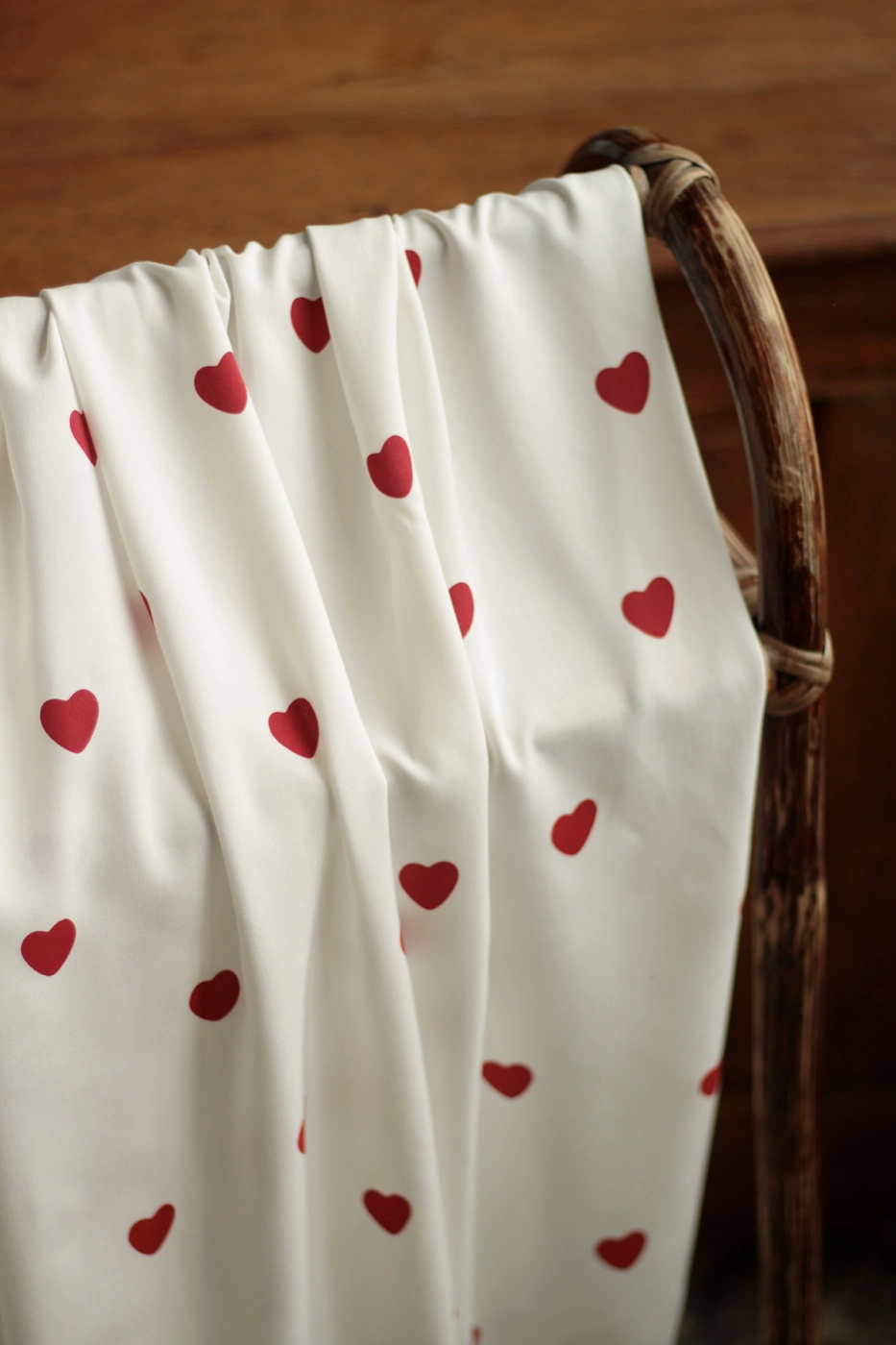 Coupon de 120 cm de Manou - Viscose blanc cassé imprimé exclusif coeurs rouges